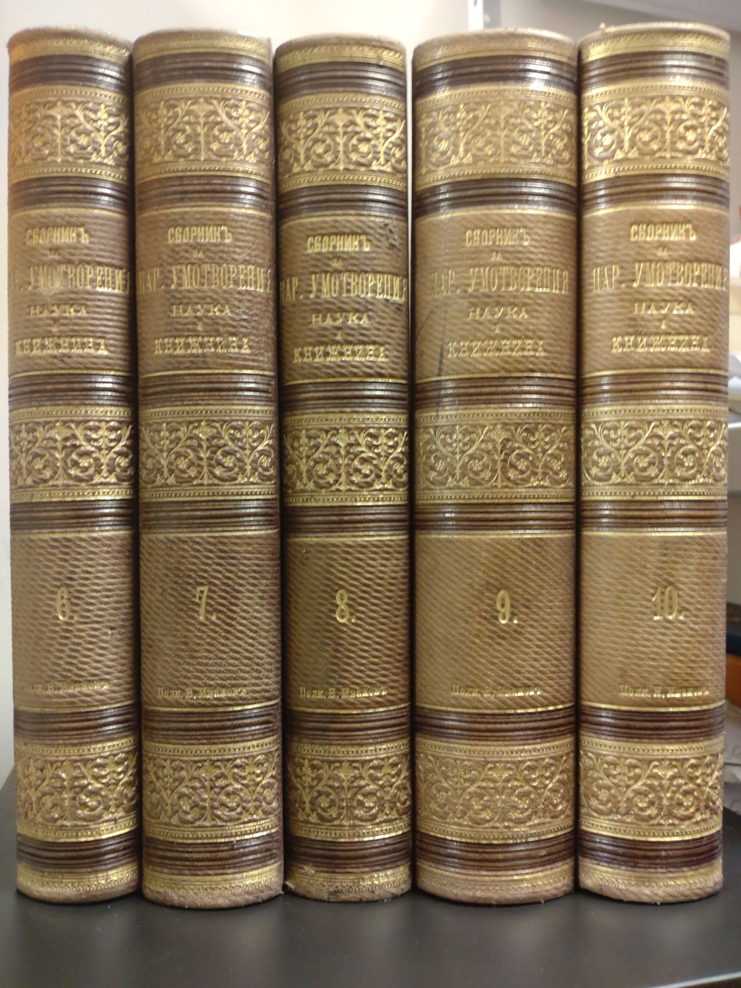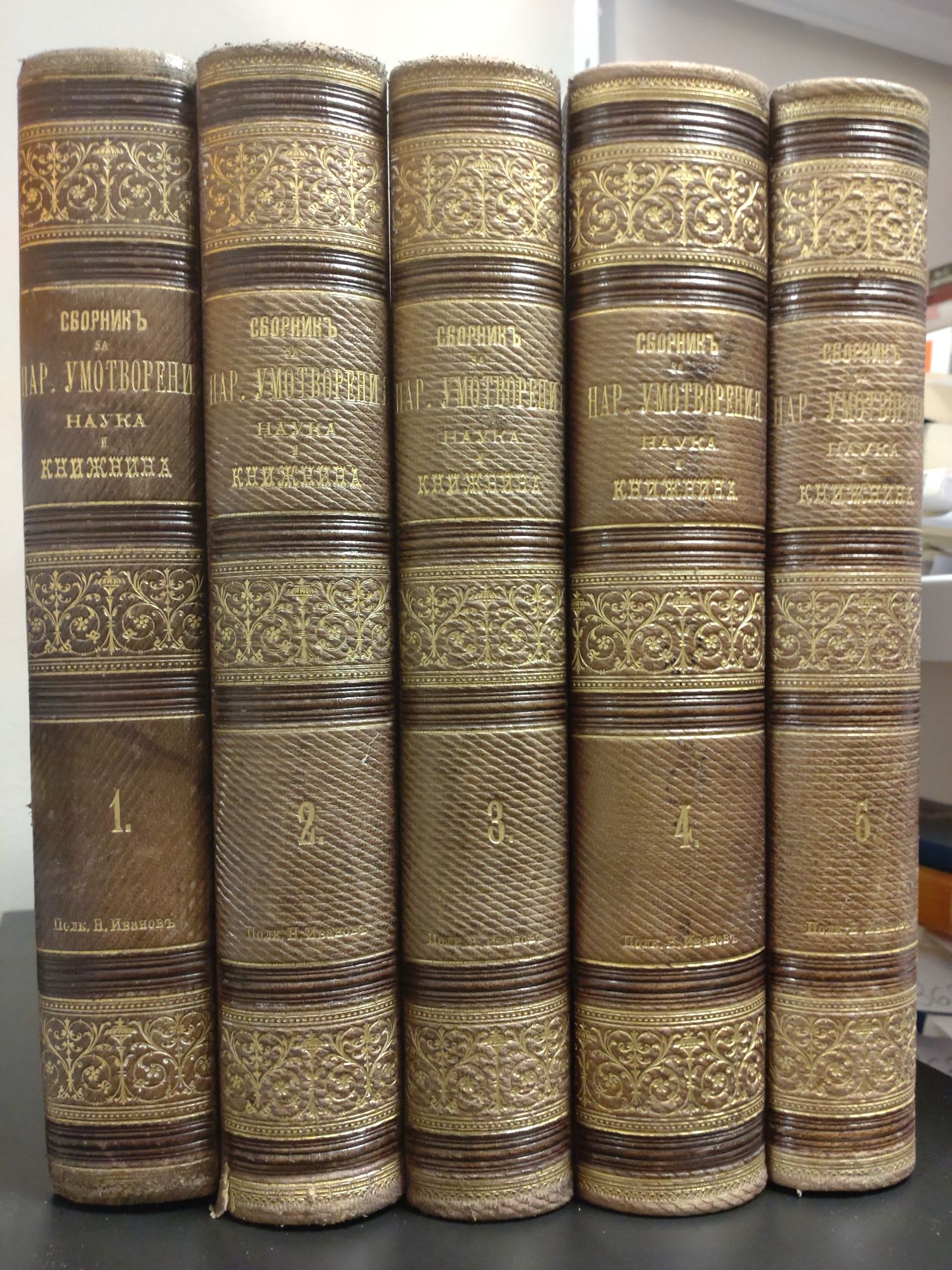 1 636,13 € / 3 199,99 лв.Много добро състояние на книжното тяло. Общо овехтяване, леко протрити подвързии, състоянието на том 1 е добро, липсват заглавните страници (заглавие и съдържанието), но не е засегнат основният текст, няколко листа са частично скъсани или повредени, без да е засегнат текстът. Откъсната част от един лист и съответно е засегнат текстът от двете страни (народни песни).