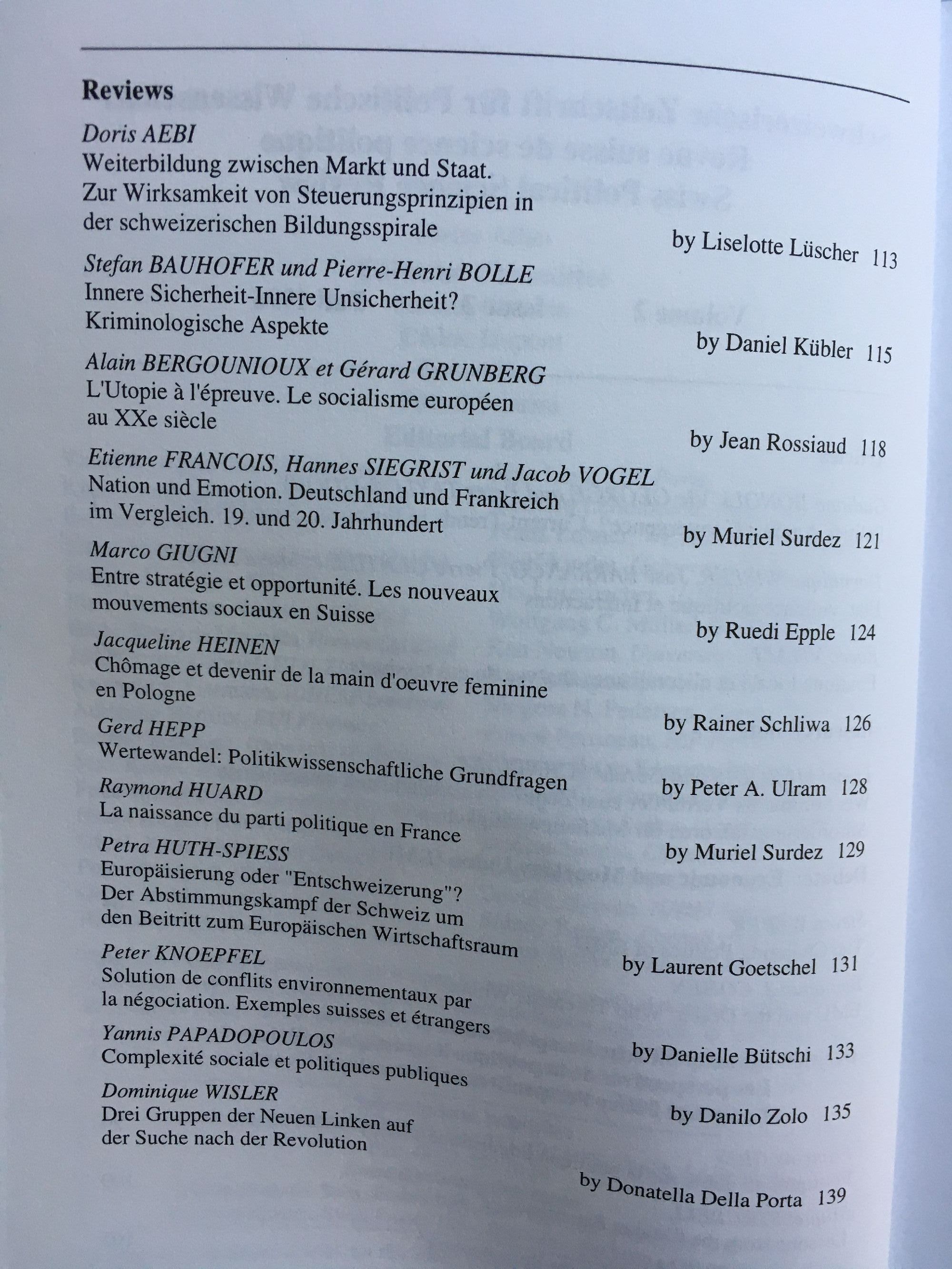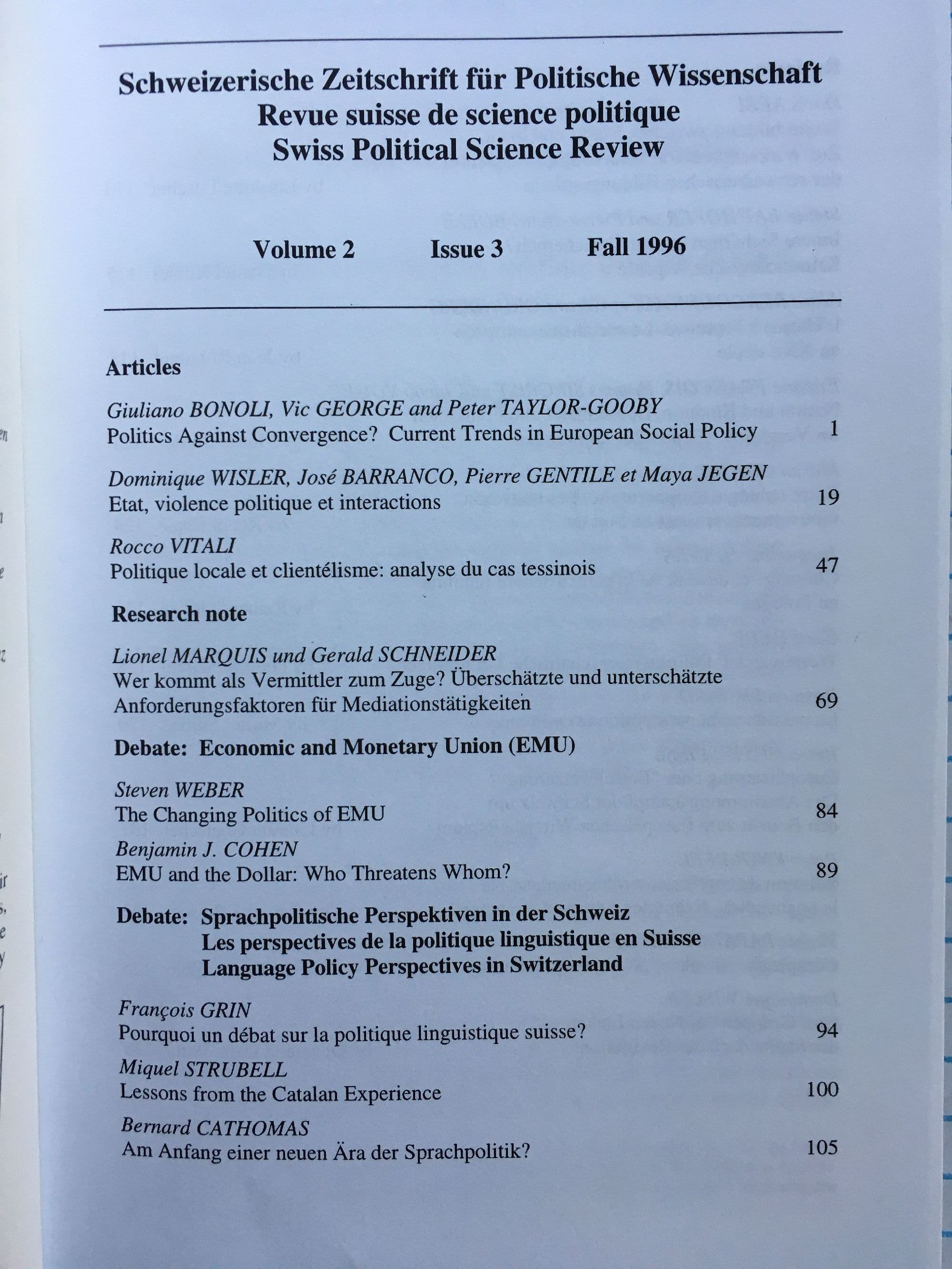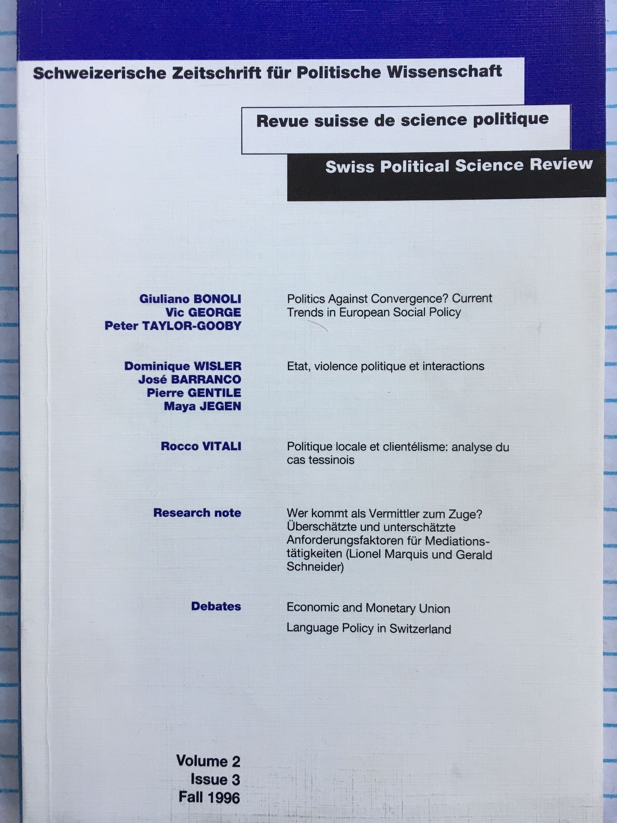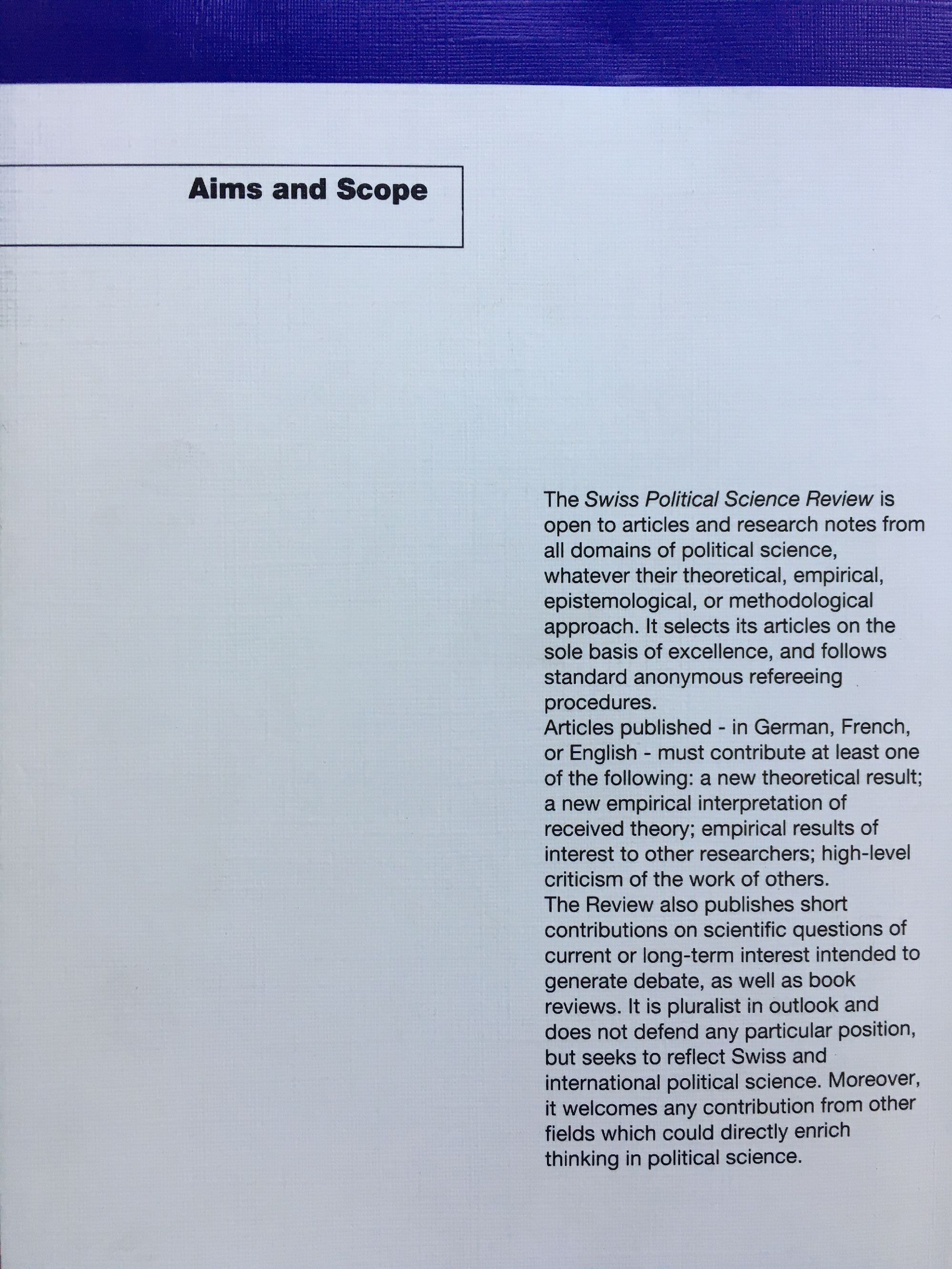 Schweizerische Zeitschrift fur Politische Wissenschaft / Revue Suisse de Science Politique / Swiss Political Science Review