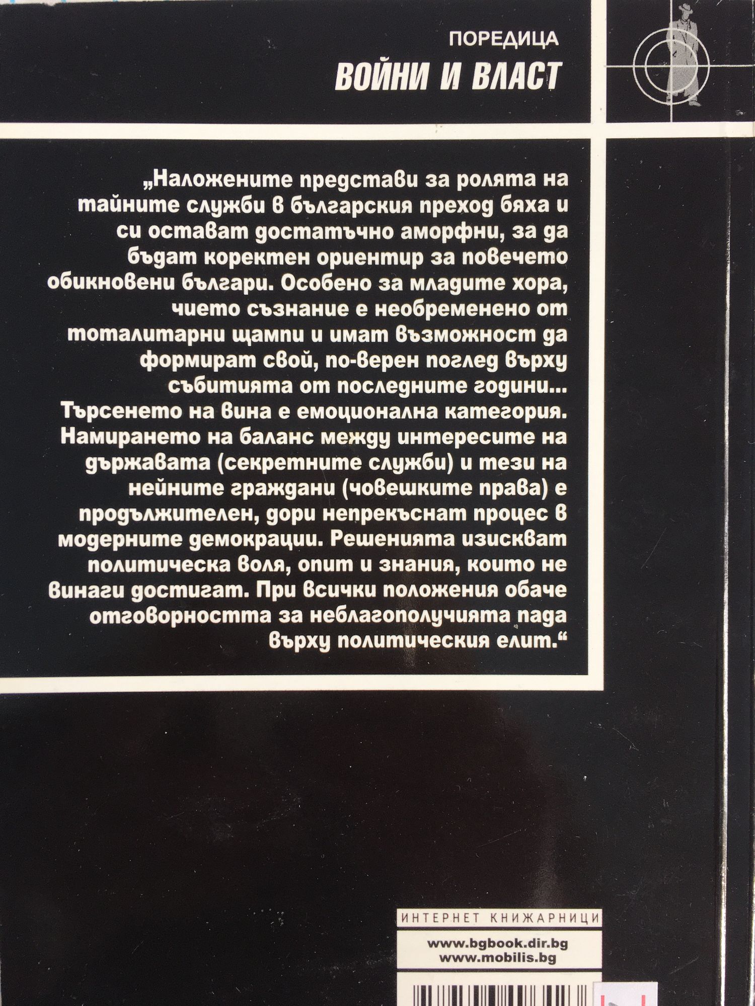 „Наложените представи за ролята на тайните служби в българския преход бяха и си остават достатъчно аморфни, за да бъдат коректен ориентир за повечето обикновени българи. Особено за младите хора, чието съзнание е необременено от тоталитарни щампи и имат възможност да формират свой, по-верен поглед върху събитията от последните години... Търсенето на вина е емоционална категория. Намирането на баланс между интересите на държавата (секретните служби) и тези на нейните граждани (човешките права) е продължителен, дори непрекъснат процес в модерните демокрации. Решенията изискват политическа воля, опит и знания, които не винаги достигат. При всички положения обаче отговорността за неблагополучията пада върху политическия елит." Чавдар Христов