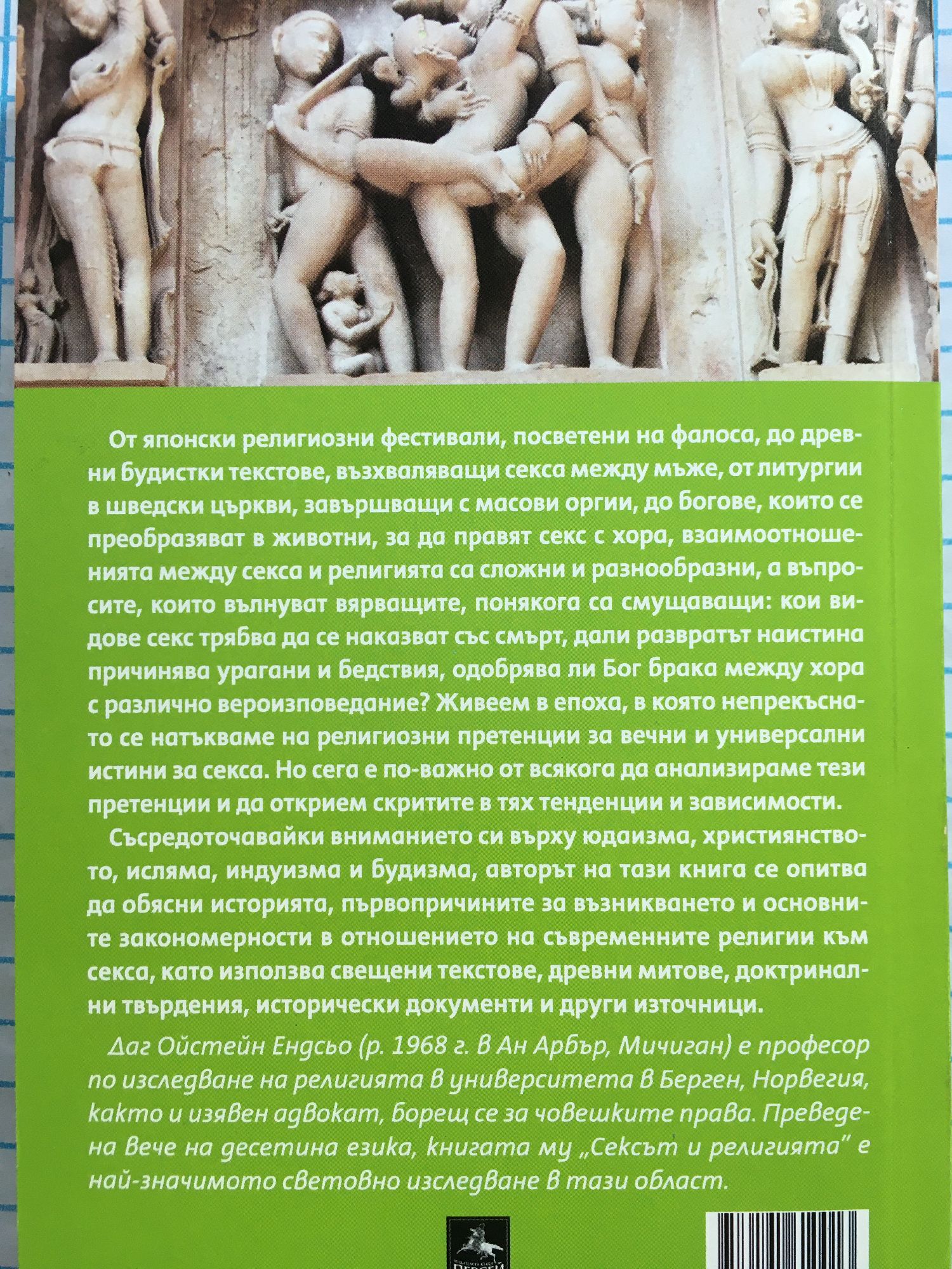 От японските религиозни фестивали, посветени на фалоса, до древни будистки текстове, възхваляващи секса между мъже, от литургии в шведски църкви, завършващи с масови оргии, до богове, които се преобразяват в животни, за да правят секс с хора, взаимоотношенията между секса и религията са сложни и разнообразни.