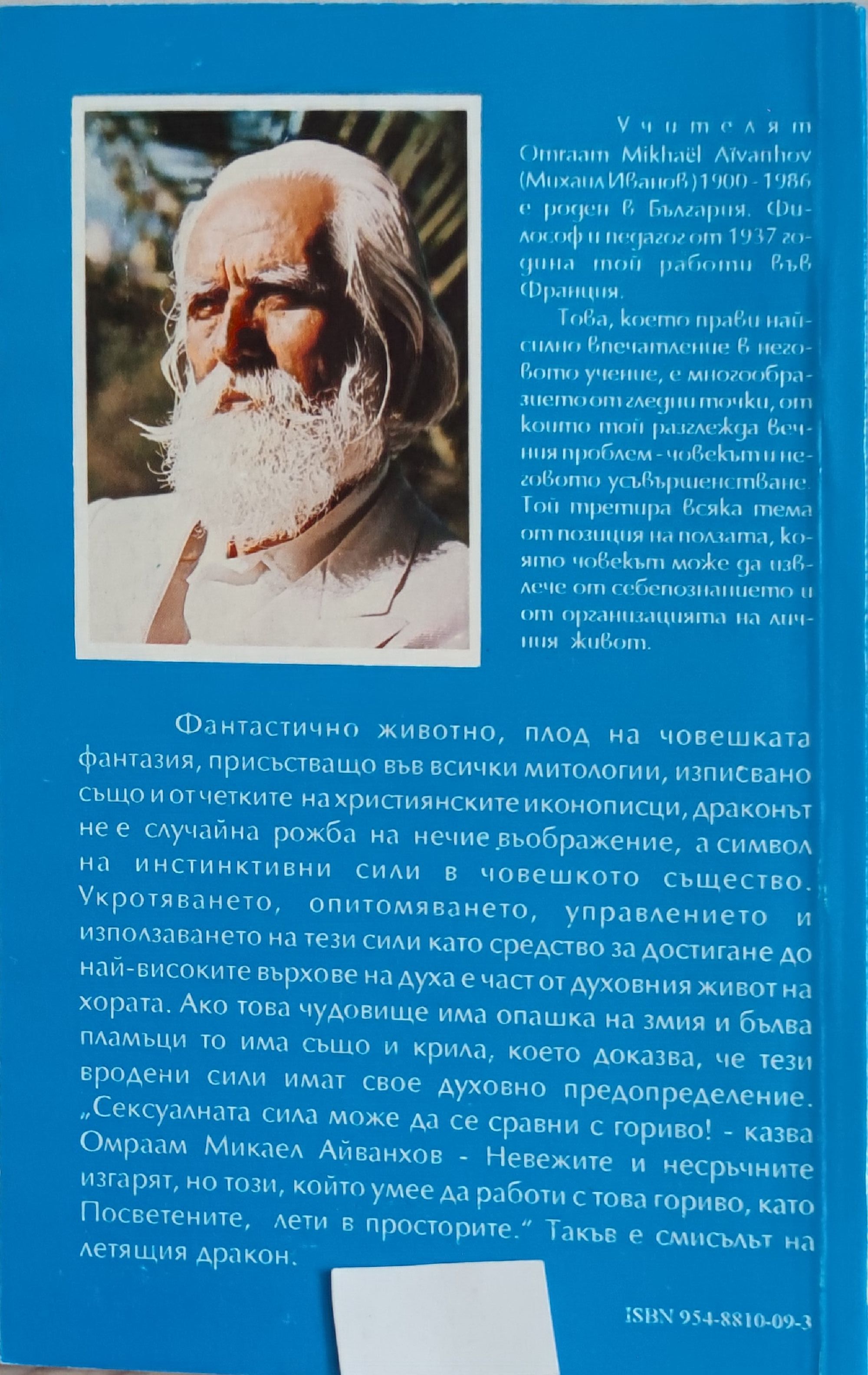 Фантастично животно, плод на човешката фантазия, присъстващо във всички митологии, изписвано също и от четките на християнските иконописци, драконът не е случайна рожба на нечие въображение, а символ на инстинктивни сили в човешкото същество. Укротяването, опитомяването, управлението и използването на тези сили като средство за достигане до най-високите върхове на духа е част от духовния живот на хората. Ако това чудовище има опашка на змия и бълва пламъци то има също и крила, което доказва, че тези вродени сили имат свое духовно предопределение. "Сексуалната сила може да се сравни с гориво! - казва Омраам Микаел Айванхов - Невежите и несръчните изгарят, но този, който умее да работи с това гориво, като Посветените, лети в просторите." Такъв е смисълът на летящия дракон.