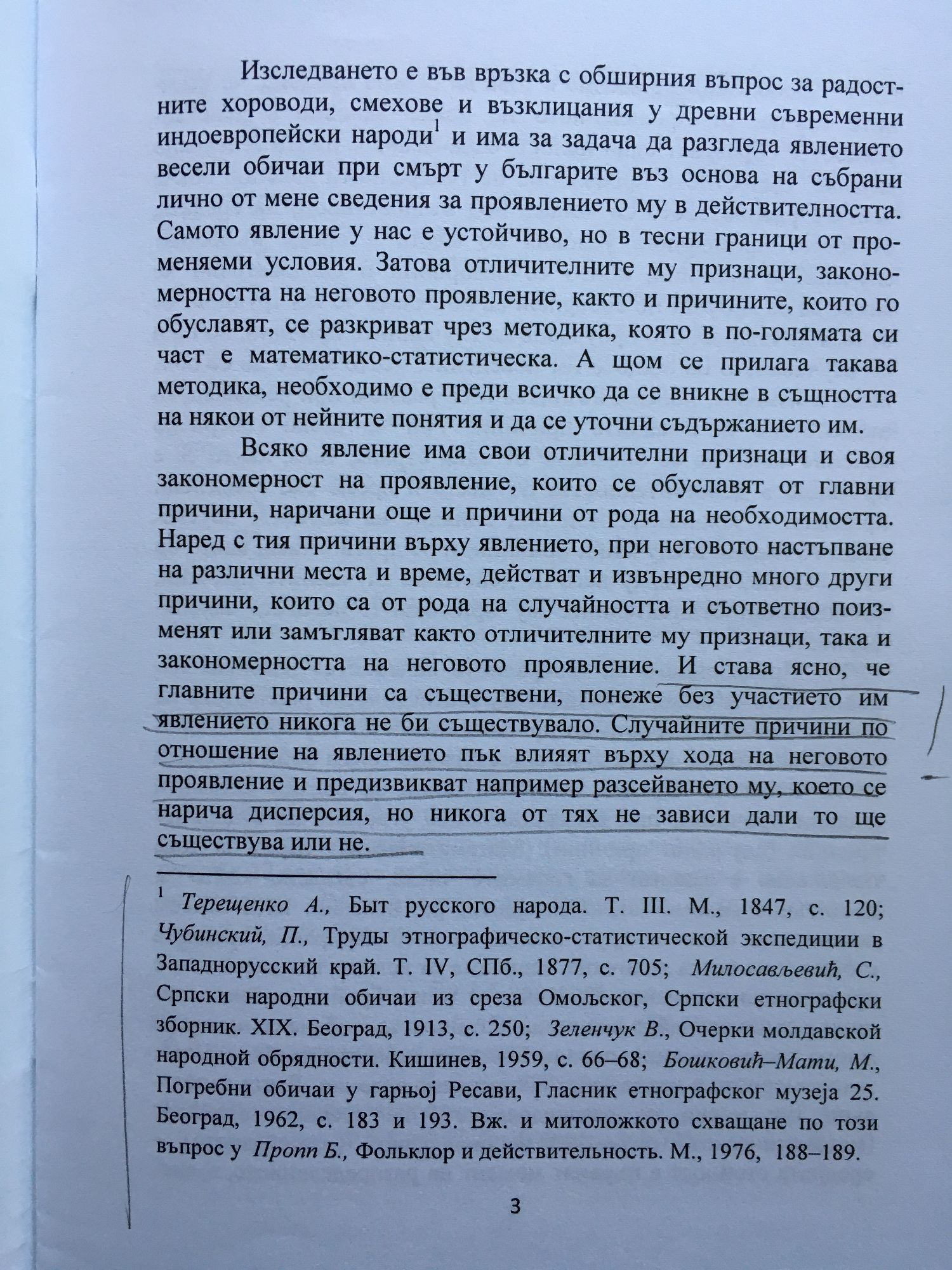 Изследването е във връзка с обширния въпрос за радостните хороводи, смехове и възклицания у древни съвременни индоевропейски народи1 и има за задача да разгледа явлението весели обичаи при смърт у българите въз основа на събрани лично от мене сведения за проявлението му в действителността. Самото явление у нас е устойчиво, но в тесни граници от променяеми условия. Затова отличителните му признаци, закономерността на неговото проявление, както и причините, които го обуславят, се разкриват чрез методика, която в по-голямата си част е математико-статистическа. А щом се прилага такава методика, необходимо е преди всичко да се вникне в същността на някои от нейните понятия и да се уточни съдържанието им.