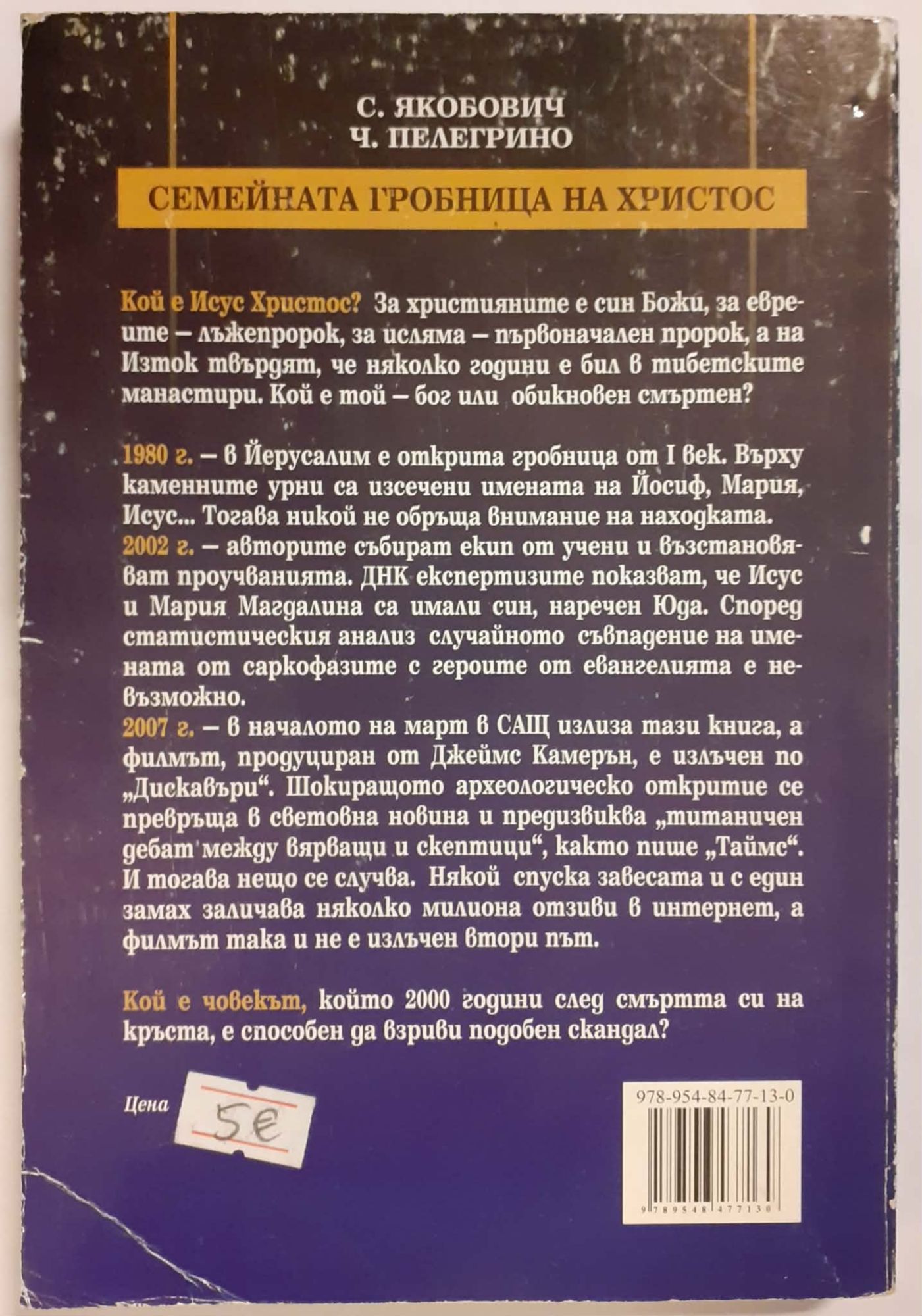5,00 € / 9,78 лв.Много добро състояние на книжното тяло. С частично захабяване и прегънат долен ъгъл на задната корица (вж. снимка), предната със сравнително леки следи по ръбовете. Пожълтели страници, отметки (също на абзаци) и малко подчертавания на няколко места до 76-та стр.