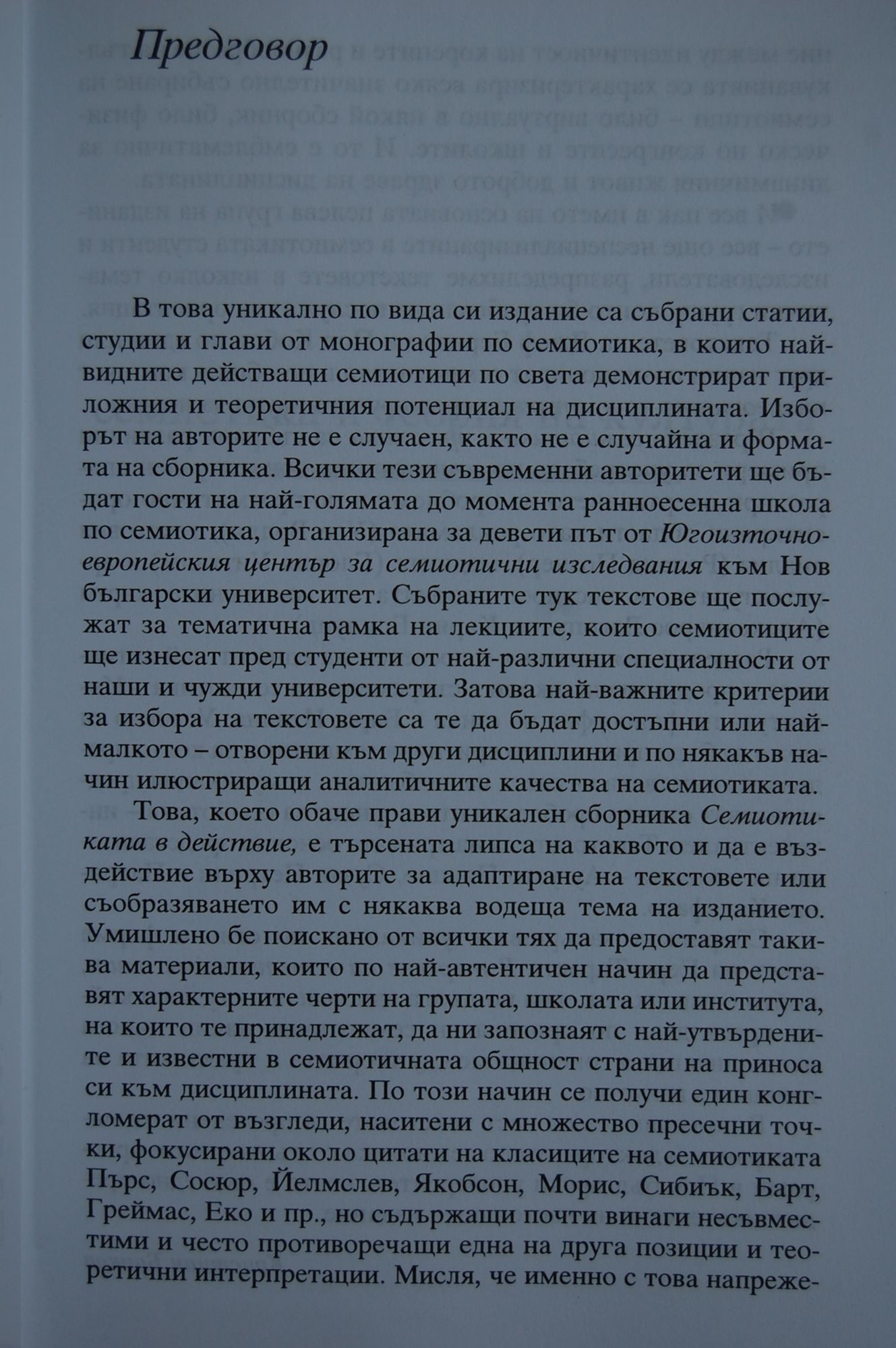 В това уникално по вида си издание са събрани статии, студии и глави от монографии по семиотика, в които най-видните действащи семиотици по света демонстрират приложения и теоретичния потенциал на дисциплината.