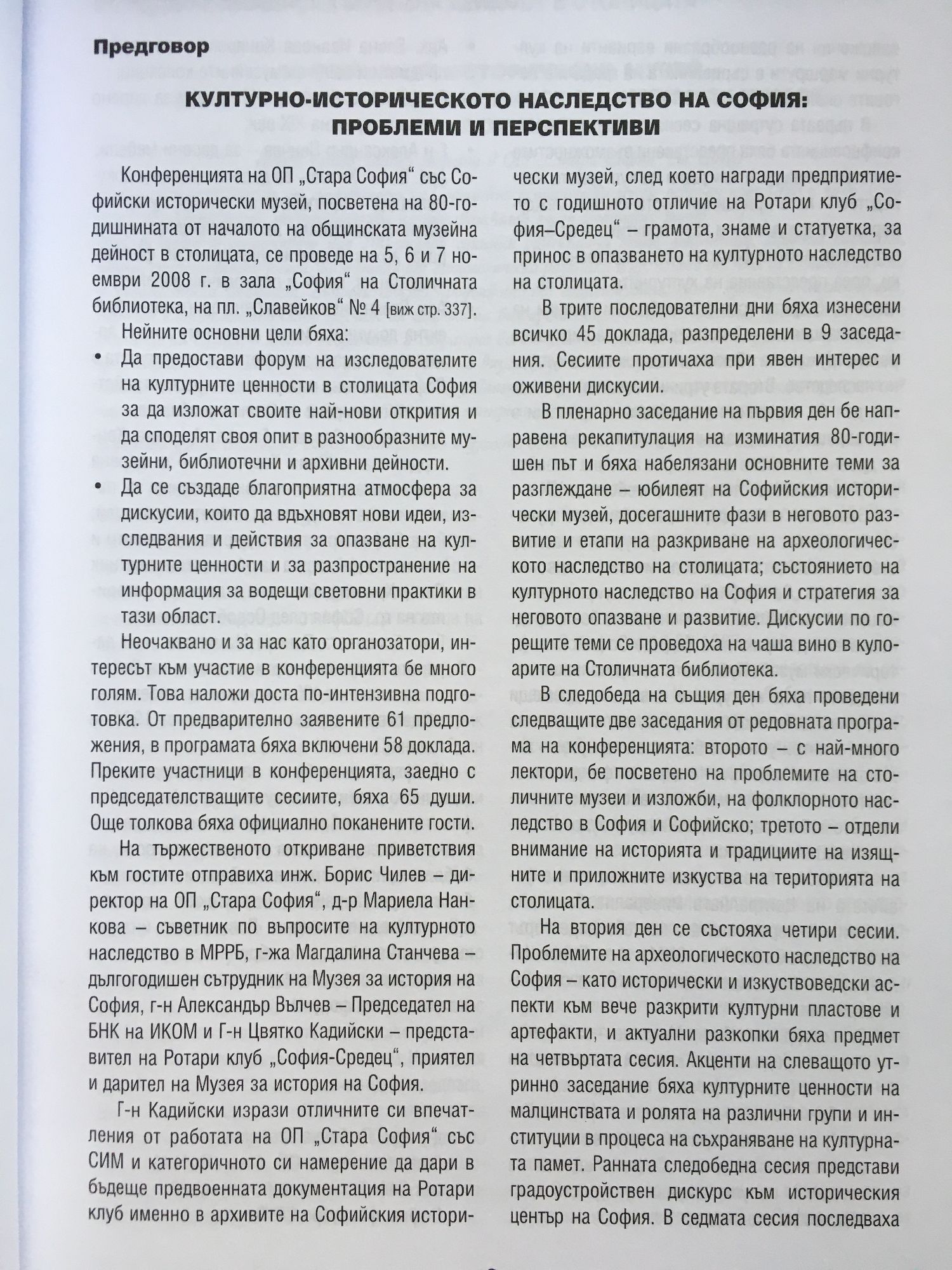 Културно-историческо наследство на София: Проблеми и перспективи