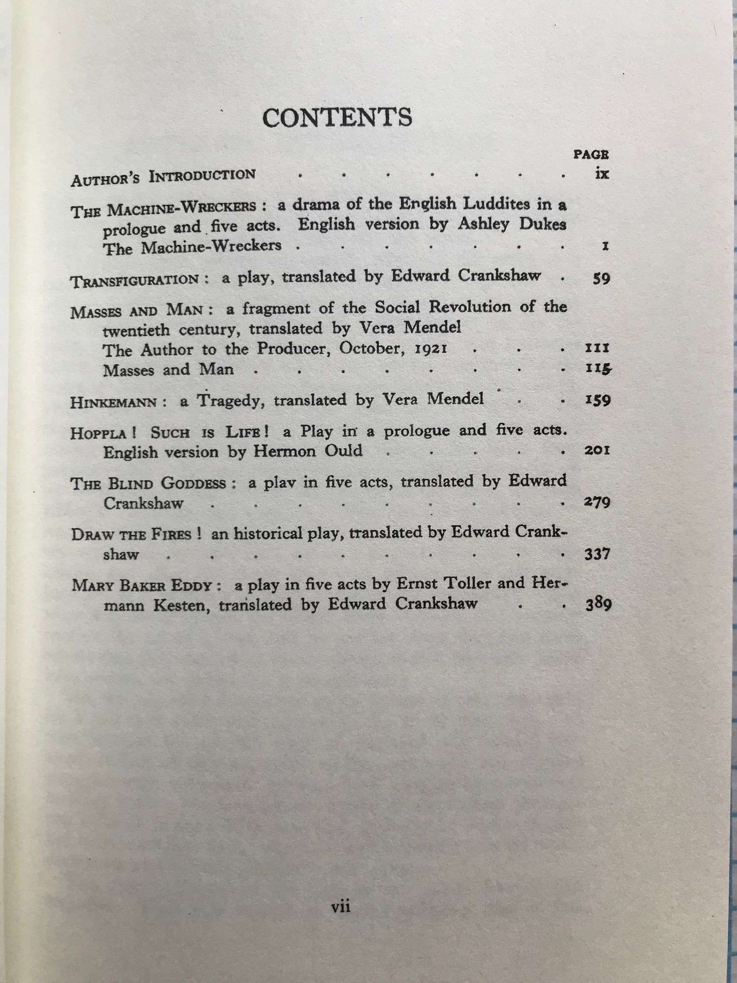 Seven Plays - Comprising, The Machine-Wreckers, Transiguration, Masses and Man, Hinkemann, Hoppla! Such is Life, the Blind Goddess, Draw the Fires!