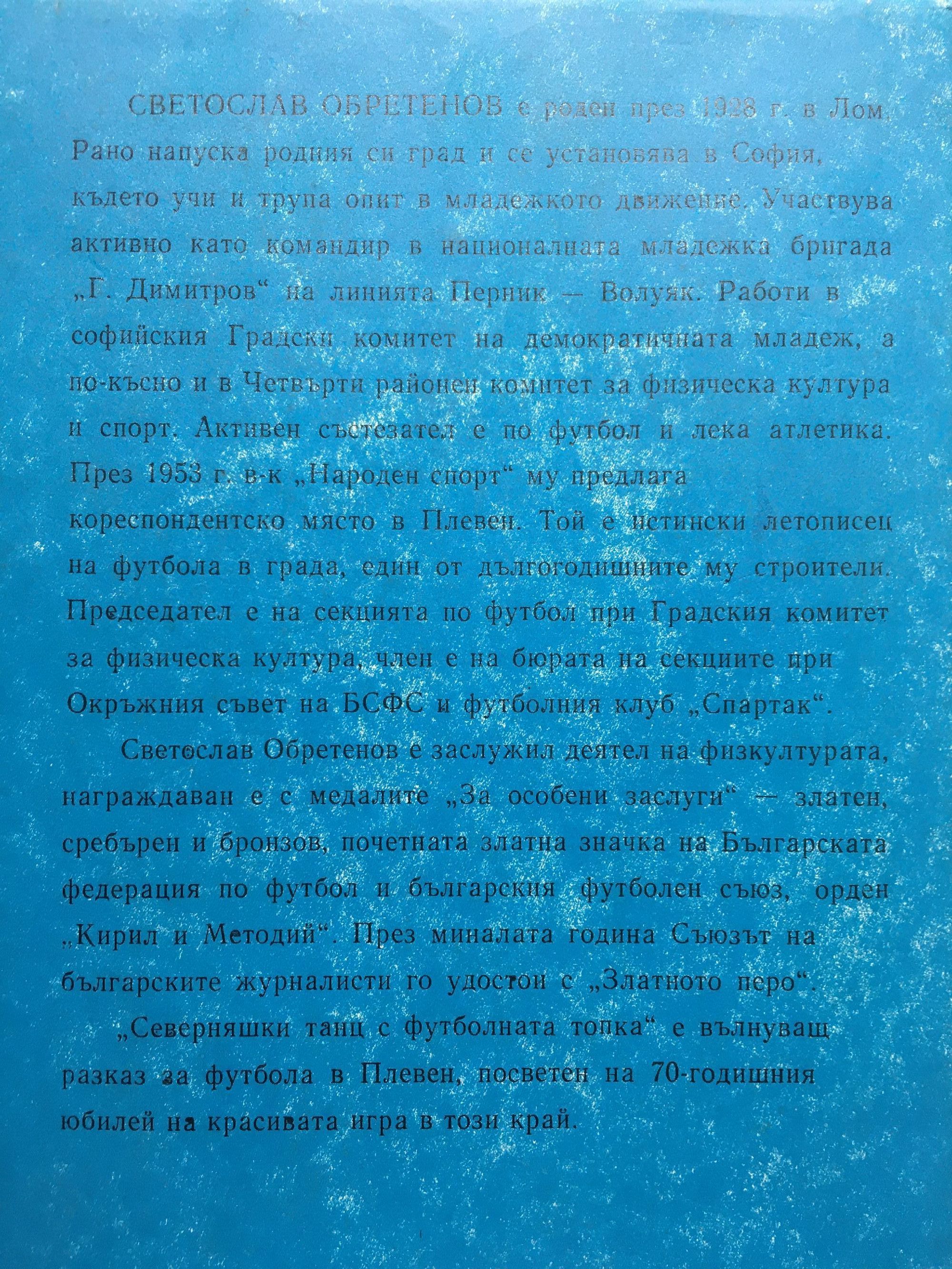 43,46 € / 85,00 лв.Много добро състояние на книжното тяло. С надпис за подарък от ФК "Спартак". Забележки по обложката и леко пожълтели страници. Телефон и име върху вътрешна страна на обложката, накрая.