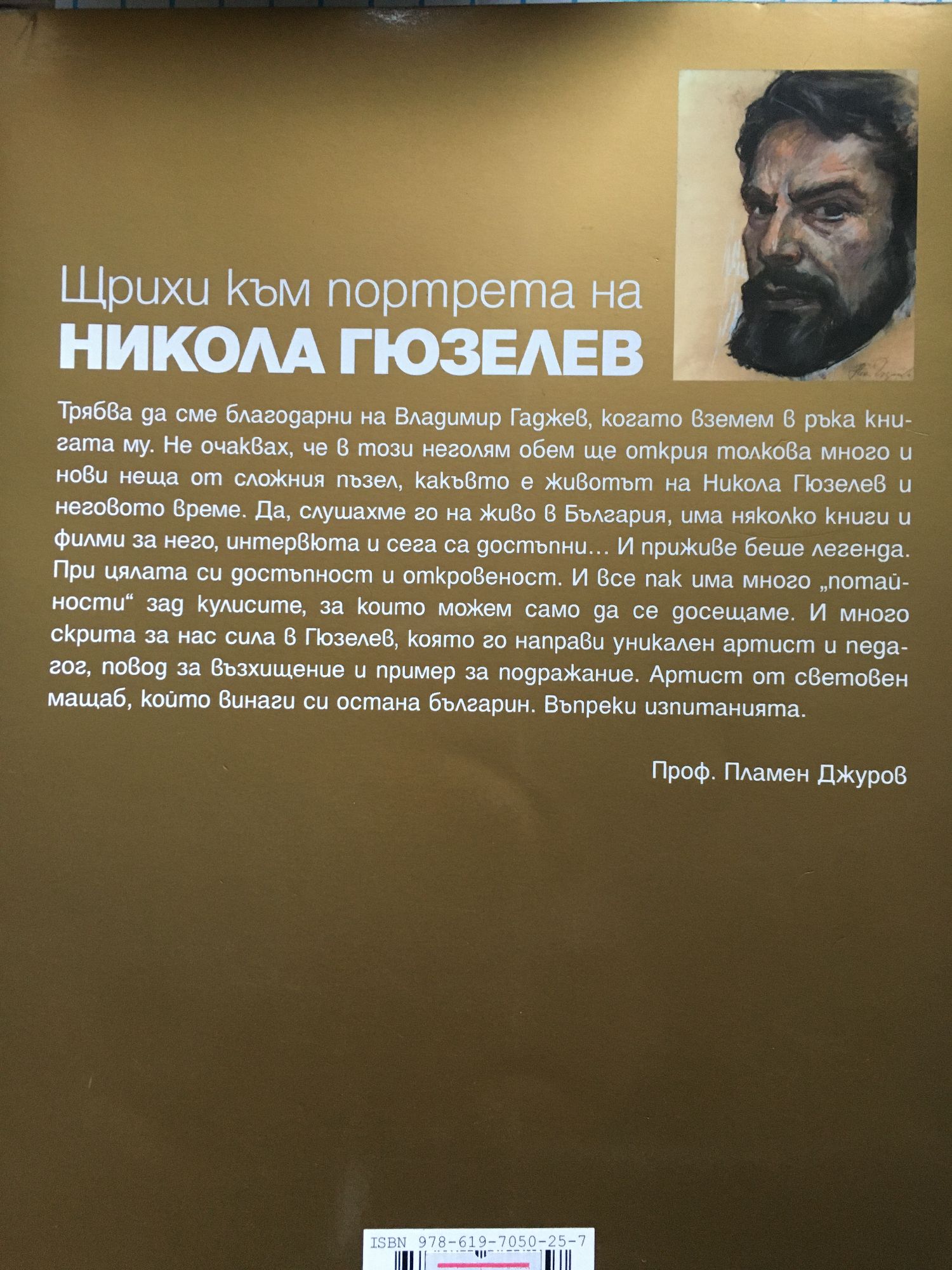Трябва да сме благодарни на Владимир Гаджев, когато вземем в ръка книгата му. Не очаквах, че в този неголям обем ще открия толкова много и нови неща от сложния пъзел, какъвто е животът на Никола Гюзелев и неговото време. Да, слушахме го на живо в България, има няколко книги и филми за него, интервюта и сега са достъпни... И приживе беше легенда. При цялата си достъпност и откровеност. И все пак има много "потайности" зад кулисите, за които можем само да се досещаме. И много скрита за нас сила в Гюзелев, която го направи уникален артист и педагог, повод за възхищение и пример за подражание. Артист от световен мащаб, който винаги си остана българин. Въпреки изпитанията. (Проф. Пламен Джуров)