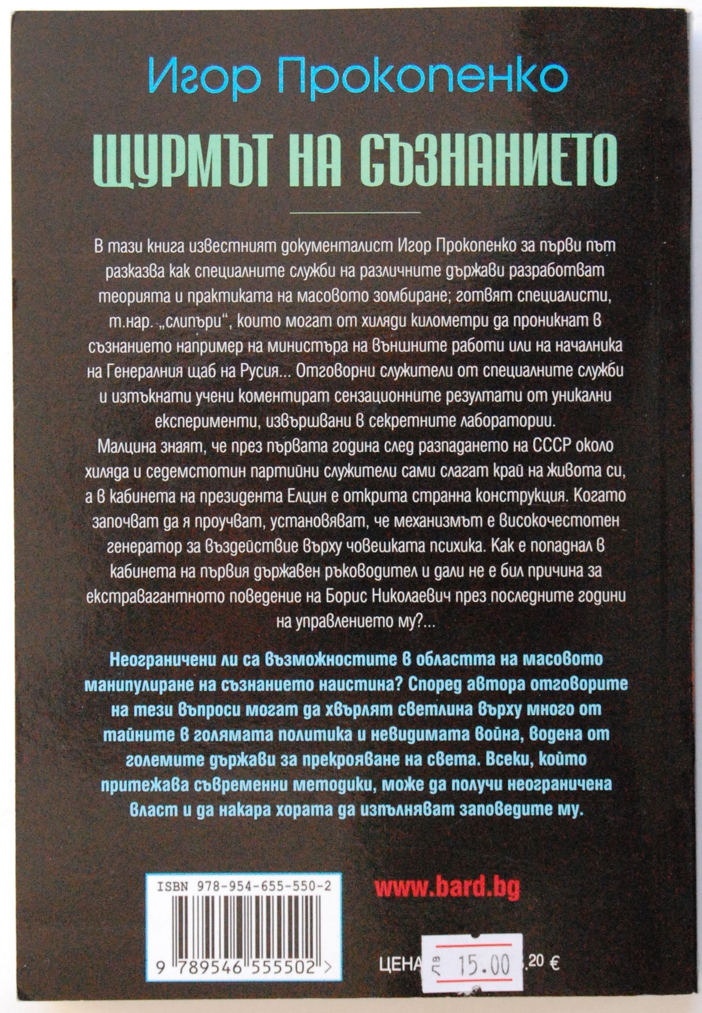 В тази книга известният документалист Игор Прокопенко за първи път разказва как специалните служби на различните държави разработват теорията и практиката на масовото зомбиране; готвят специалисти, т.нар. „слипъри“, които могат от хиляди километри да проникнат в съзнанието например на министъра на външните работи или на началника на Генералния щаб на Русия... Отговорни служители от специалните служби и изтъкнати учени коментират сензационните резултати от уникални експерименти, извършвани в секретните лаборатории.