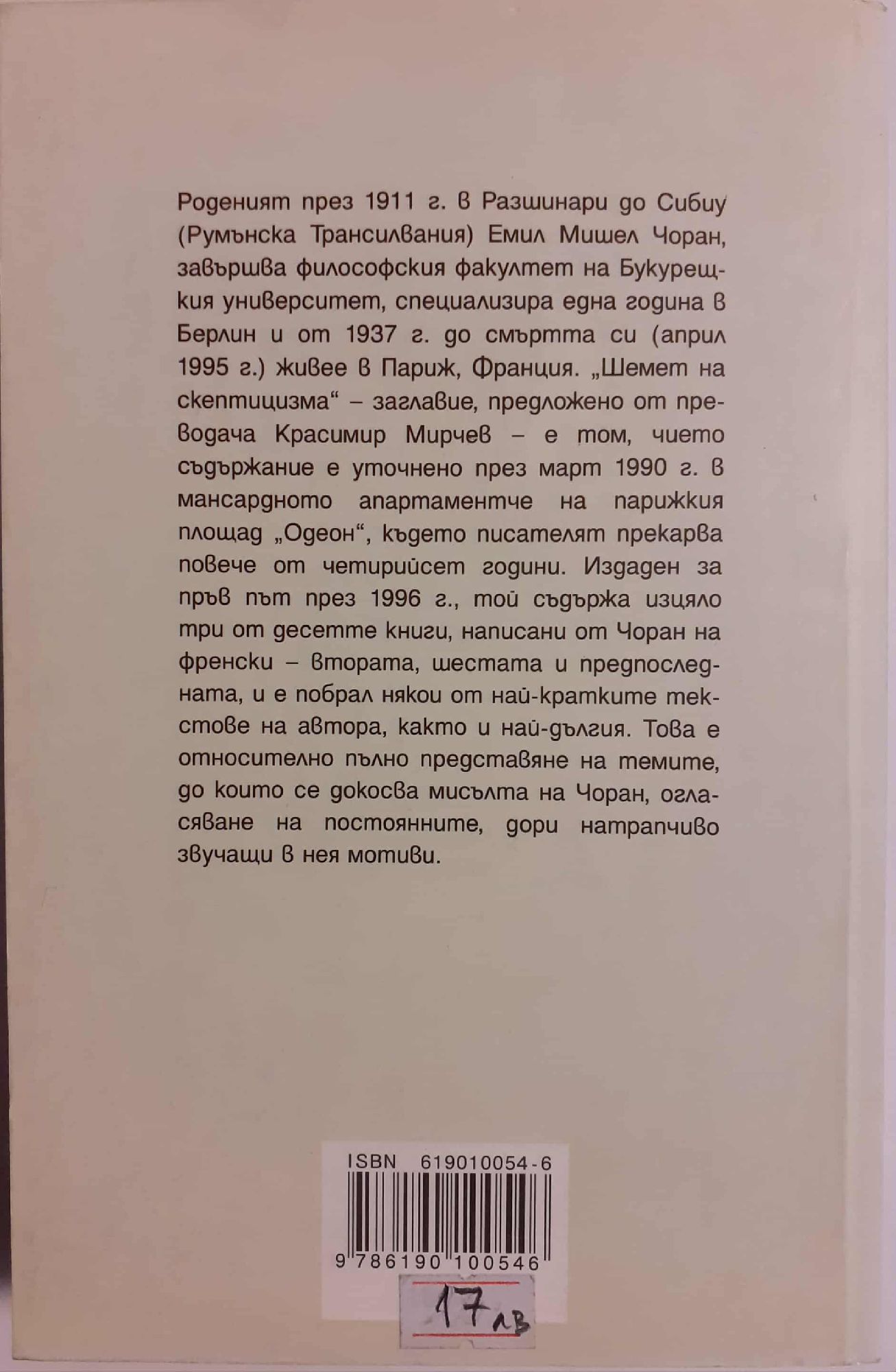 8,69 € / 17,00 лв.Много добро състояние на книжното тяло. Почти отлично. С незначителни следи от употреба; минимална следа в горния край на гръбчето; пожълтели страници.
