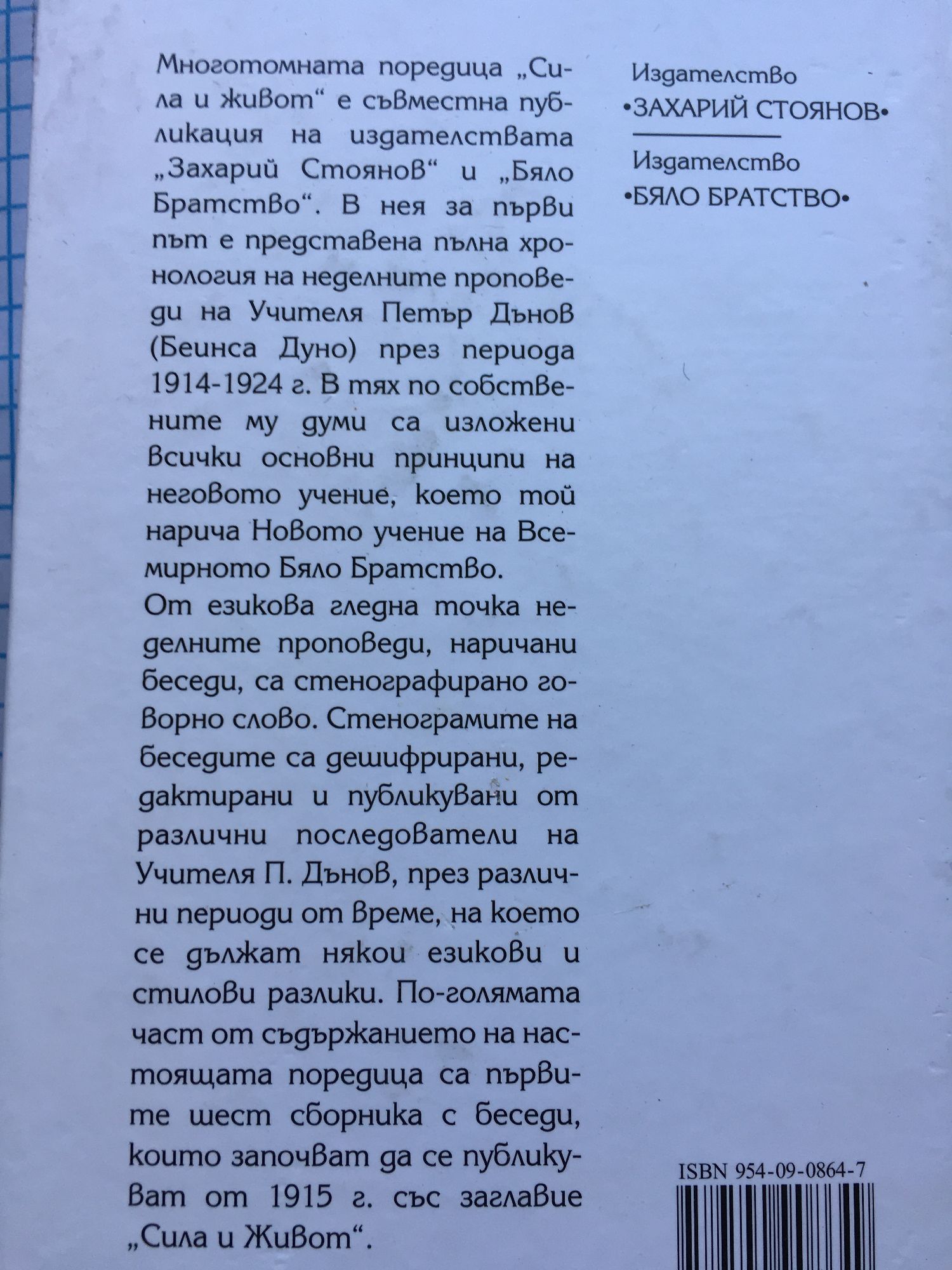 - издателство: "Захарий Стоянов", "Бяло братство"