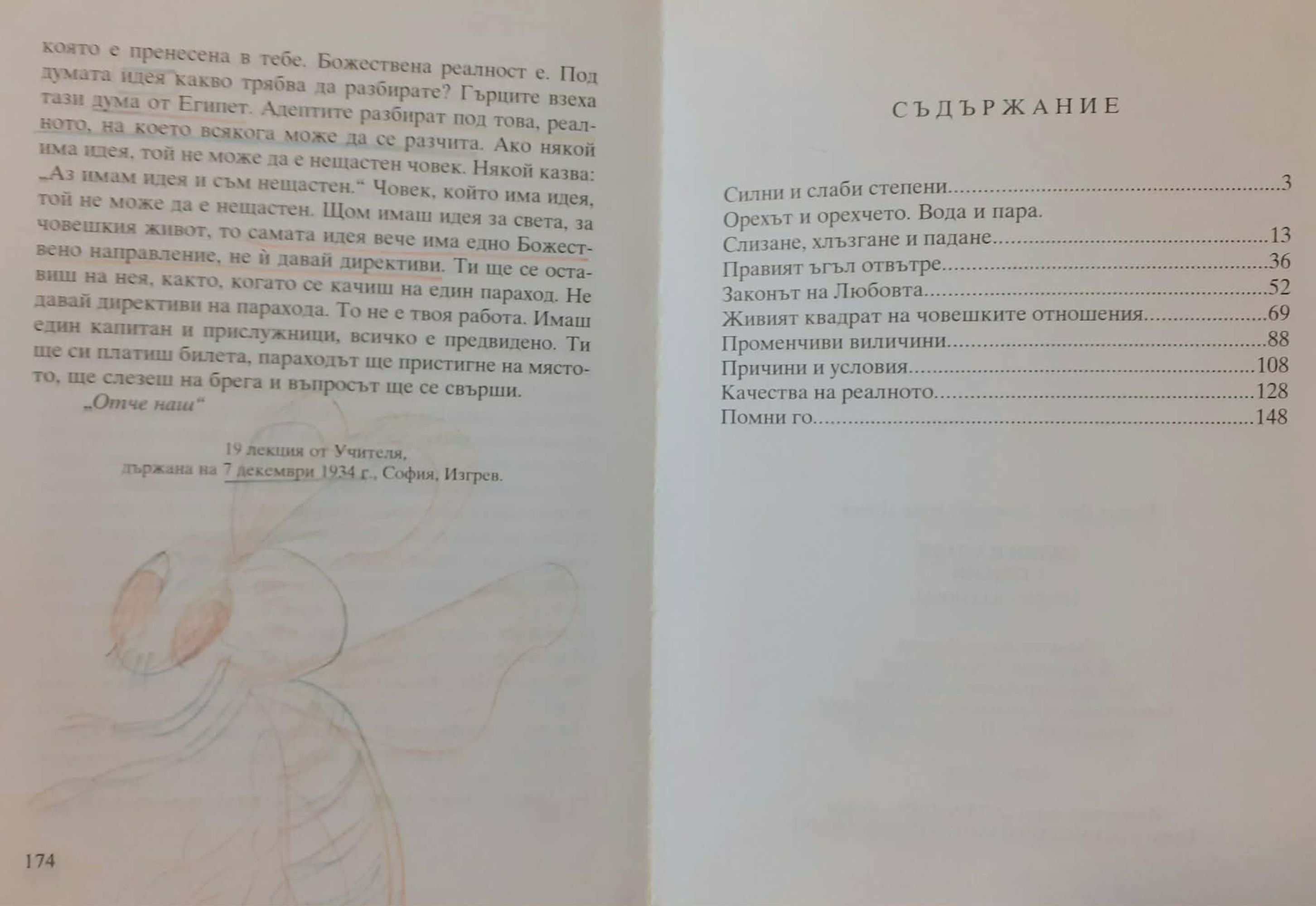 "Има неща, които могат да се преустановят и такива, които не могат да се преустановят. Това показва, че има неща, които трябва да се плащат. В природата това се нарича смяна. При това някои неща могат да дойдат по-усилено, а някои по-слабо. Например за добрите, за разумните хора някои неща могат да дойдат в по-слаб размери, а за глупавите - в по-усилен размер. Същото нещо може да се каже и за доброто, и за злото. Ако си умен човек, доброто ще дойде при теб в по-силен начин, а злото в по-слаб. Ако си глупав, доброто ще дойде за теб в по-слаб начин, а злото в по-силен. Можете ли да схванете разликата? Глупавият, лошият човек страда повече, а добрият, разумният по-малко. Това не показва, че добрият, разумният няма да страда, но като разумен, той ще вземе в съображение много неща и по този начин ще избегне силата на злото. Значи за добрия, за разумния, доброто ще дойде в по-силна степен. Това показва, че във всички неща има една постепенност.."