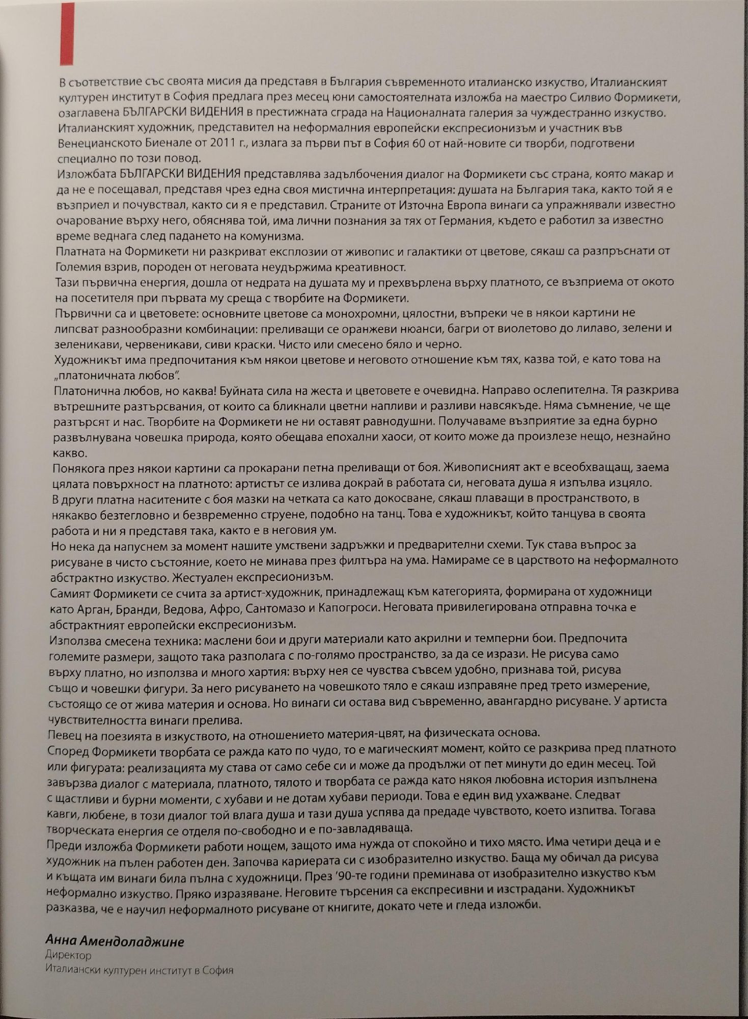 Текстове на български и италиански.