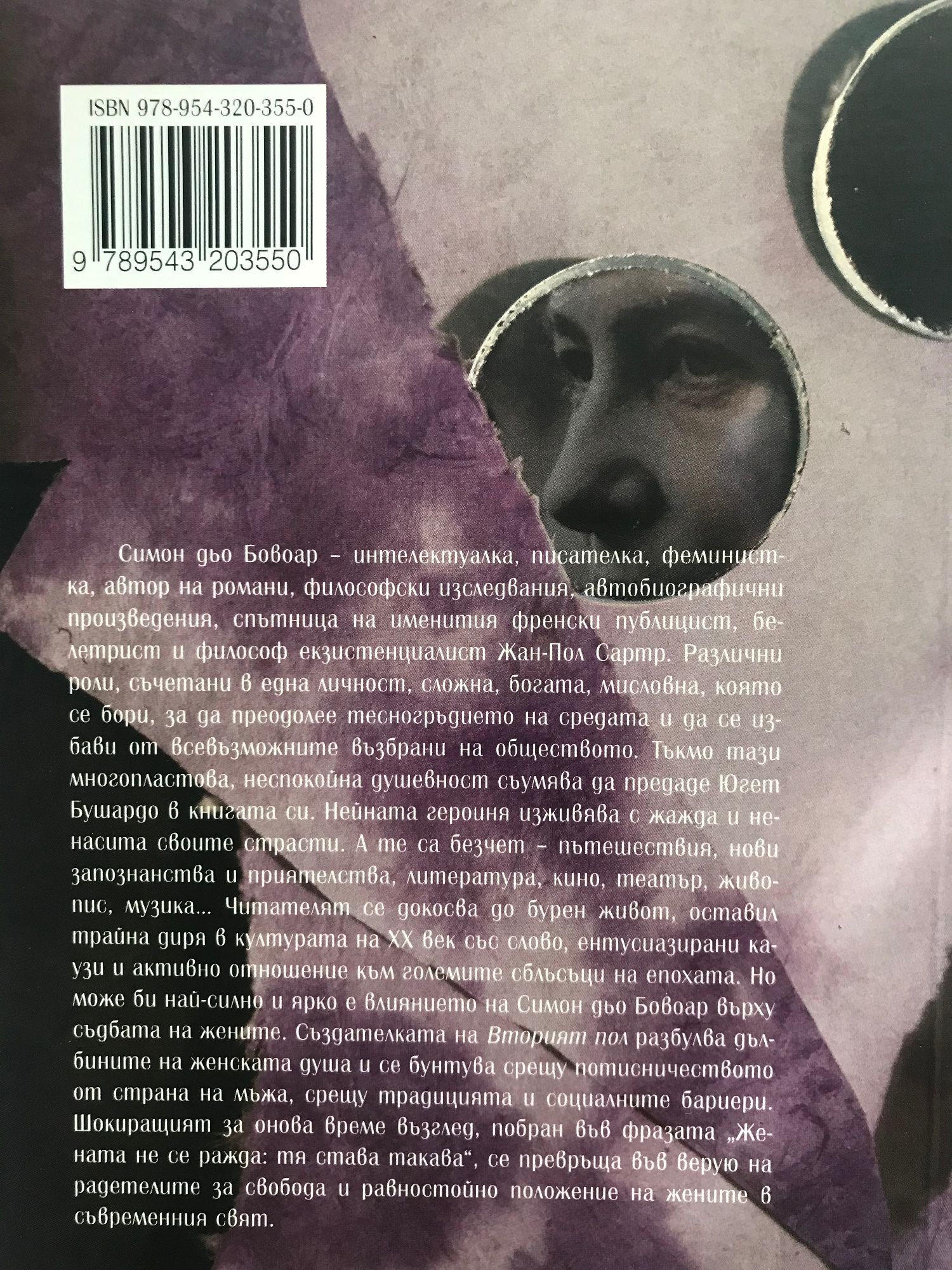 Симон дьо Бовоар - интелектуалка, писателка, феминистка, автор на романи, философски изследвания, автобиографични произведения, спътница на именития френски публицист, белетрист и философ екзистенциалист Жан-Пол Сартр. Различни роли, съчетани в една личност, сложна, богата, мисловна, която се бори, за да преодолее тесногръдието на средата и да се избави от всевъзможните възбрани на обществото. Тъкмо тази многопластова, неспокойна душевност съумява да предаде Югет Бушардо в книгата си. Нейната героиня изживява с жажда и ненасита своите страсти. А те са безчет - пътешествия, нови запознанства и приятелства, литература, кино, театър, живопис, музика... Читателят се докосва до бурен живот, оставил трайна диря в културата на XX век със слово, ентусиазирани каузи и активно отношение към големите сблъсъци на епохата. Но може би най-силно и ярко е влиянието на Симон дьо Бовоар върху съдбата на жените. Създателката на "Вторият пол" разбулва дълбините на женската душа и се бунтува срещу потисничеството от страна на мъжа, срещу традицията и социалните бариери. Шокиращият за онова време възглед, побран във фразата: "С", се превръща във верую на радетелите за свобода и равностойно положение на жените в съвременния свят.