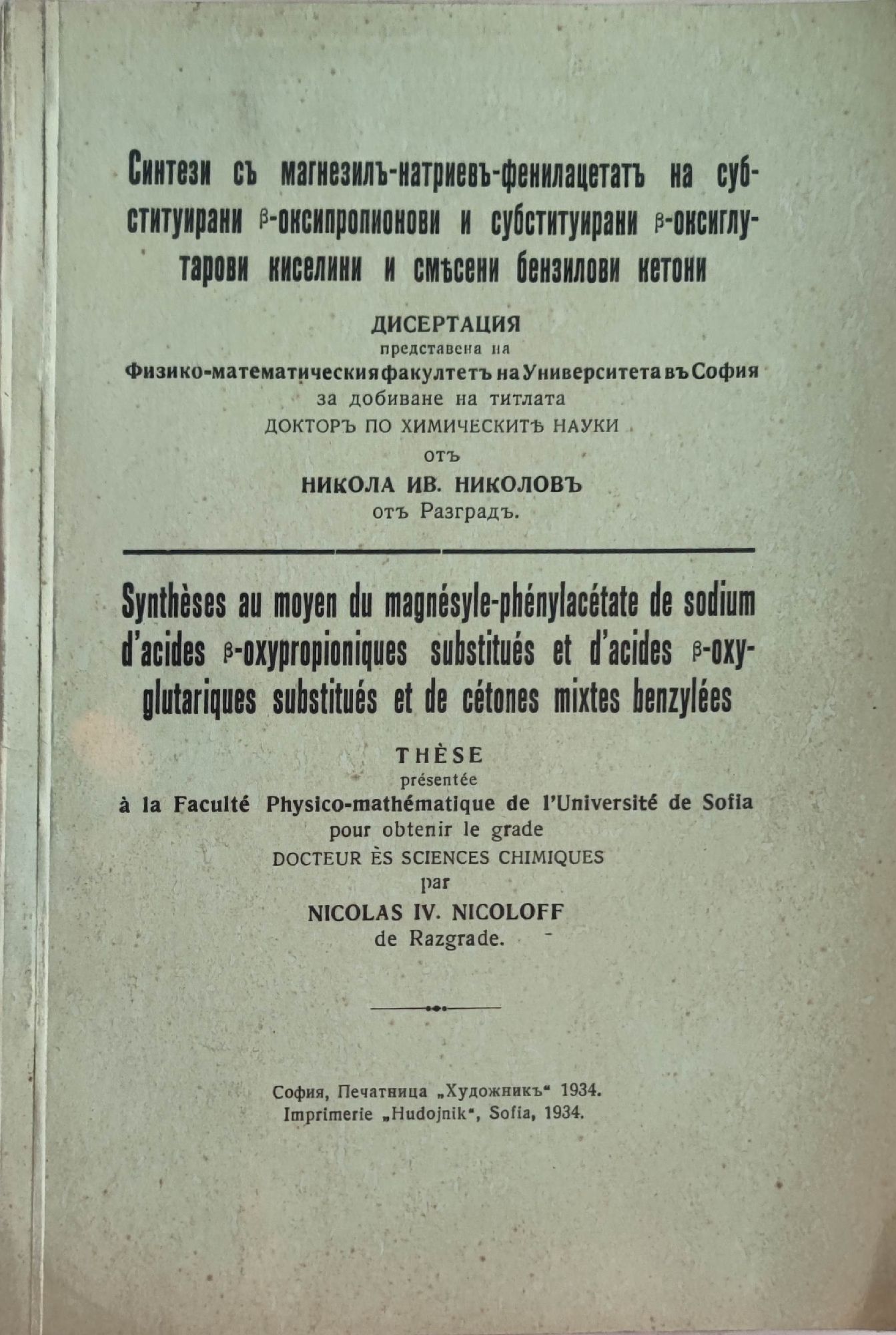 Синтези съ магнезъ-натриевъ-финилецетатъ на субституирани β-оксипролионови и субституирани β-оксиглутарови киселини и смесени бензилови кетони
