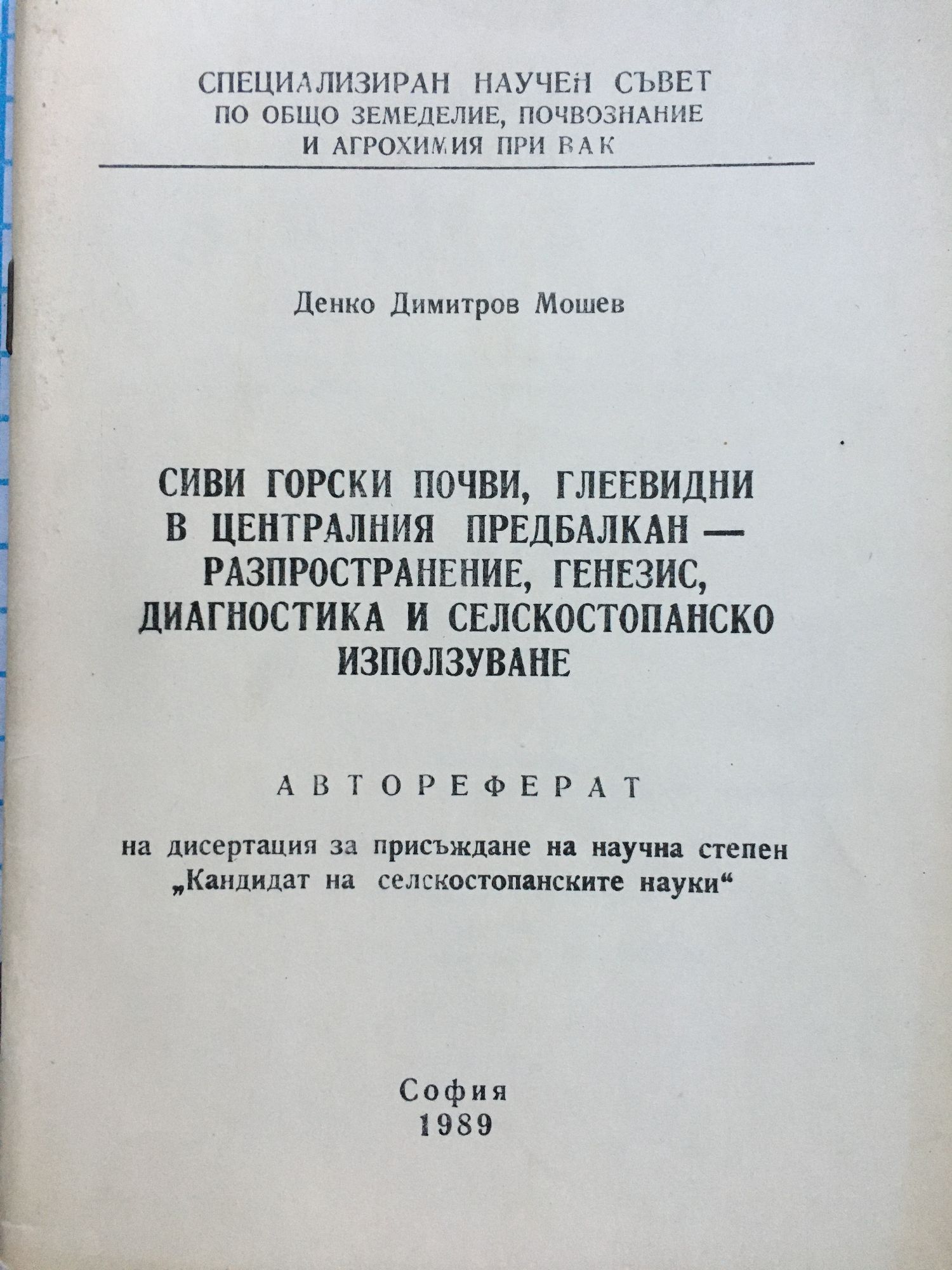 Сиви горски почви, глеевидни в централния Предбалкан - разпространение, генезис, диагностика и селскостопанско използуване