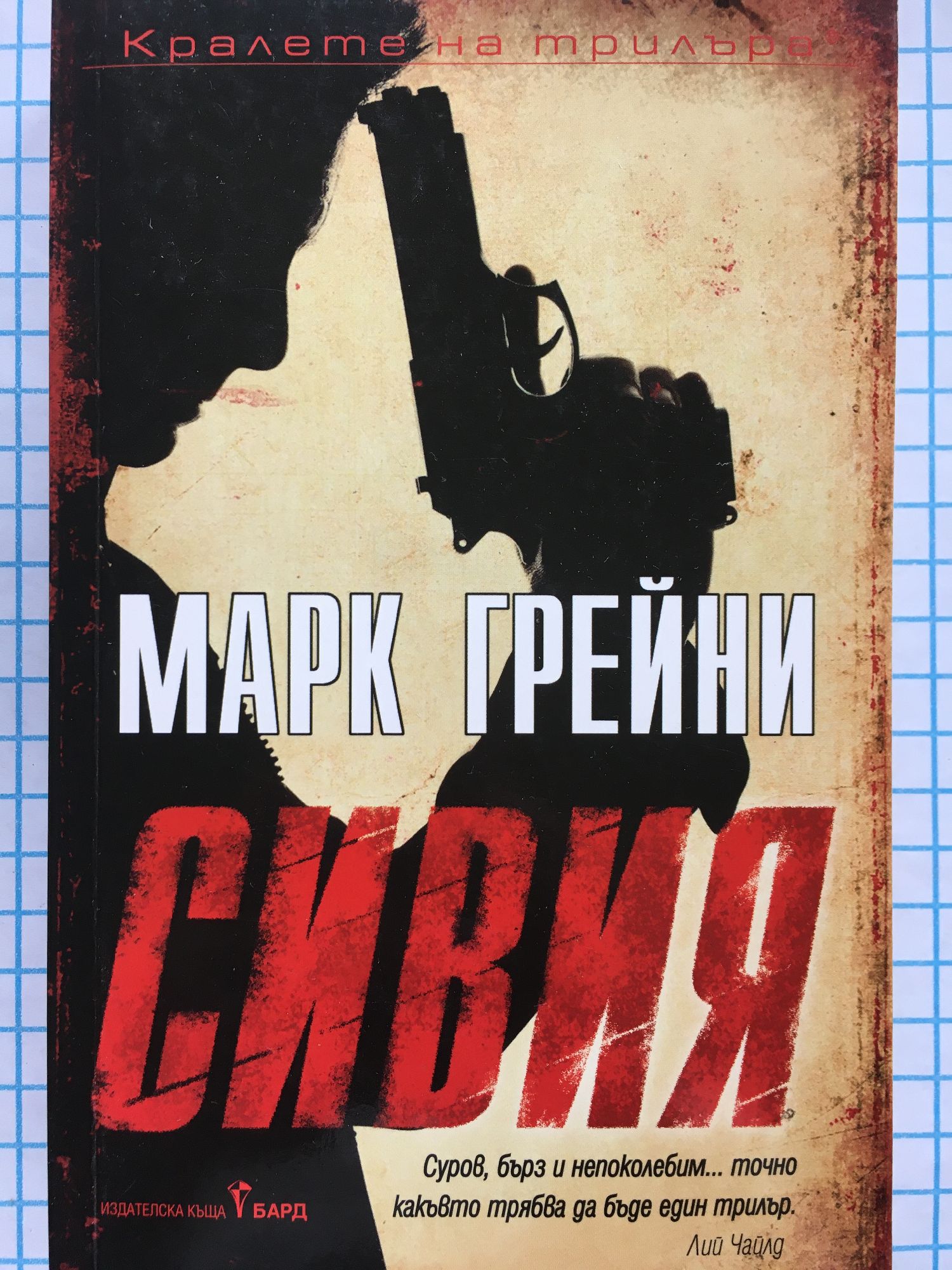 На онези, които се крият в сенките, той е известен само като Сивия. Той е легенда в света на тайните операции - способен е бързо да сменя целите, да постига невъзможното и да изчезва пак в тълпата. Но винаги открива мишената - винаги! На света обаче има сили, които са по-смъртоносни и от Сивия - сили като парите, като властта. И за някои хора това са единствените неща, за които си струва да се бориш. В очите на тези хора Сивия е надживял полезността си. Но Корт Джентри ще докаже, че за него няма сива зона между това да убиваш за пари, и да убиваш, за да оцелееш... "Възможно е в Серенгети да има гепард, който да преследва антилопа по-бързо, отколкото Марк Грейни вкарва Сивия на максимална предавка... Грейни поддържа тази история за отмъщение вряща и кипяща - един наемен убиец гори като детониращ шнур през малка армия от тренирани убийци в Прага, Цюрих, Париж и други места, насочвайки се към богатия френски аристократ, който го е издал... Прозата на Грейни е гладка като неръждаема стомана, а героят е опасен като бодлива тел... Сивия блести като изпуснат в тъмна уличка нож." Дейвид Стоун "Суров, бърз и непоколебим... точно какъвто трябва да бъде един трилър." Лий Чайлд