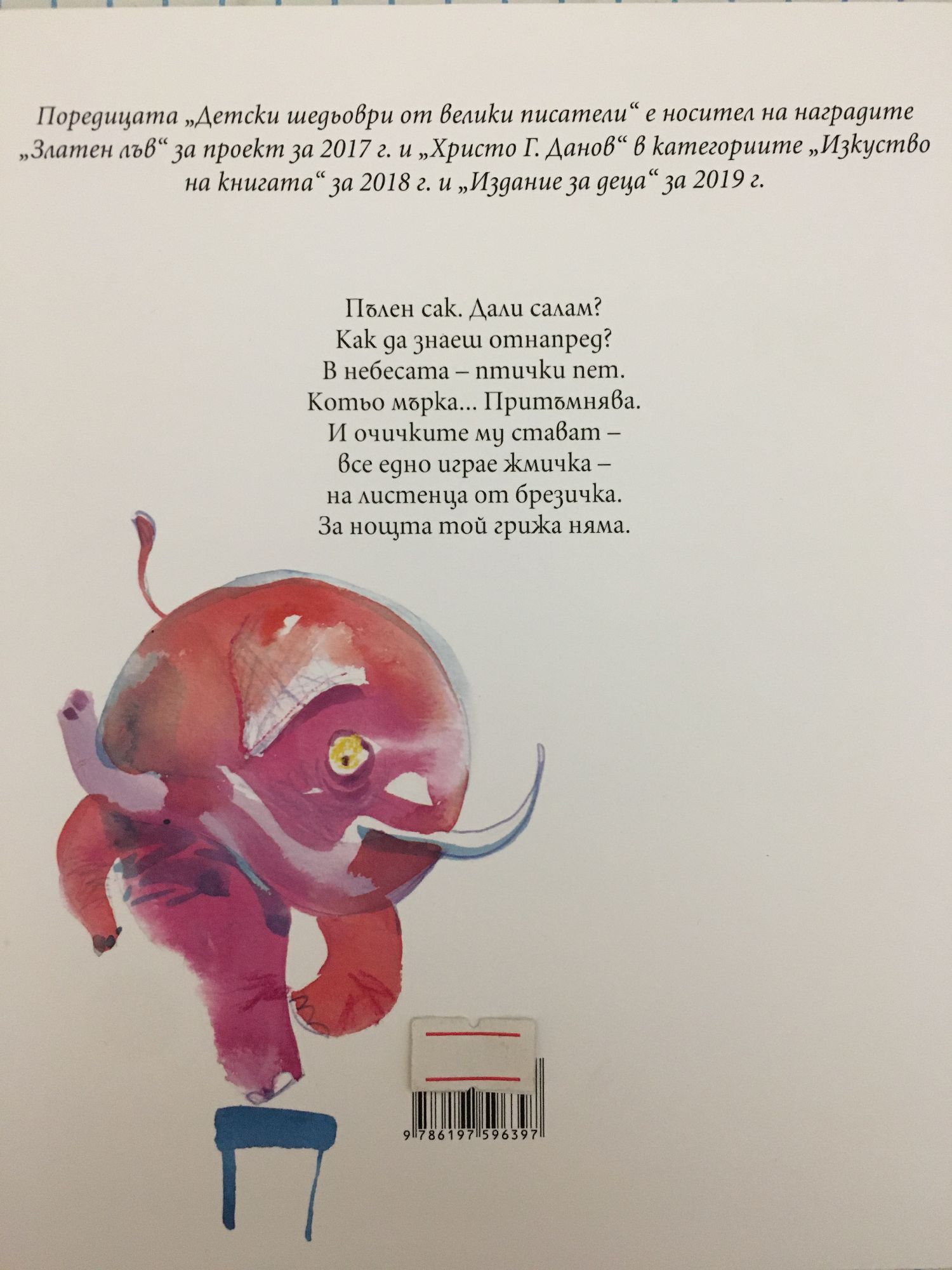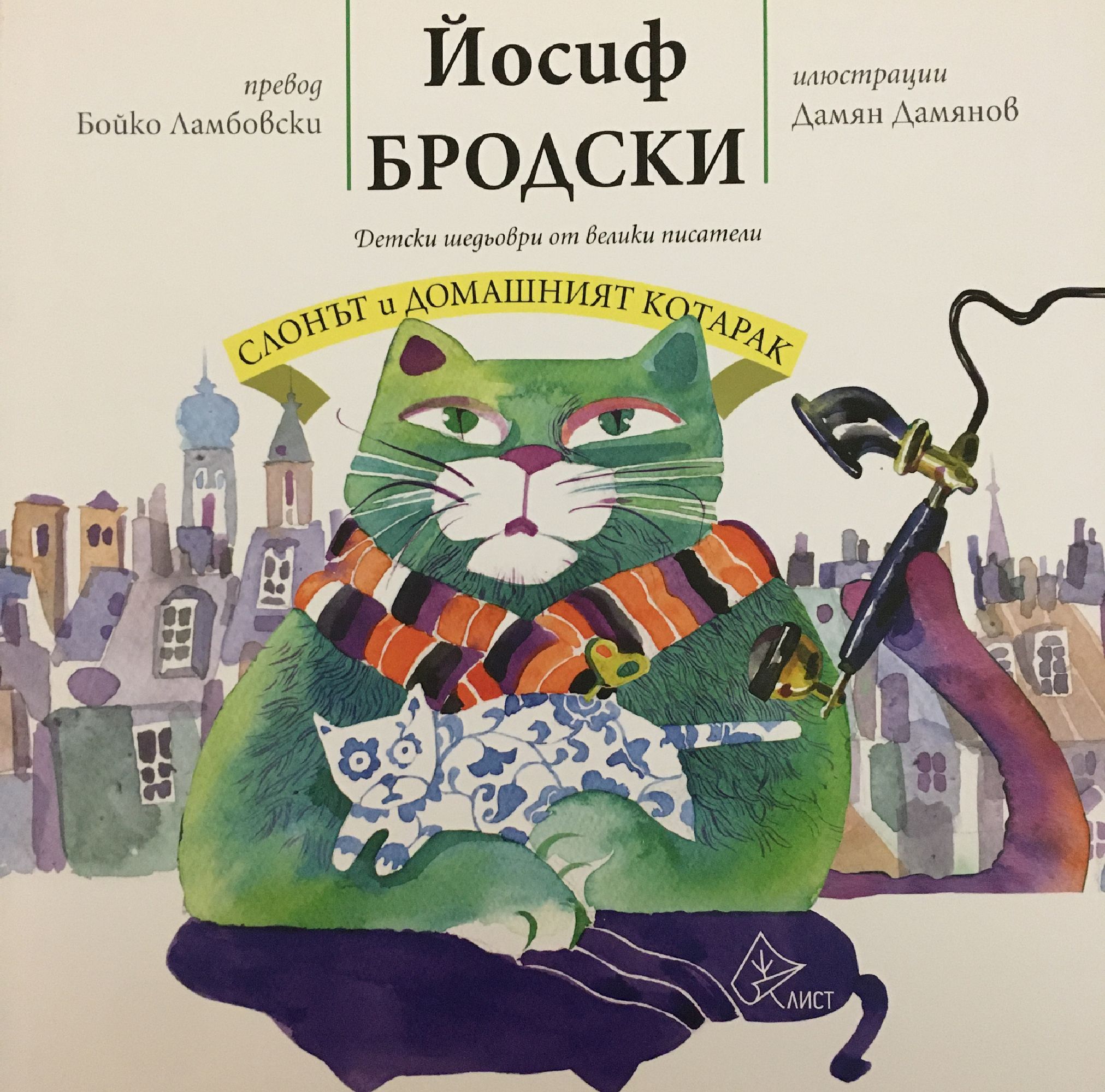 Пълен сак. Дали салам? Как да знаеш отнапред? В небесата – птички пет. Котьо мърка… Притъмнява. И очичките му стават – все едно играе жмичка – на листенца от брезичка. За нощта той грижа няма. Йосиф Бродски (1940 – 1996) е един от големите руски поети и есеисти. Роден е в Ленинград (дн. Петербург). Работил е в болница, морга, фабрика, корабен котел и геоложка експедиция. През 1964 година е обвинен в “тунеядство” и осъден на 5 години заточение. След протести е освободен, но 8 години по-късно е изгонен от родината си. През 1987 г. получава Нобеловата награда за литература. “Слонът и Маруся” и “Самсон – домашният котарак” са две от малкото му стихотворения за деца.