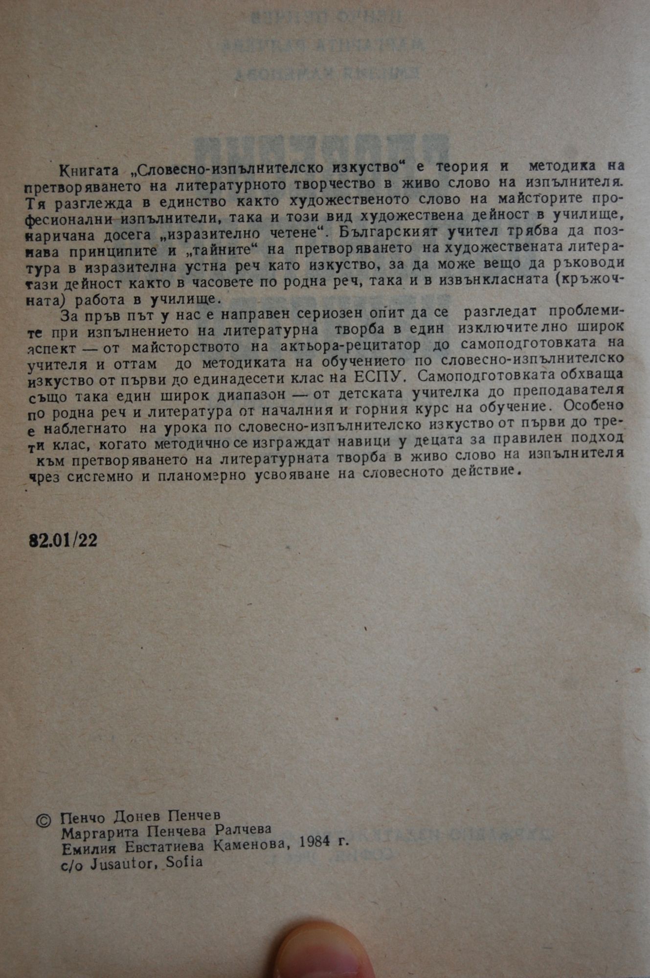 - издание: първо, 1984