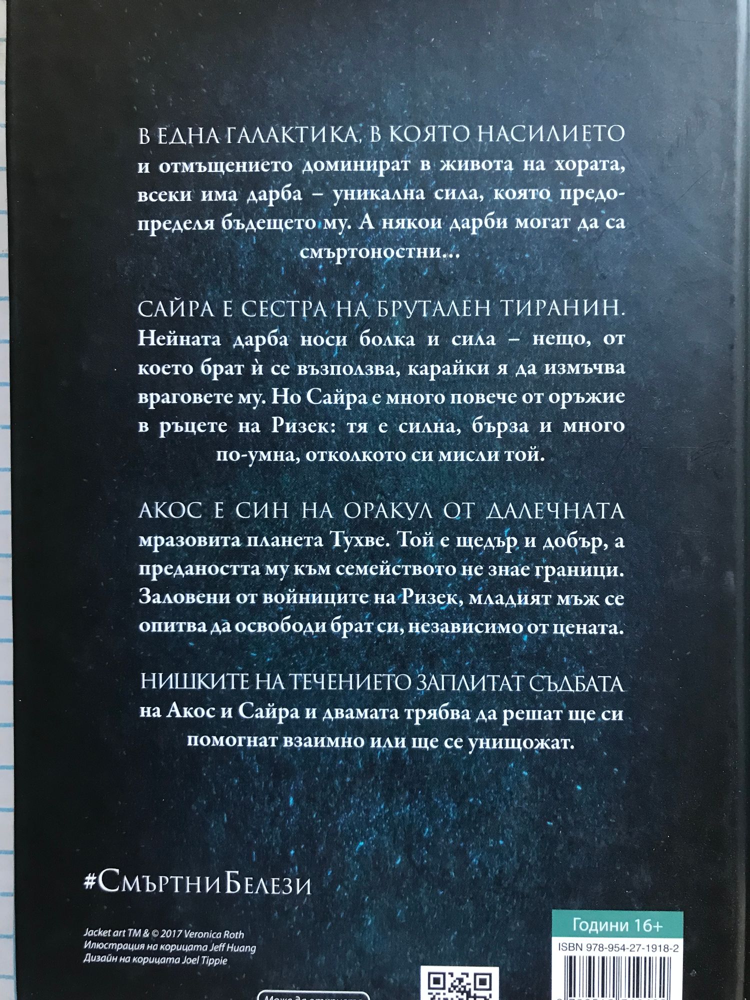 В една галактика, в която насилието и отмъщението доминират в живота на хората, всеки има дарба – уникална сила, която предопределя бъдещето му. А някои дарби могат да бъдат смъртоностни… Сайра е сестра на брутален тиранин. Нейната дарба носи болка и сила – нещо, от което брат й се възползва, за да измъчва враговете си. Но Сайра е много повече от оръжие в ръцете на брат си – тя е силна, бърза и много по-умна, отколкото Ризек подозира. Акос е син на оракул от далечната и мразовита планета Тухве. Той е щедър и добър, а предаността, която изпитва към семейството си, не познава граници. Заловен от войниците на Ризек, младият мъж се опитва да освободи брат си независимо от цената.