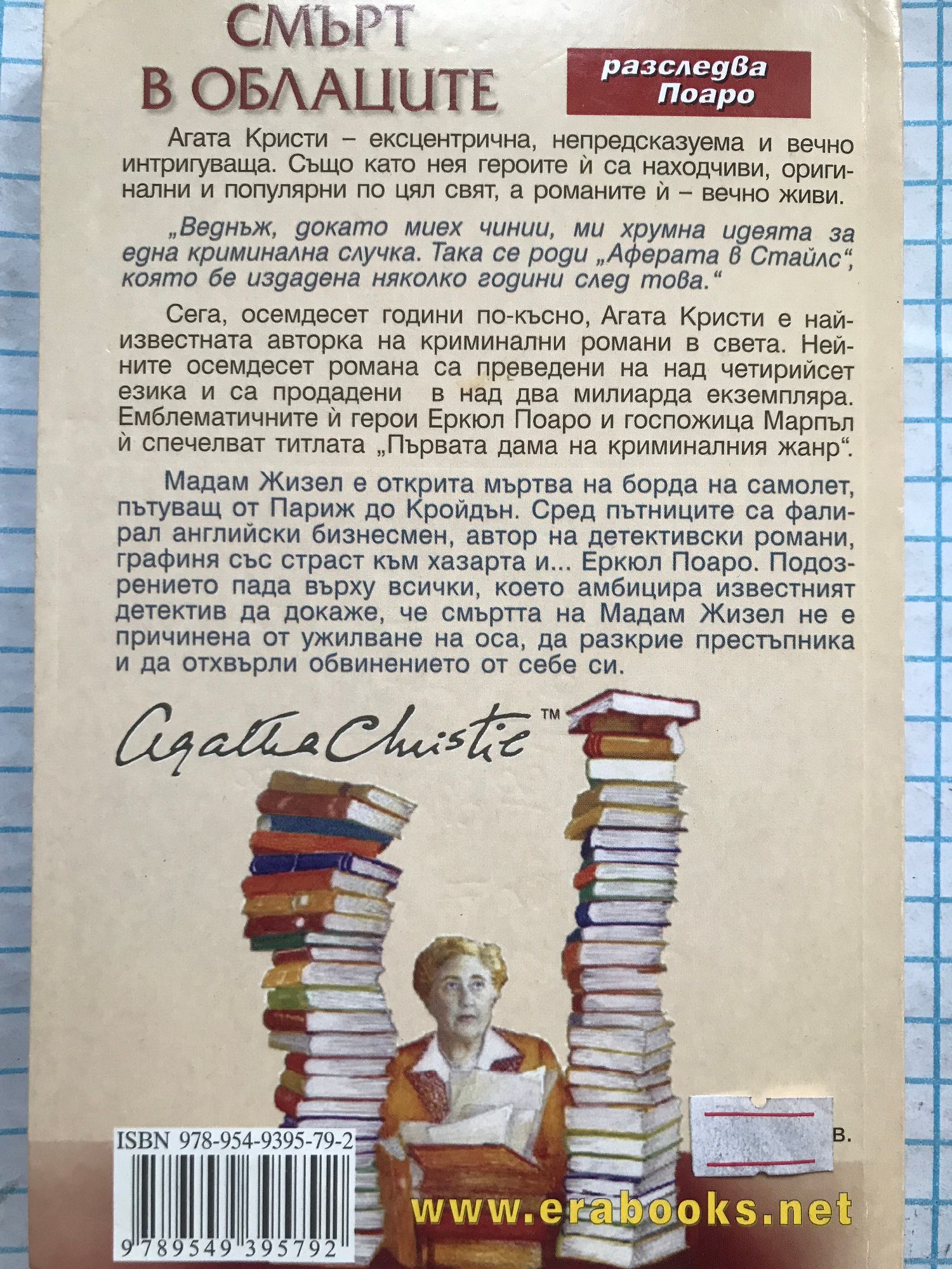 Агата Кристи - ексцентрична, непредсказуема и вечно интригуваща. Също като нея героите й са находчиви, оригинални и популярни по цял свят, а романите й - вечно живи. "Веднъж, докато миех чинии, ми хрумна идеята за една криминална случка. Така се роди "Аферата в Стайлс", която бе издадена няколко години след това." Сега, осемдесет години по-късно, Агата Кристи е най-известната авторка на криминални романи в света. Нейните осемдесет романа са преведени на над четирийсет езика и са продадени в над два милиарда екземпляра. Емблематичните й герои Еркюл Поаро и госпожица Марпъл й спечелват титлата "Първата дама на криминалния жанр". Мадам Жизел е открита мъртва на борда на самолет, пътуващ от Париж до Кройдън. Сред пътниците са фалирал английски бизнесмен, автор на детективски романи, графиня със страст към хазарта и... Еркюл Поаро. Подозрението пада върху всички, което амбицира известният детектив да докаже, че смъртта на Мадам Жизел не е причинена от ужилване на оса, да разкрие престъпника и да отхвърли обвинението от себе си.