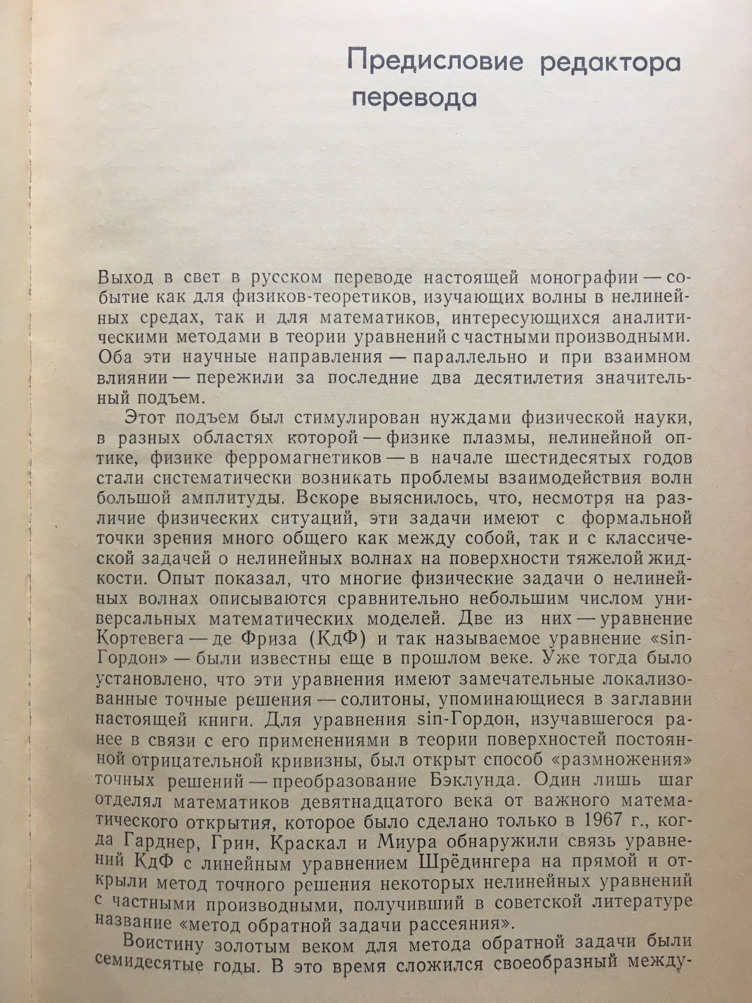 Солитоны и метод обратной задачи