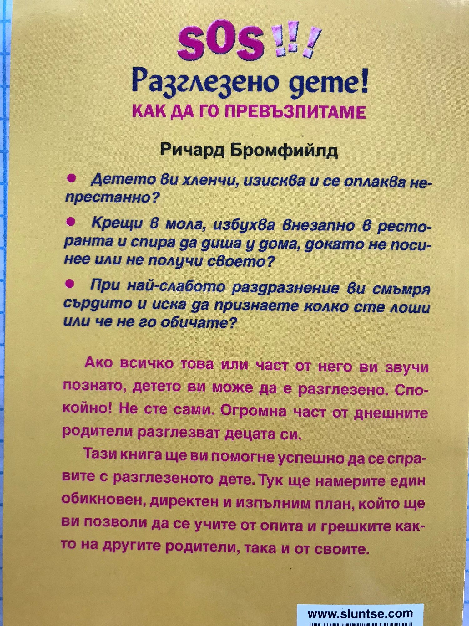 Детето ви хленчи, изисква и се оплаква непрестанно? Крещи в мола, избухва внезапно в ресторанта и спира да диша у дома, докато не посинее или не получи своето? При най-слабото раздразнение ви смъмря сърдито и иска да признаете колко сте лоши или че не го обичате? Ако всичко това или част от него ви звучи познато, детето ви може да е разглезено. Спокойно! Не сте сами. Огромна част от днешните родители разглезват децата си. Тази книга ще ви помогне успешно да се справите с разглезеното дете. Тук ще намерите един обикновен, директен и изпълним план, който ще ви позволи да се учите от опита и грешките както на другите родители, така и от своите.