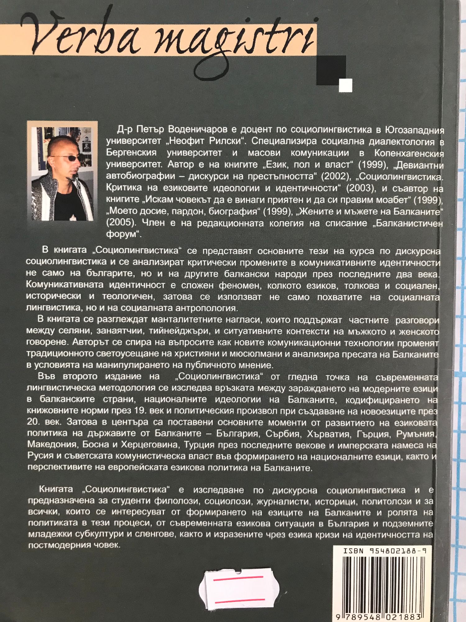 Д-р Петър Воденичаров е доцент по социолингвистика в Югозападния университет „Неофит Рилски" Специализирал е социална диалектология в Бергенския университет и масови комуникации в Копенхагенския университет. Автор е на книгите: „Искам човекът да е винаги приятен и да си правим моабет", „Език, пол и власт"(1999), „Девиантни автобиографии - дискурси на престъпността" (2002).