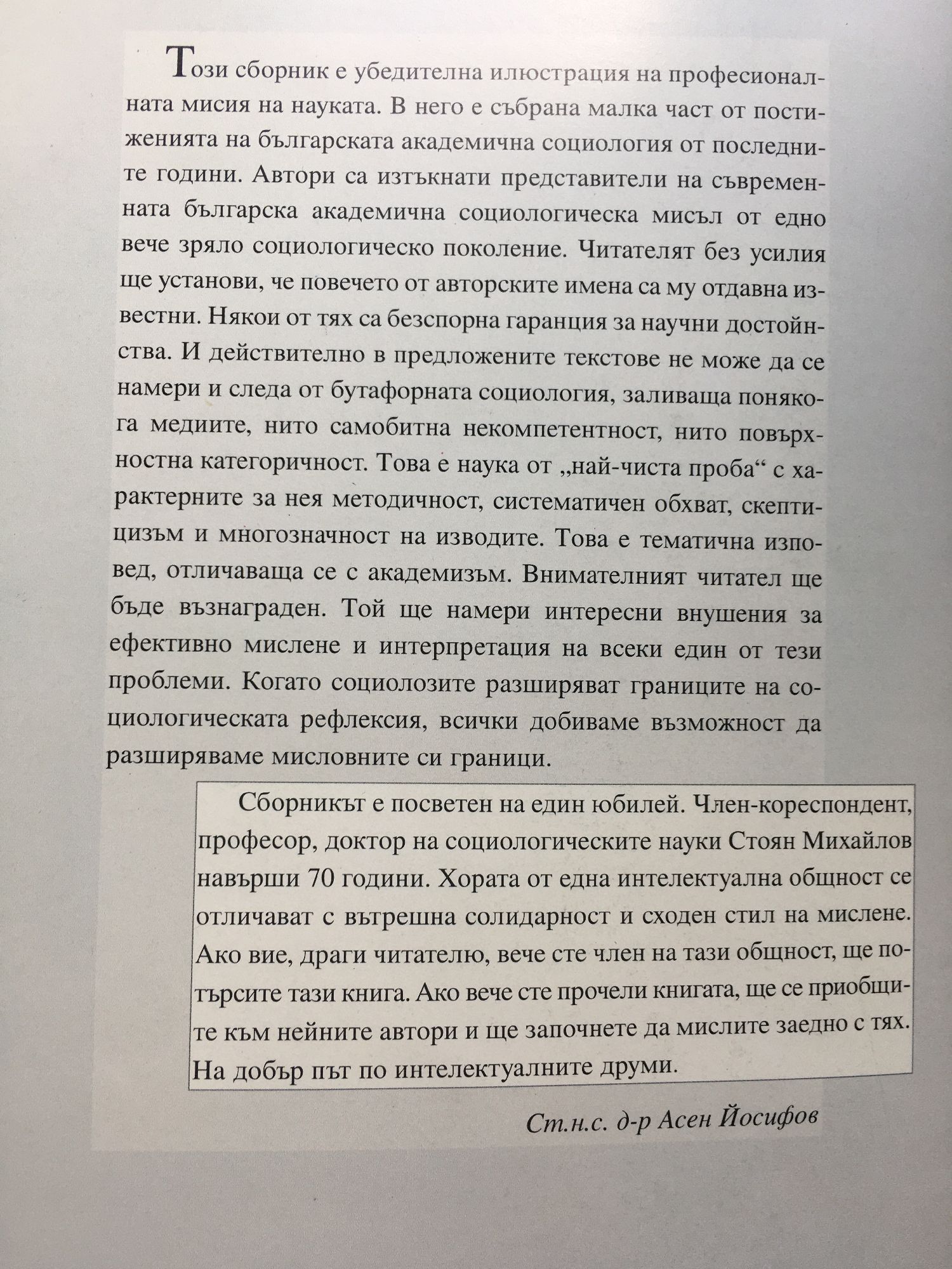 В книгата са включени оригинални разработки на научни сътрудници от Института по социология при БАН, посветени на различни актуални проблеми на общественото развитие и на социологията. Изследователите анализират процеси на посткомунистическата социална трансформация в различни тематични области с различни изследователски подходи от различни гледни точки и социологически перспективи. Предлагат се интерпретации върху развитието на новата българска социология, анализира се връзката между глобалните предизвикателства и локалните възможности за отговора им у нас, проблемите на трансформирането на идентичността, организационно-управленски и технико-технологични въпроси на процеса на модернизация, трудностите в развитието на днешното българско село, социалното преструктуриране в посткомунистическото общество и генезиса на нови средни слоеве, маргинализирането на част от груповата структура, проблеми на генерационните отношения и девиантното поведение. Авторите посвещават тези свои нови статии на 70-годишнината на своя уважаван колега чл.-кор. проф. д.ф.н. Стоян Михайлов. Проблемно-тематичното разнообразие би заинтригувало широк кръг читатели и особено проявяващите интерес към социалните науки и към съвременните проблеми на обществото - изследователи, преподаватели, студенти, журналисти, политици, общественици.