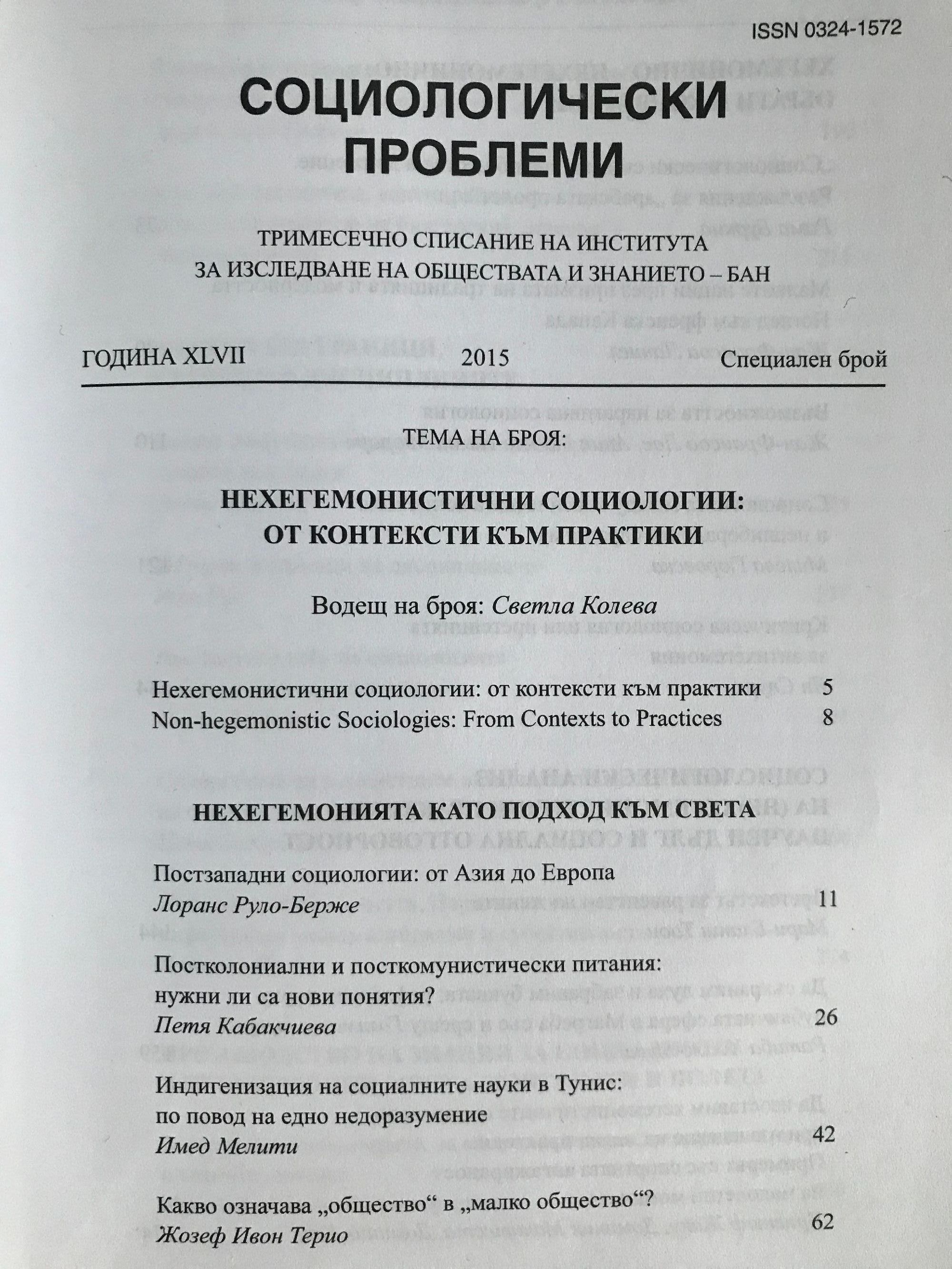 Нехегемонистични социологии: От контексти към практики.