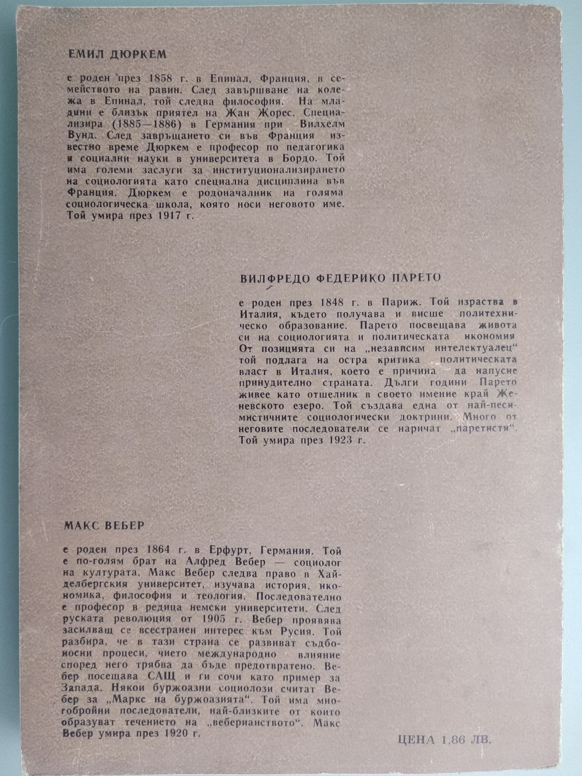 Социологическите теории на Е.Дюркем, В.Парето, М.Вебер