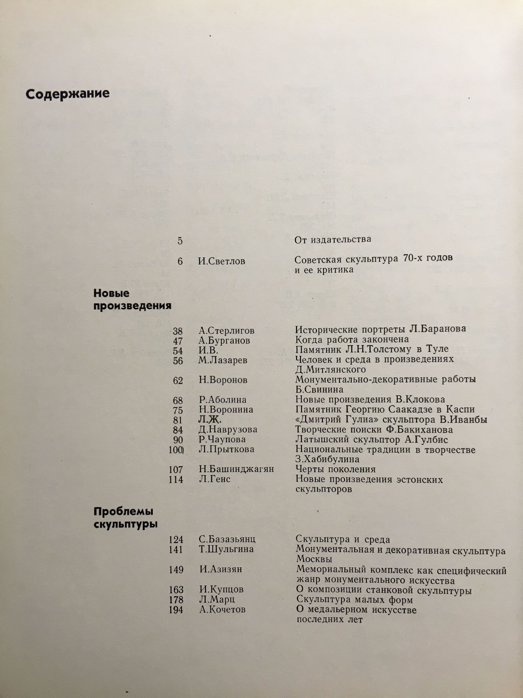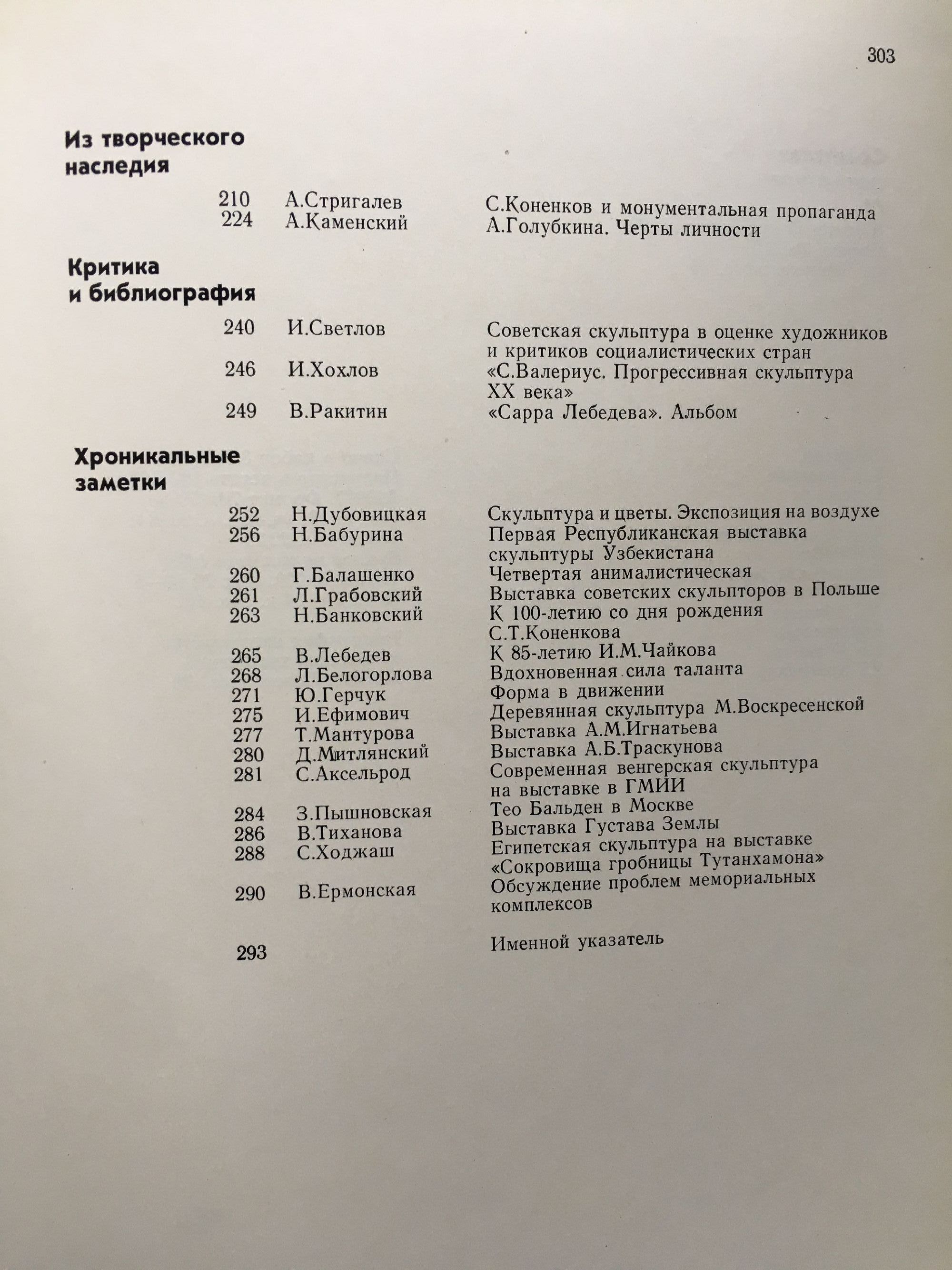 Новые произведения. Проблемы скульптуры. Портреты. Панорама. Из творческого наследия. Критика библиография