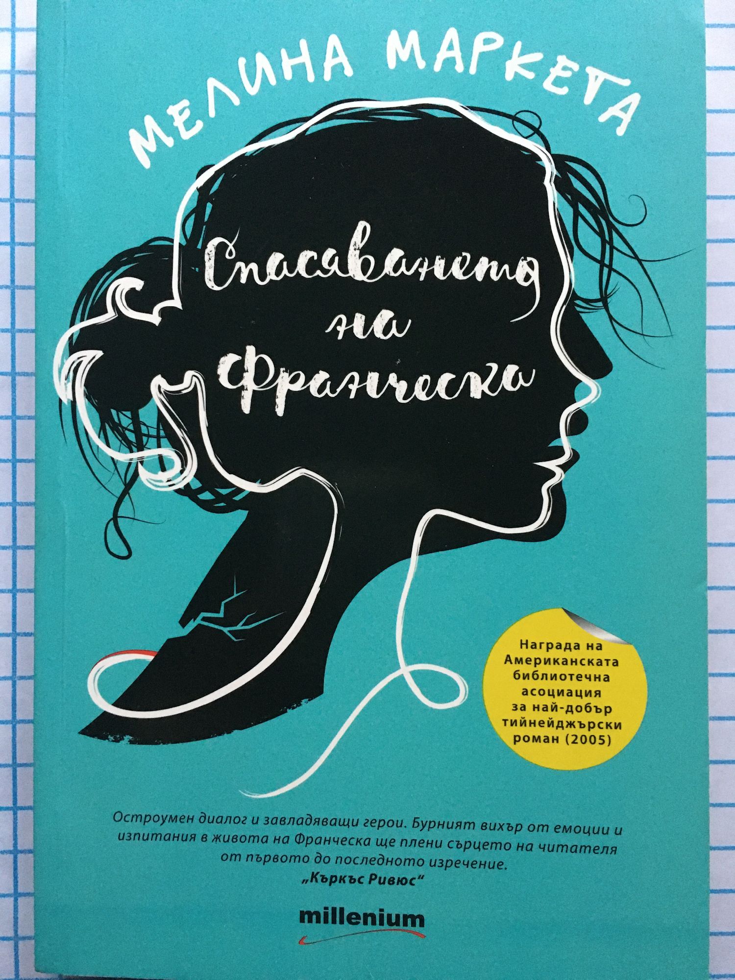Книга, която лекува душевните рани, нанесени ни от порастването. Няма тийнейджър, който да не се почувства у дома си в кожата на смелата и духовита Франческа. Ще плачете, но и ще се смеете от сърце над нейната нежна, зряла и реалистична история, перфектна за феновете на Джон Грийн и Маркъс Зюсак. „Спасяването на Франческа“ ни потапя в объркания и емоционален свят на шестнайсетгодишната Франческа Спинели. Проблемите са много – майка й е повалена от депресия и Франки губи най-голямата си опора, а новото й училище – доскоро изцяло мъжката гимназия „Сейнт Себастиан“ – подлага новодошлите момичета на ежедневни унижения. Франки е принудена да се бори както със самотата в класната стая, така и с предизвикателствата у дома. Преди обаче хаосът да я разкъса, тя получава помощ от неочаквани съюзници, които ще й дадат силата да спаси социалния си живот, семейството си и най-важното – себе си. "Остроумен диалог и завладяващи герои. Бурният вихър от емоции и изпитания в живота на Франческа ще плени сърцето на читателя от първото до последното изречение." „Къркъс Ривюс“ "Читателите ще се влюбят в многопластовите персонажи, неподправените взаимоотношения, искрената обич между героите и вдъхновяващата борба на Франческа да спаси себе си." „Пъблишърс Уикли“ "Това, което отличава „Спасяването на Франческа“ от морето посредствени младежки книги, е болезнено пълнокръвният образ на главната героиня." Дженифър Хюбър, Amazon "Тийнейджърите ще почувстват връзка с този красиво написан роман и ще приемат присърце ценните му послания и достоверния поглед към един истински важен проблем." „Скул Лайбръри Джърнъл“