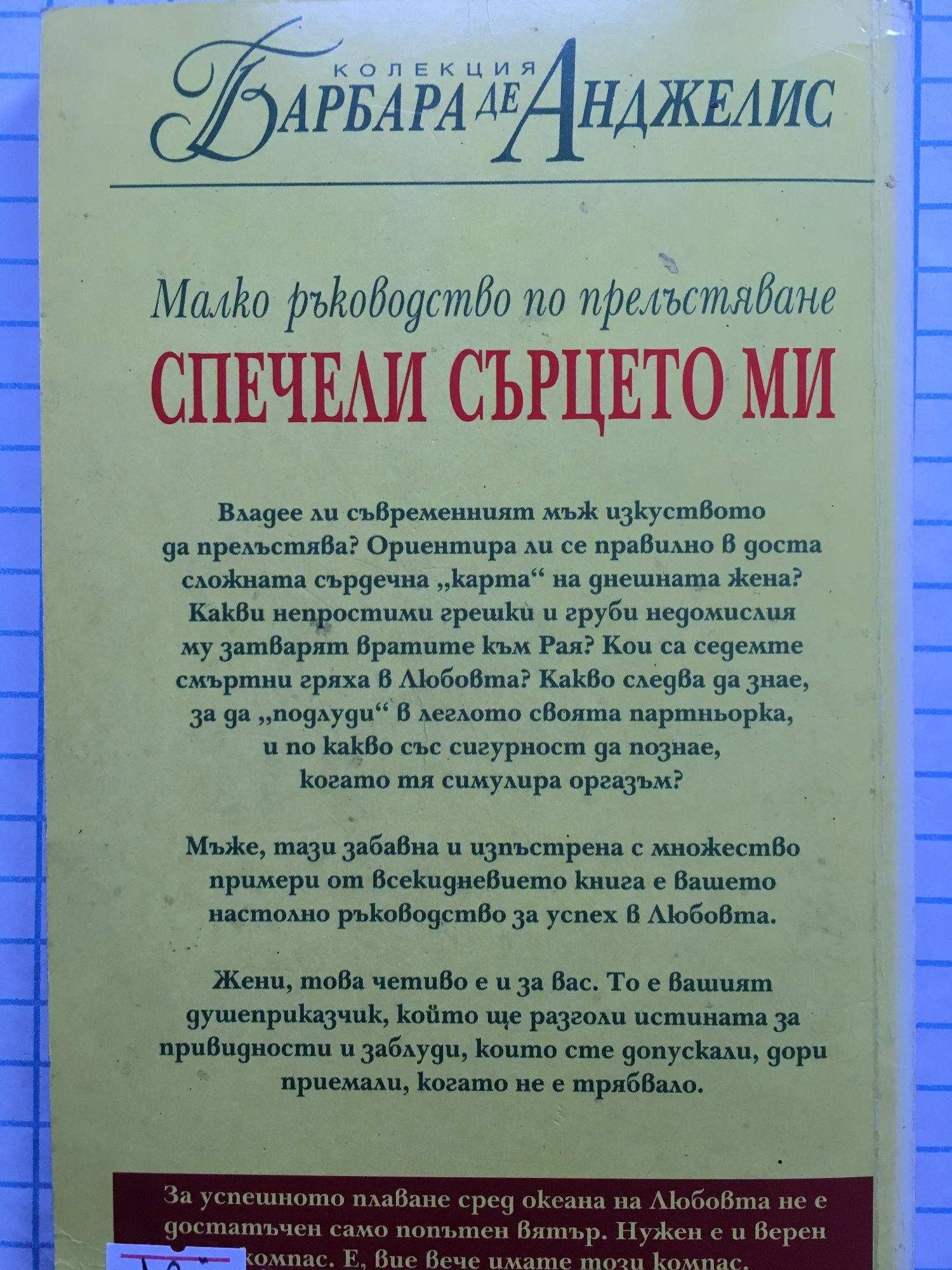 Владее ли съвременният мъж изкуството да прелъстява? Ориентира ли се правилно в доста сложната сърдечна "карта" на днешната жена? Какви непростими грешки и груби недомислия му затварят вратите към Рая? Кои са седемте смъртни гряха в Любовта? Какво следва да знае, за да "подлуди" в леглото своята партньорка, и по какво със сигурност да познае, когато тя симулира оргазъм? Мъже, тази забавна и изпъстрена с множество примери от всекидневието книга е вашето настолно ръководство за успех в Любовта. Жени, това четиво е и за вас. То е вашият душеприказчик, който ще разголи истината за привидности и заблуди, които сте допускали, дори приемали, когато не е трябвало.