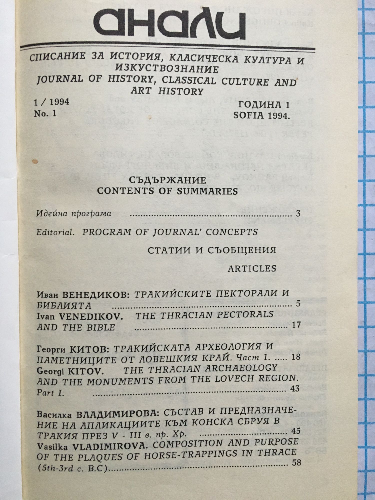 Списание "Анали" - брой 1, год. 1 / 1994 г.