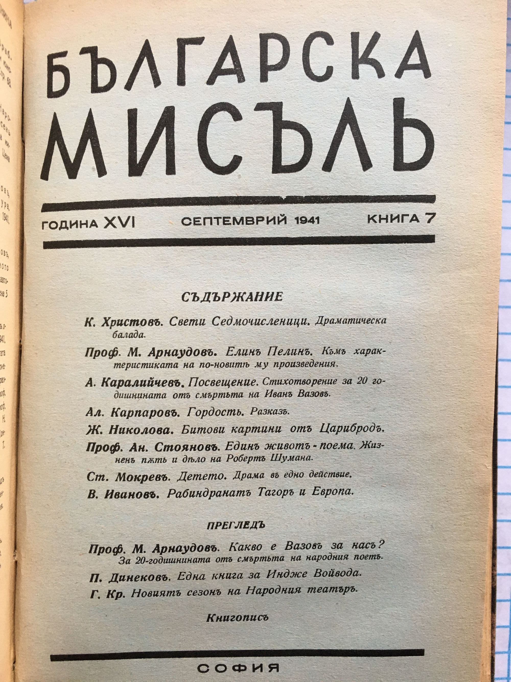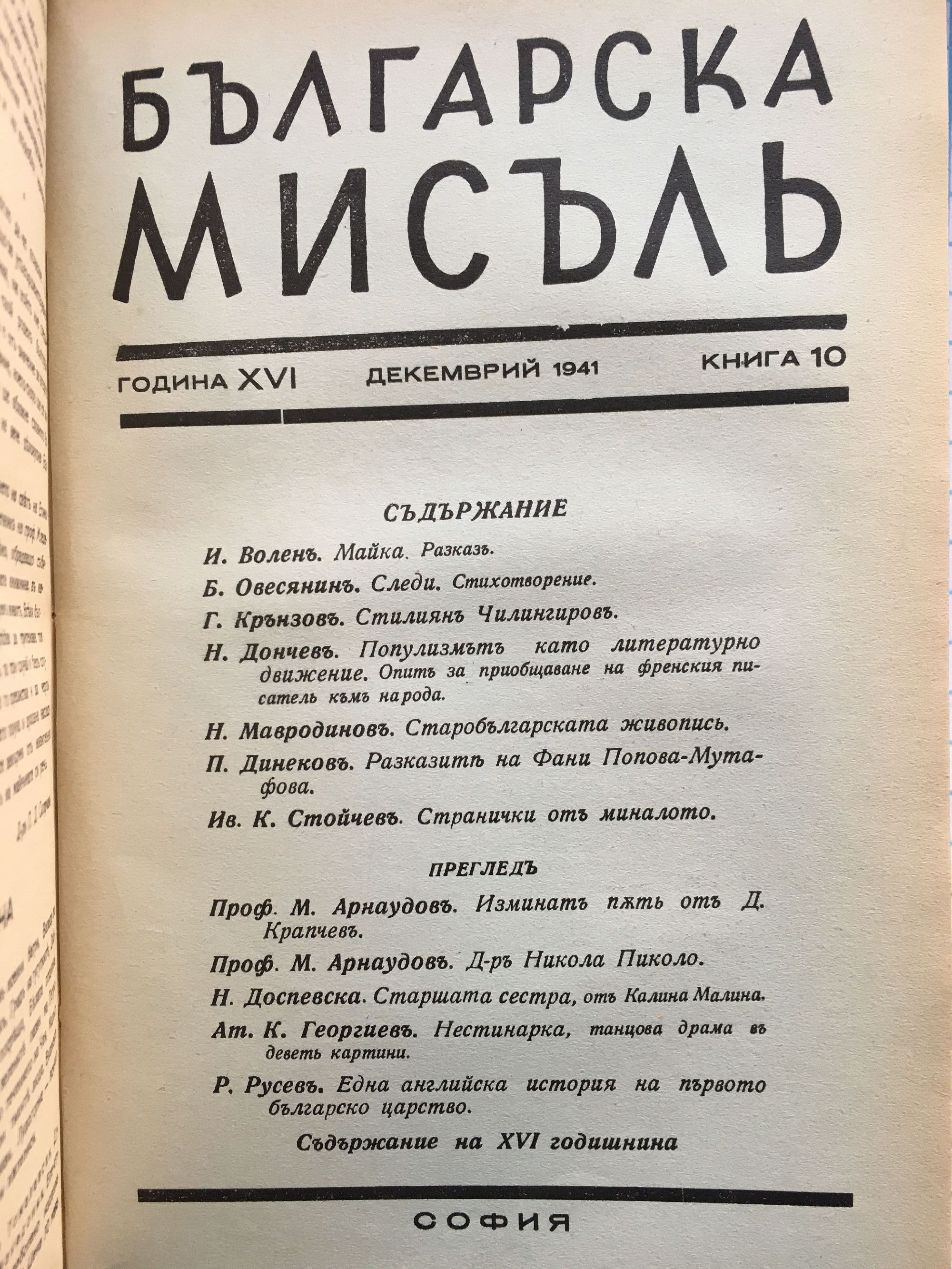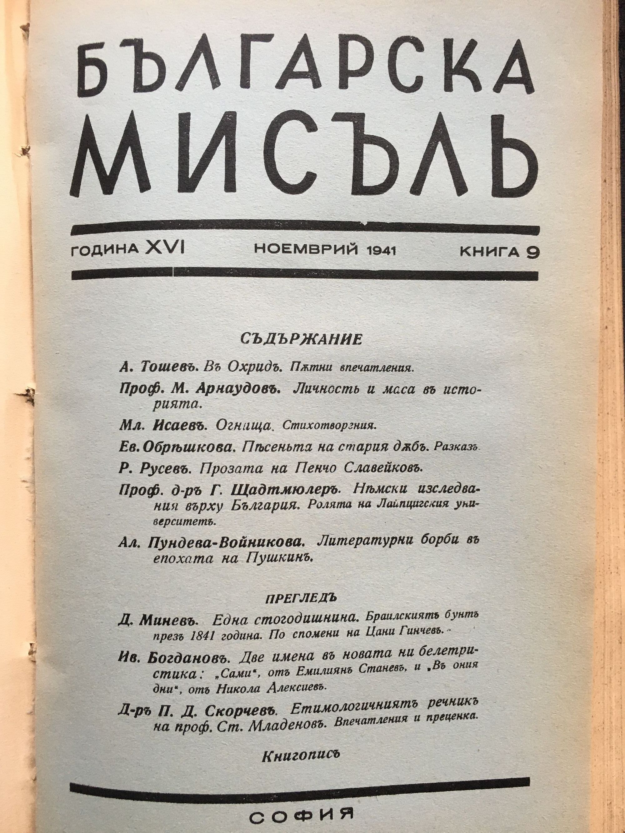 Списание "Българска мисъль" - година XVI, 1941 г. кн. 1 - 10