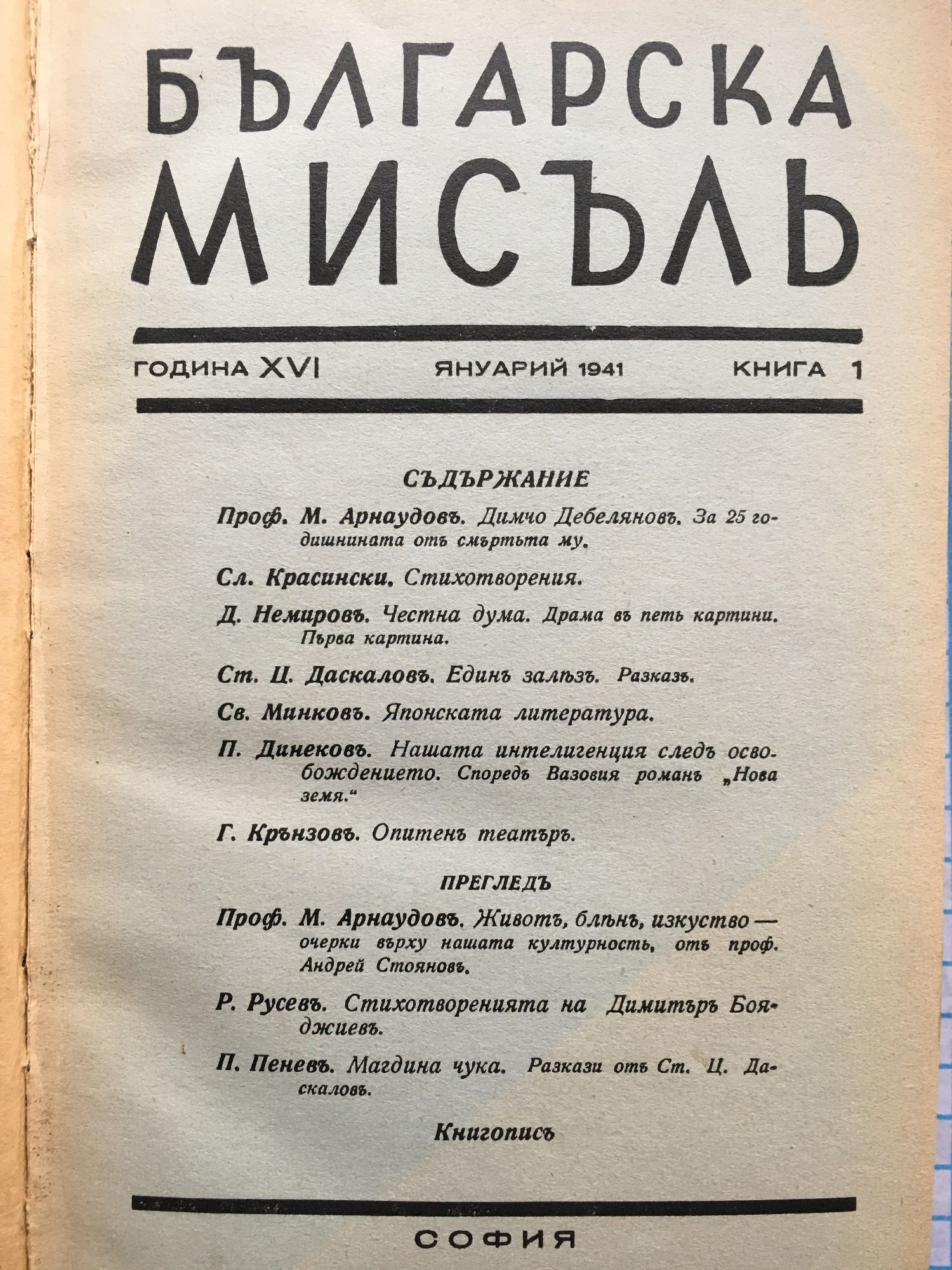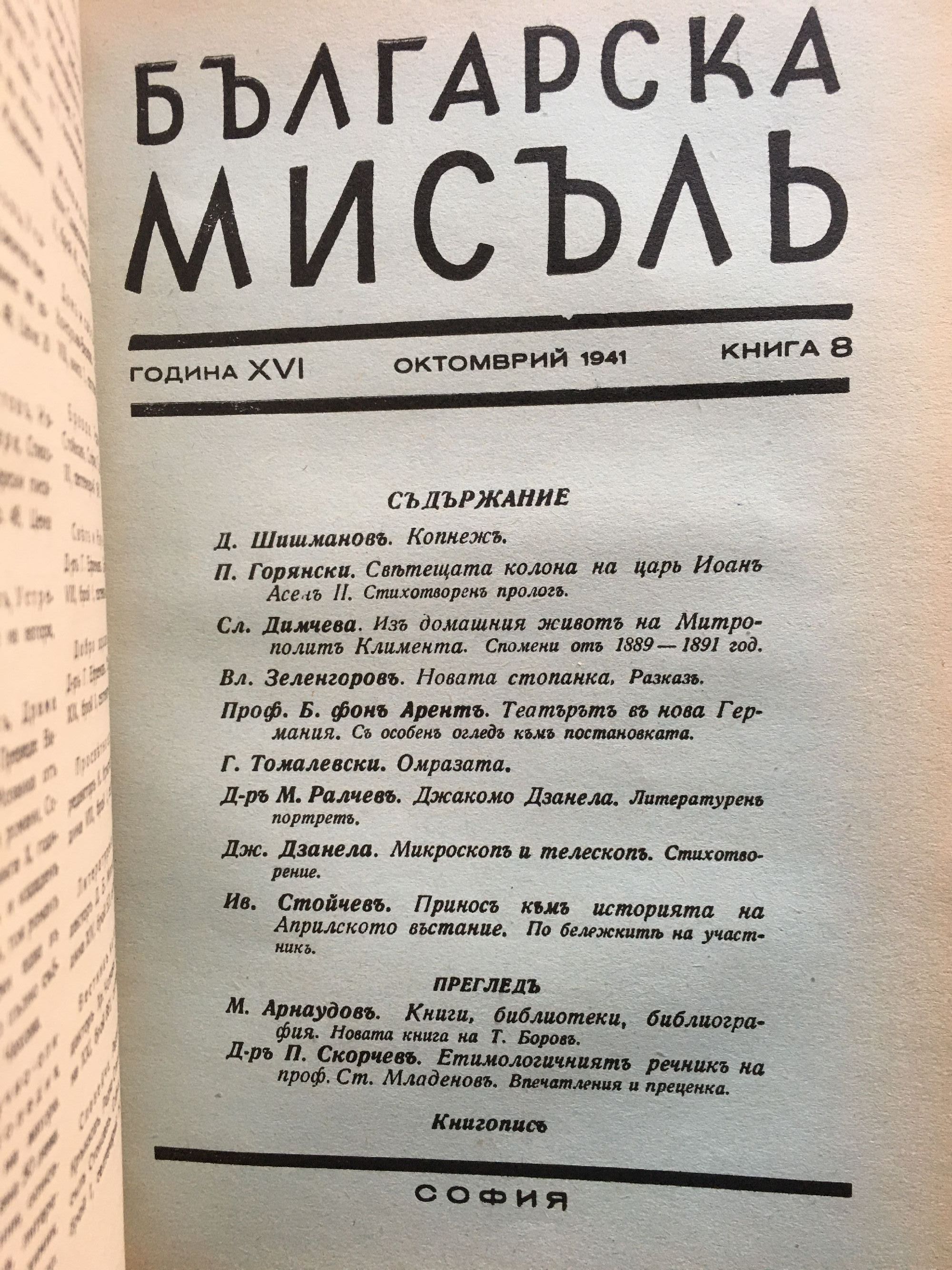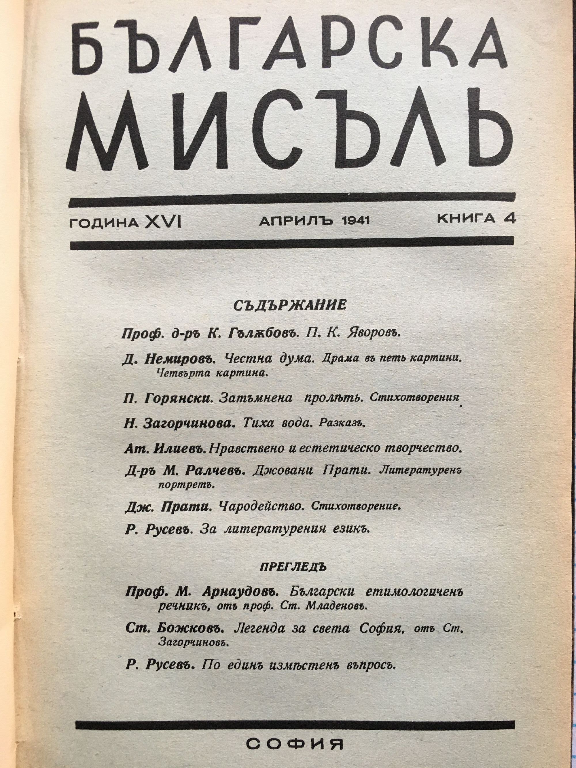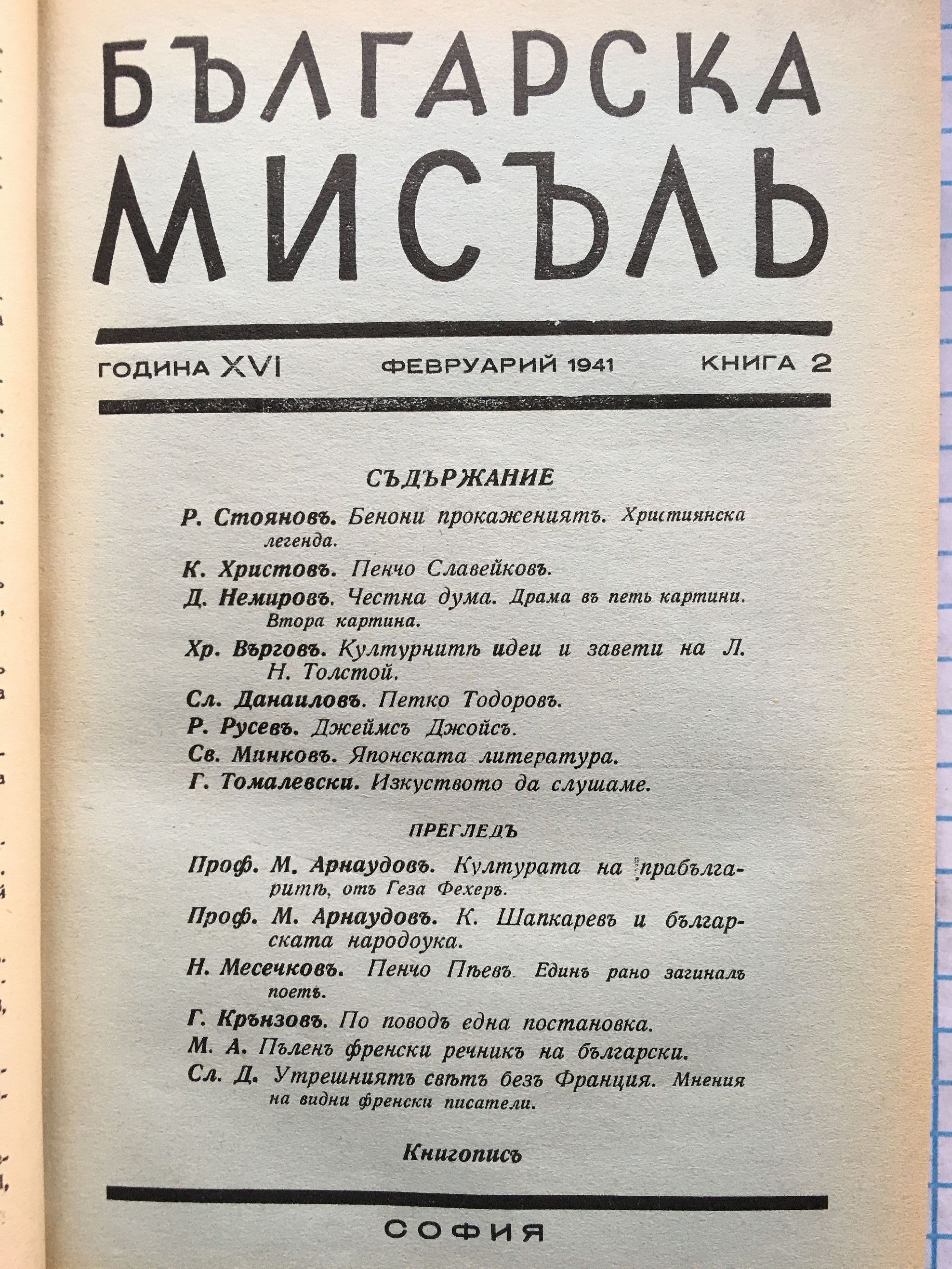 Списание "Българска мисъль" - година XVI, 1941 г. кн. 1 - 10
