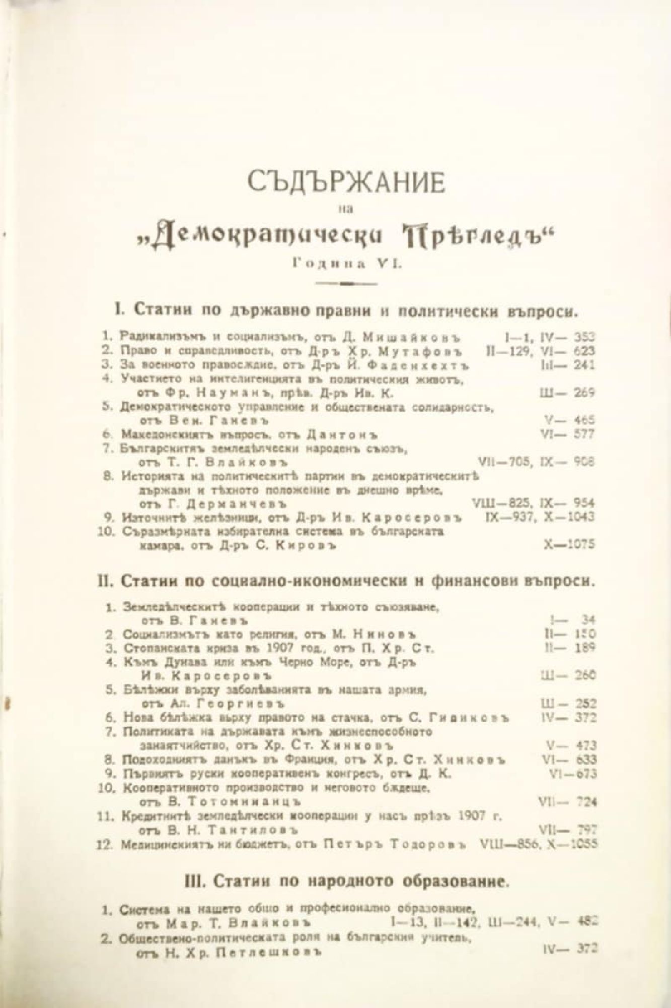 Списание "Демократически прегледъ (преглед)" - год. 6, кн. 1 - 10, 1908