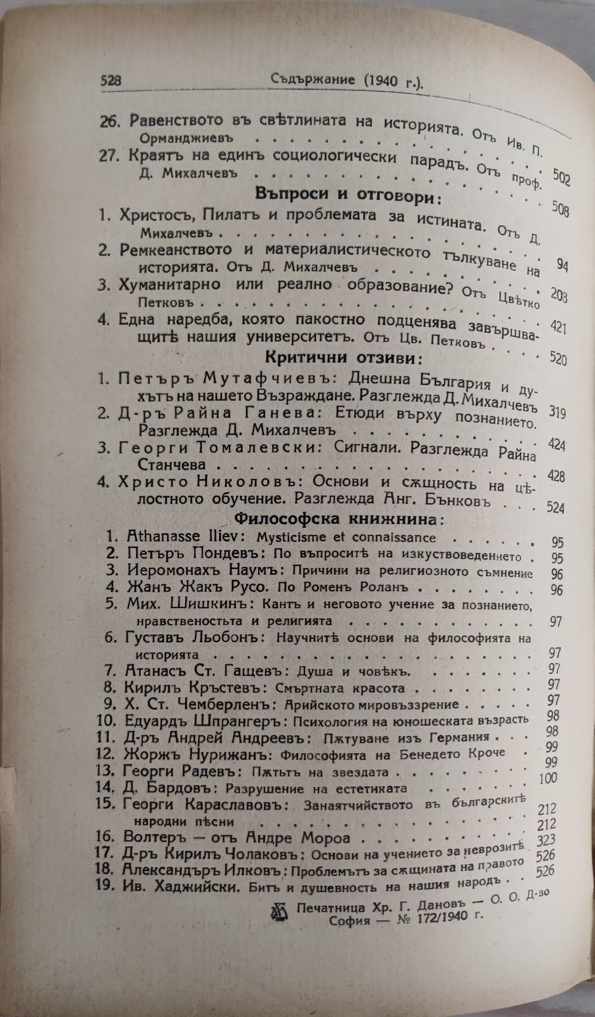 Списание "Философски преглед", год. XII, кн. 1-5, 1940 г.; год. I, кн. 3 (стр. 270-374), 1929 г.