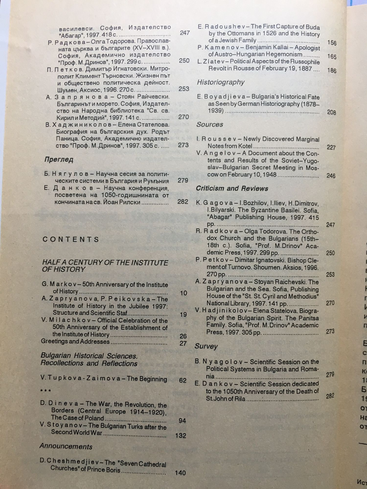 Списание "Исторически преглед" - година LIV, книжка 1 - 2 / 1998 г.