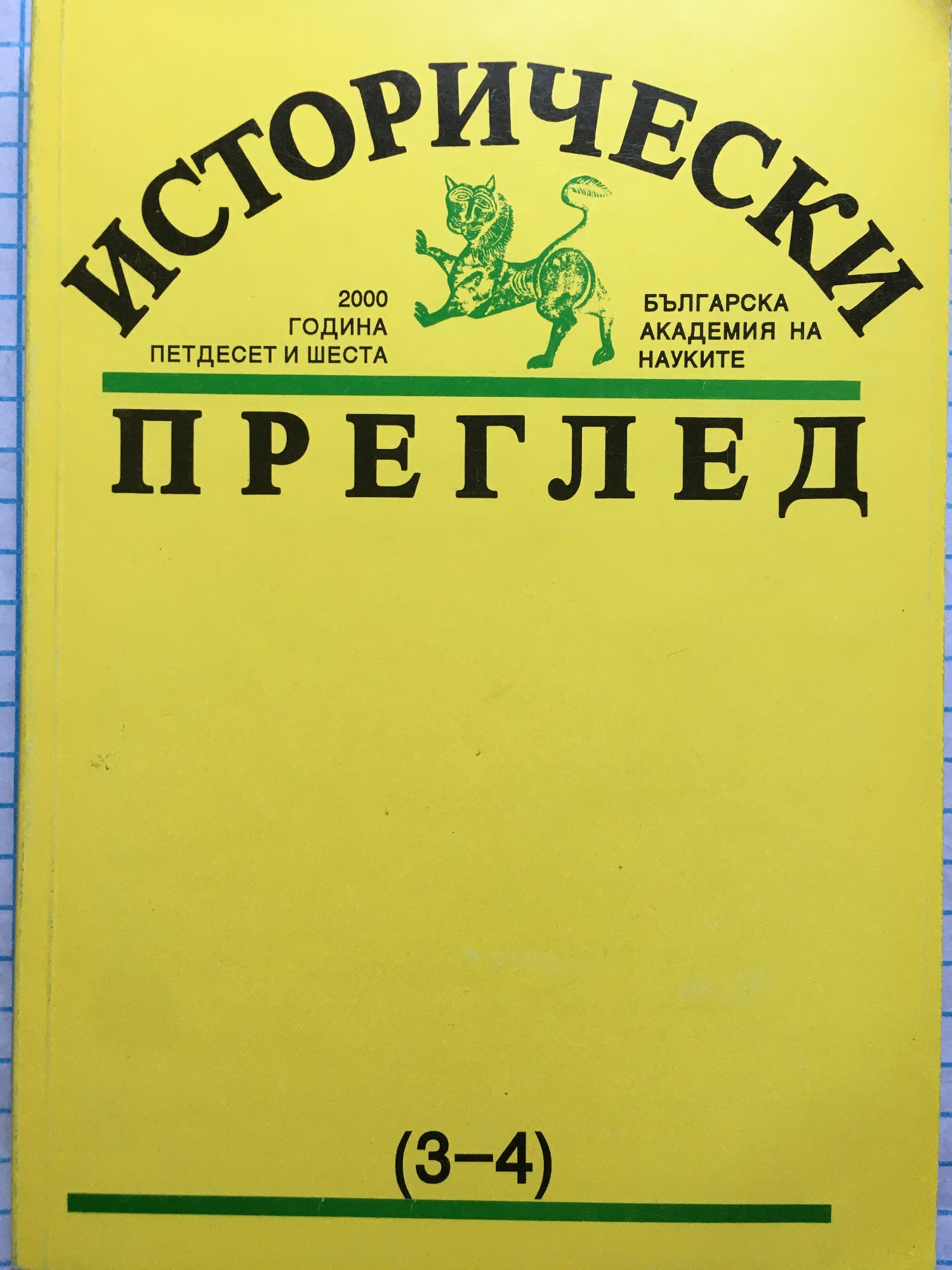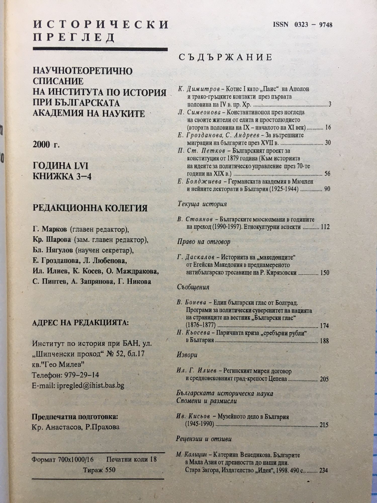 Списание "Исторически преглед" - година LVI, книжка 3 - 4 / 2000 г.
