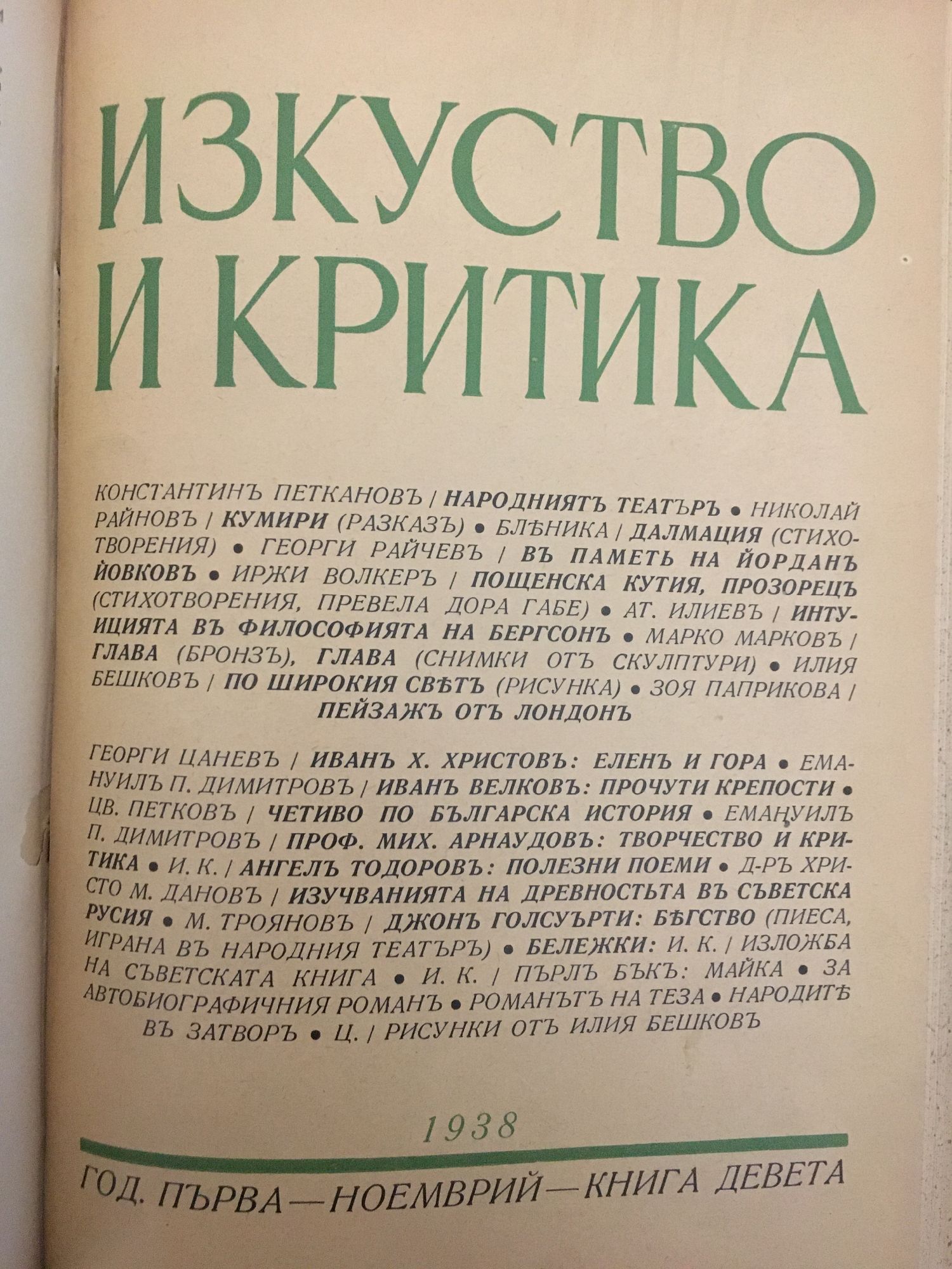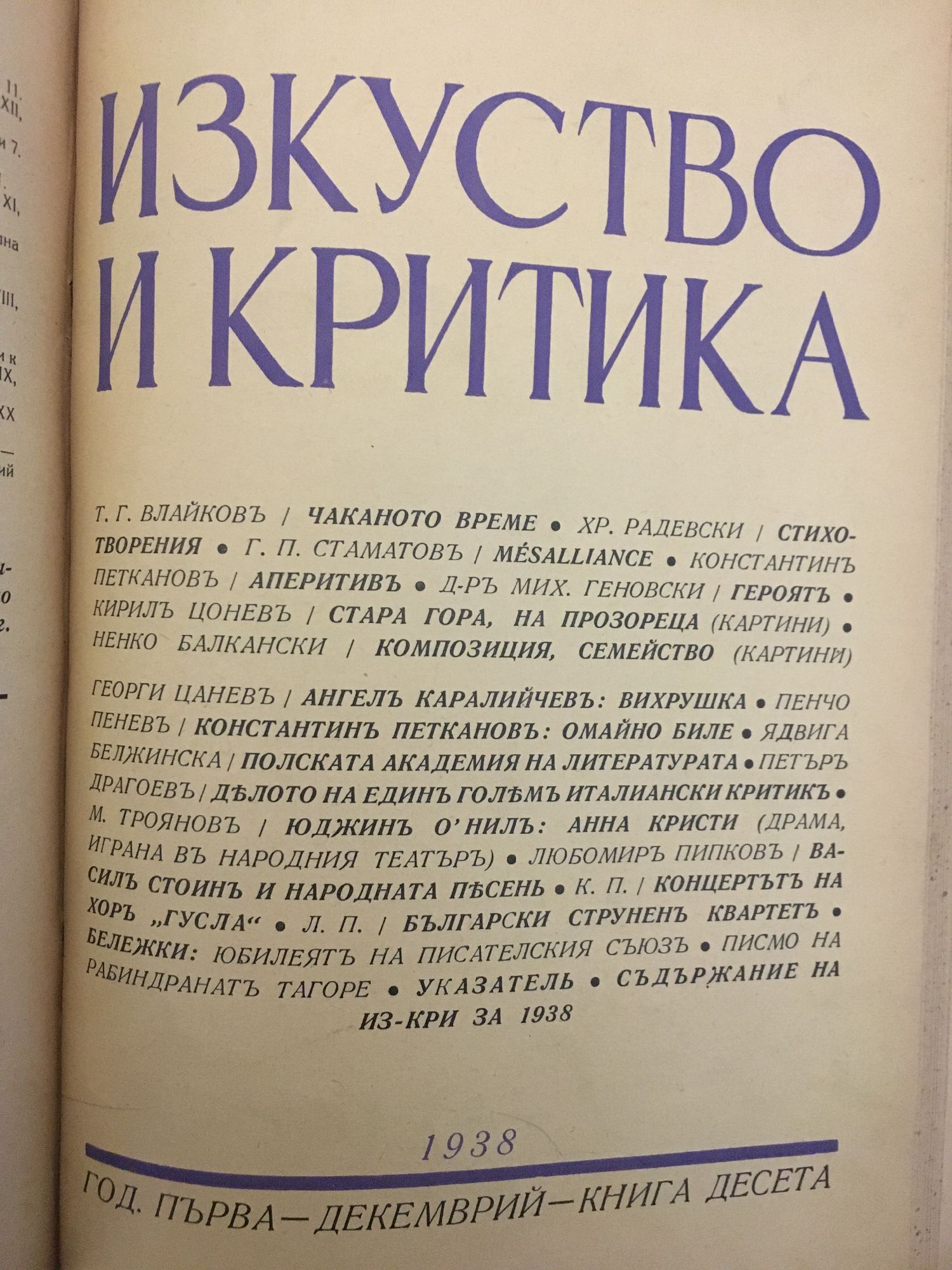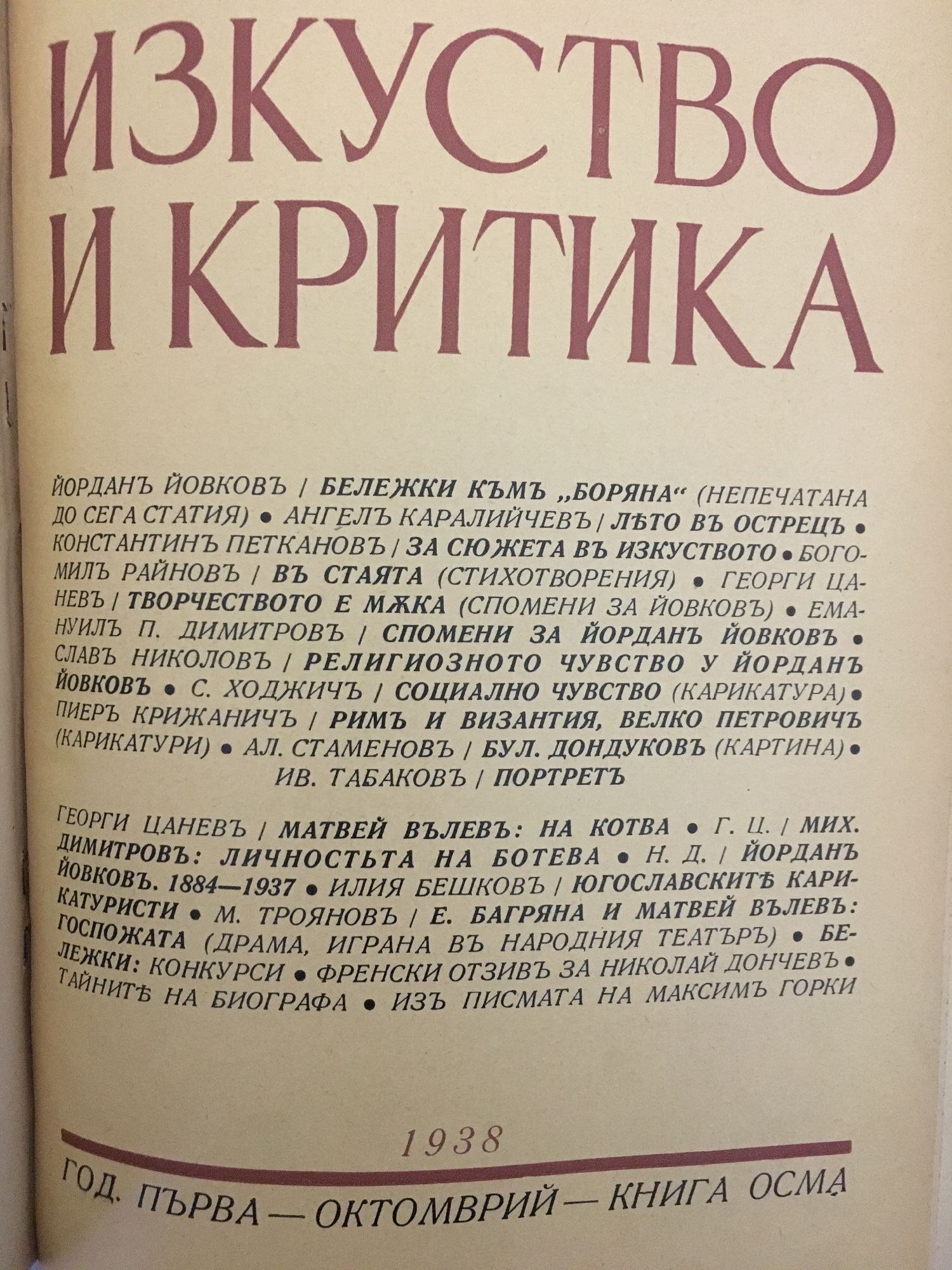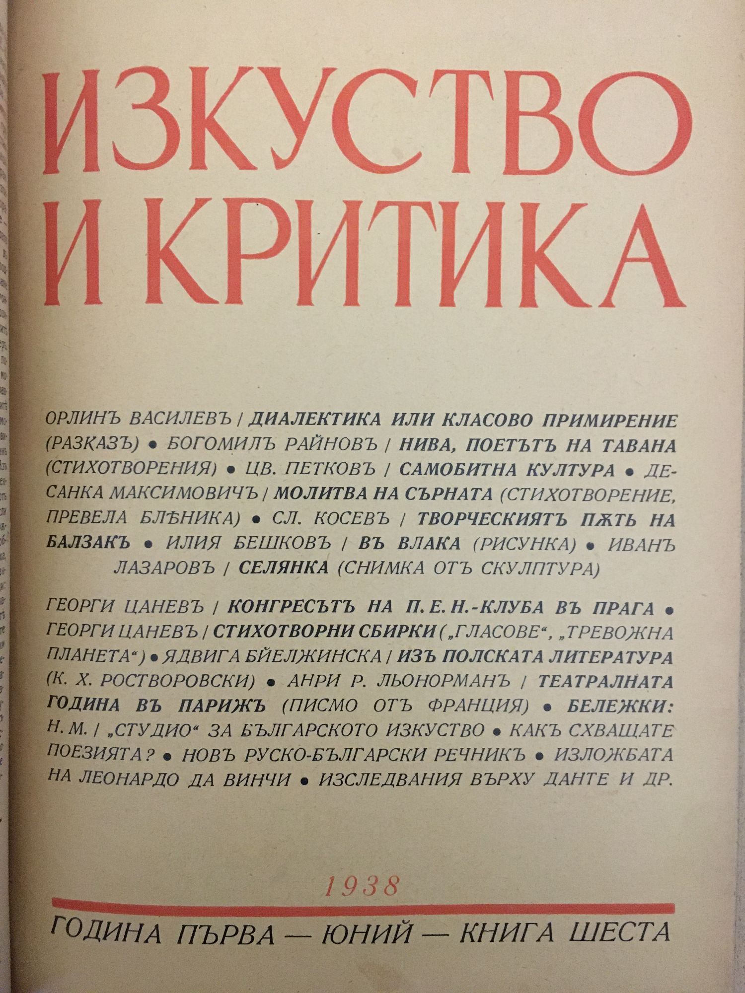 Списание Изкуство и критика. Година I, 1938 г. кн. 1 - 10