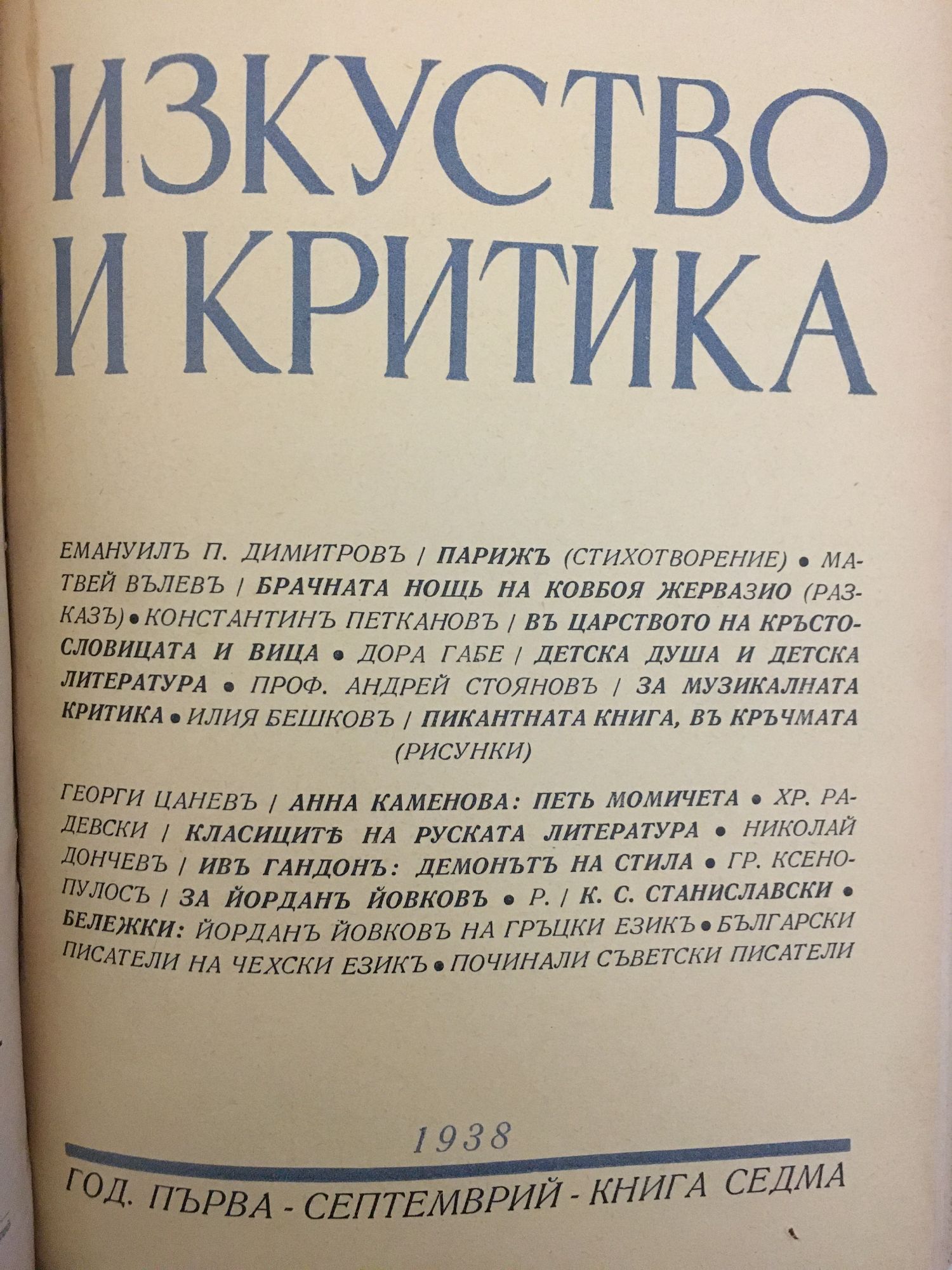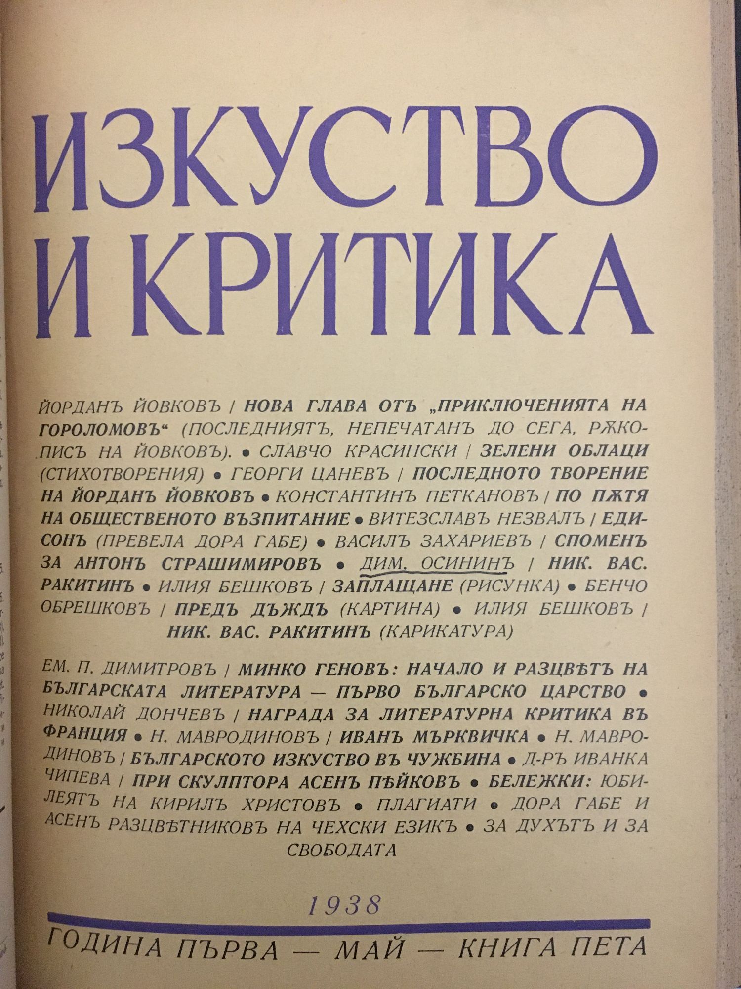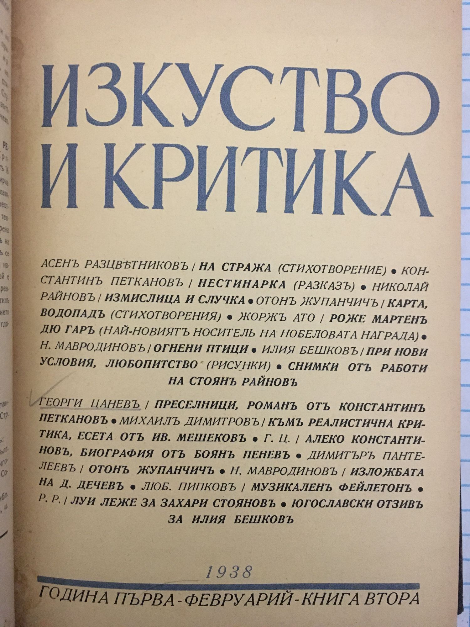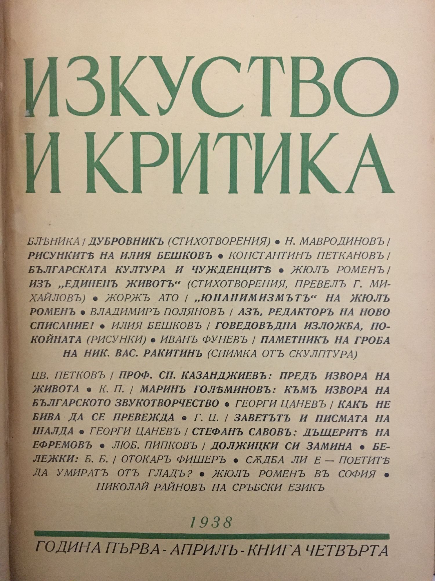 Списание Изкуство и критика. Година I, 1938 г. кн. 1 - 10