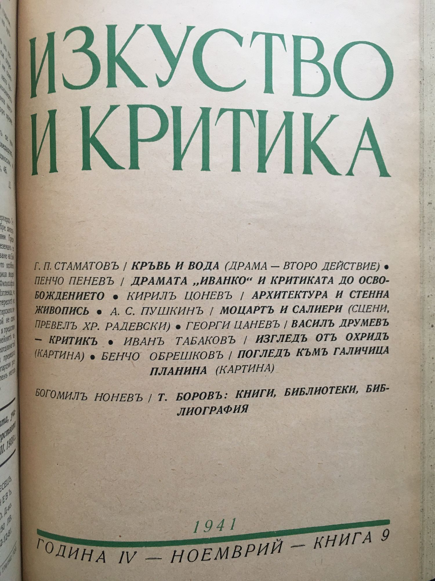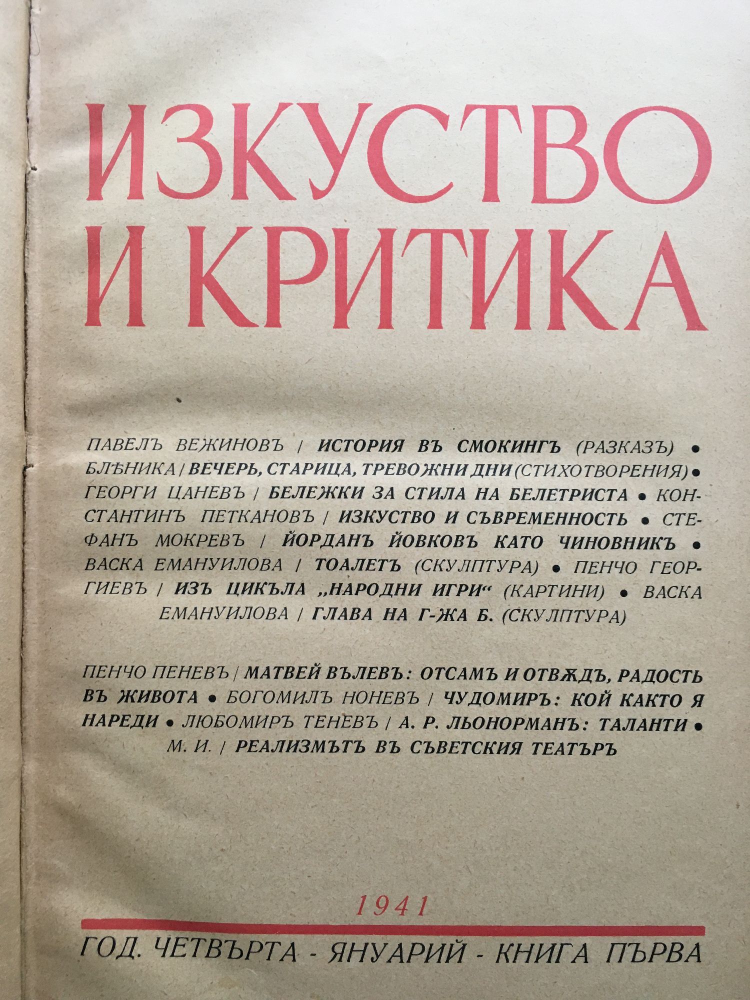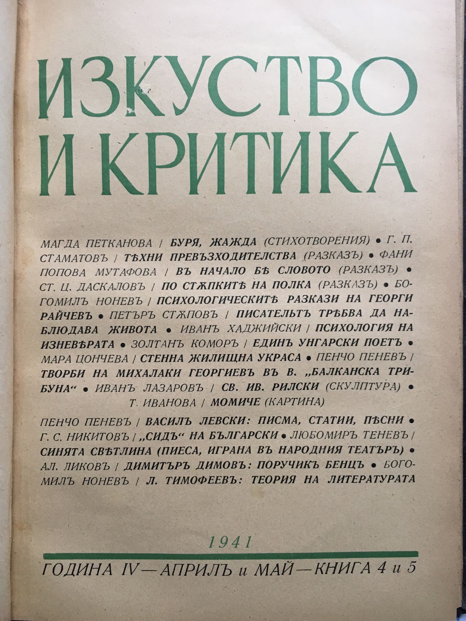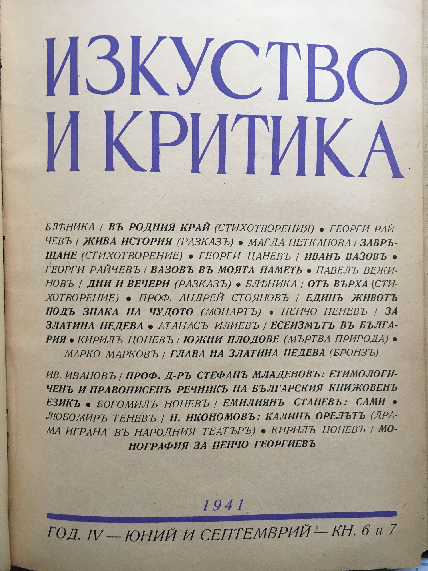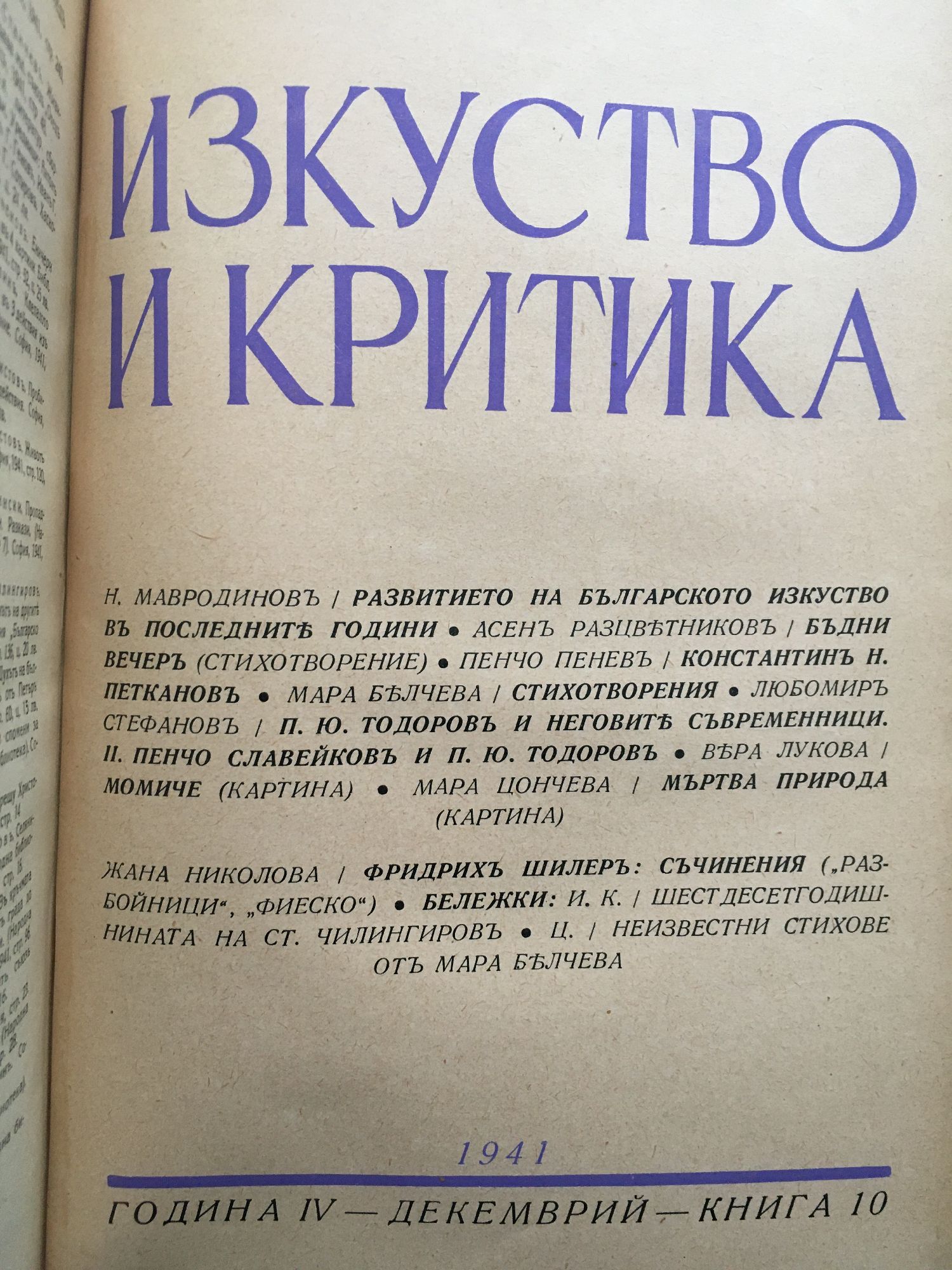 Списание Изкуство и критика. Година IV, 1941 г. кн. 1 - 10