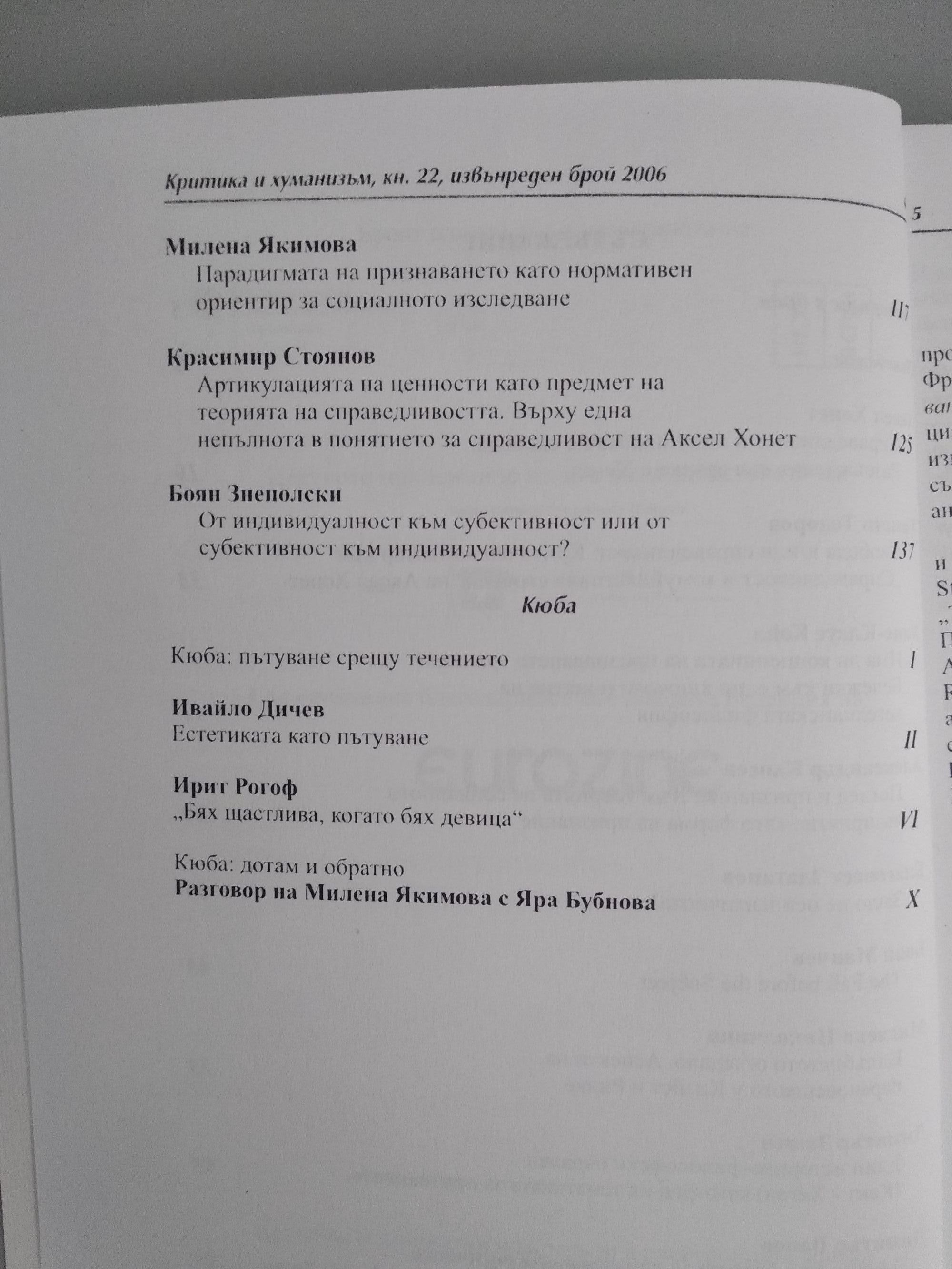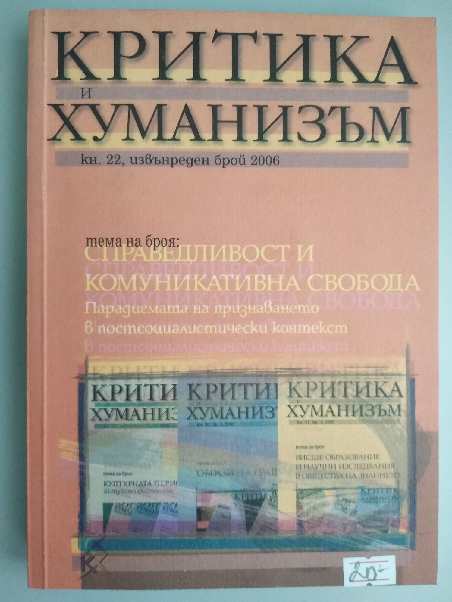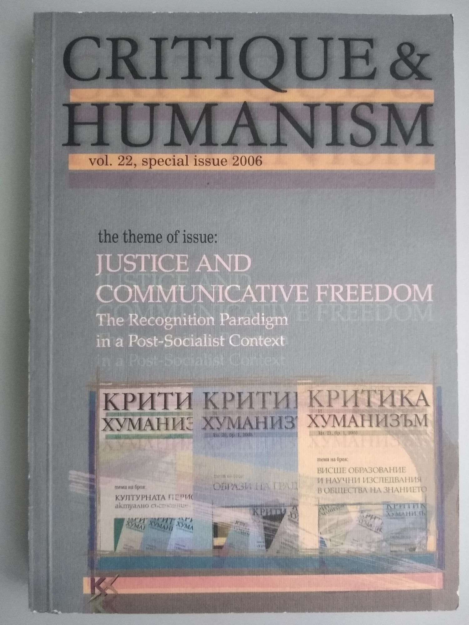 Списание Критика и хуманизъм, кн. 22, извънреден брой, 2006/ Critique & humanism, vol. 22, special issue, 2006