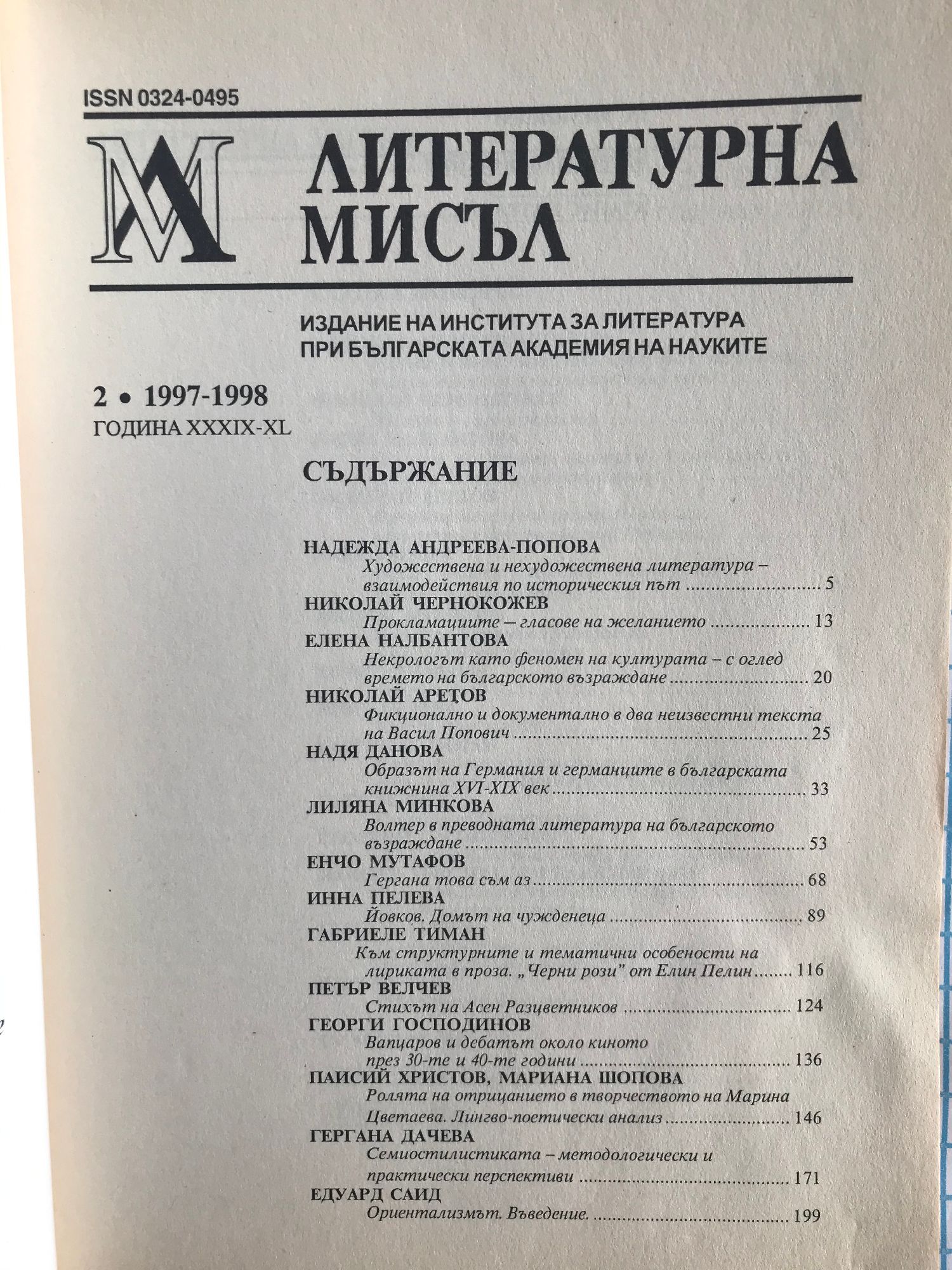 Списание за литературна теория, история и критика.