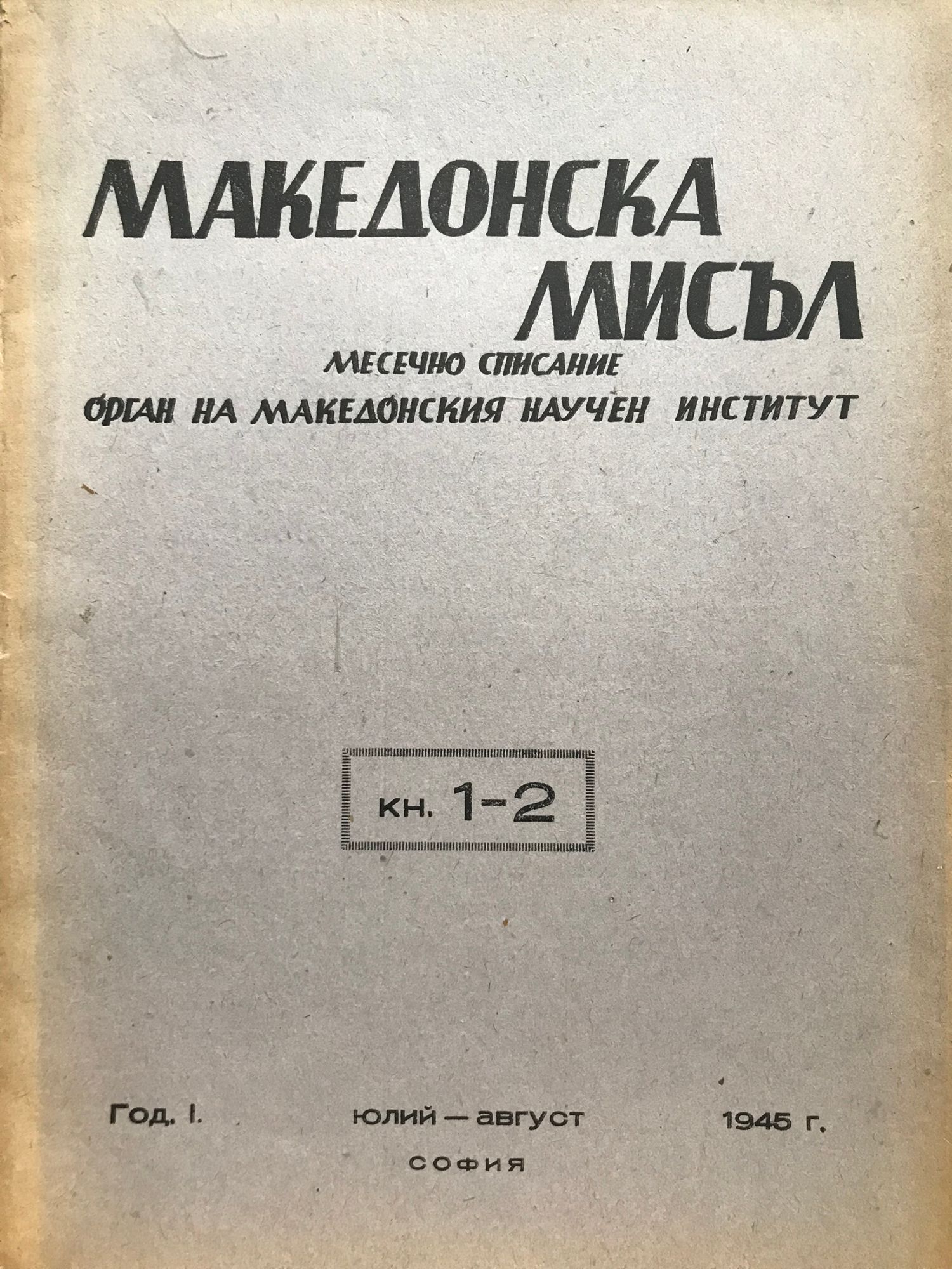 Списание "Македонска мисъл" - год. I (1), кн. 1 - 2, юлий - август 1945 г.