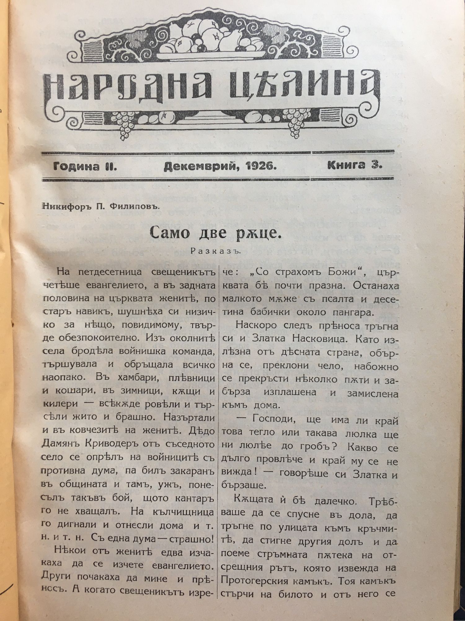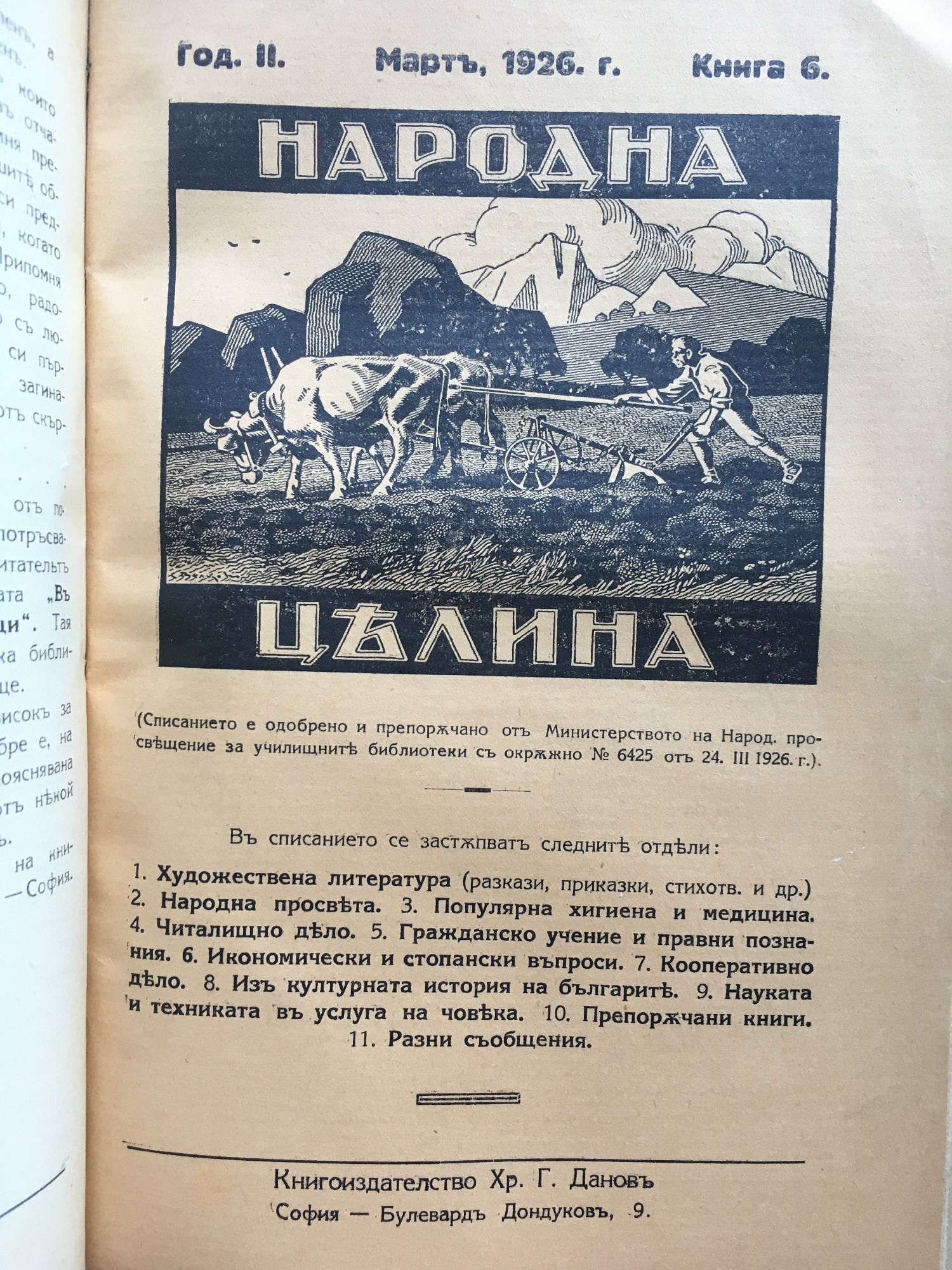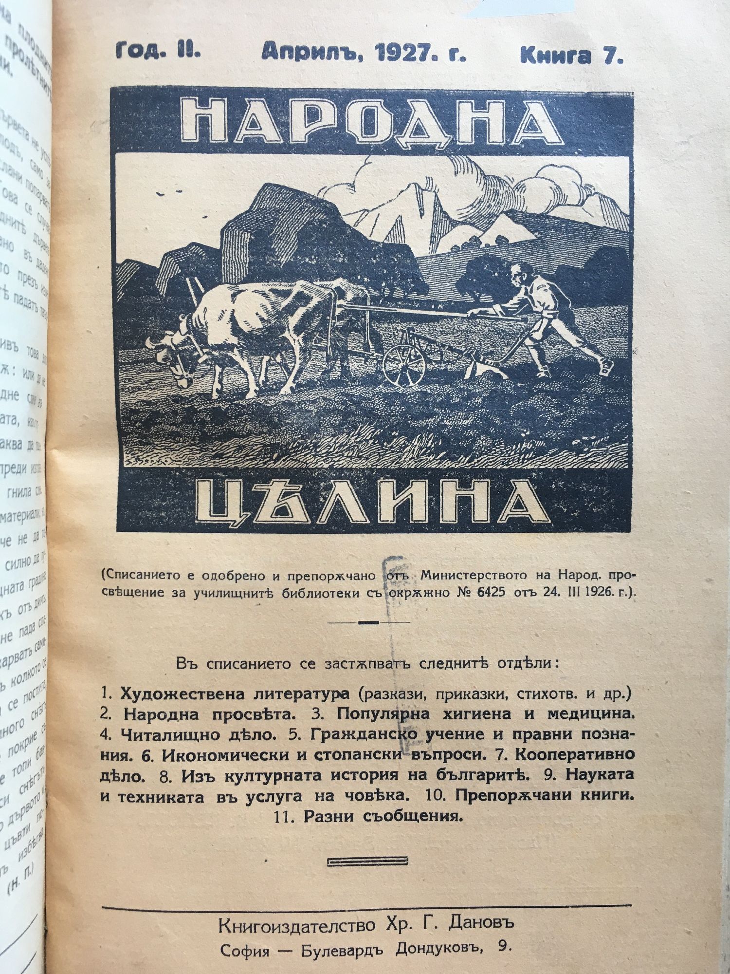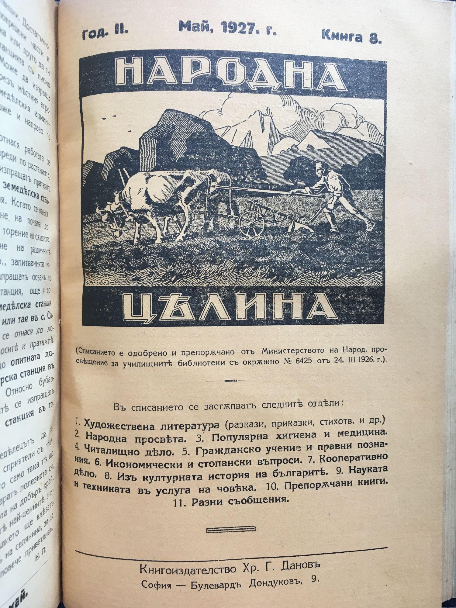 Списание "Народна целина" кн. 1 - 8, 1926 - 1927 г.