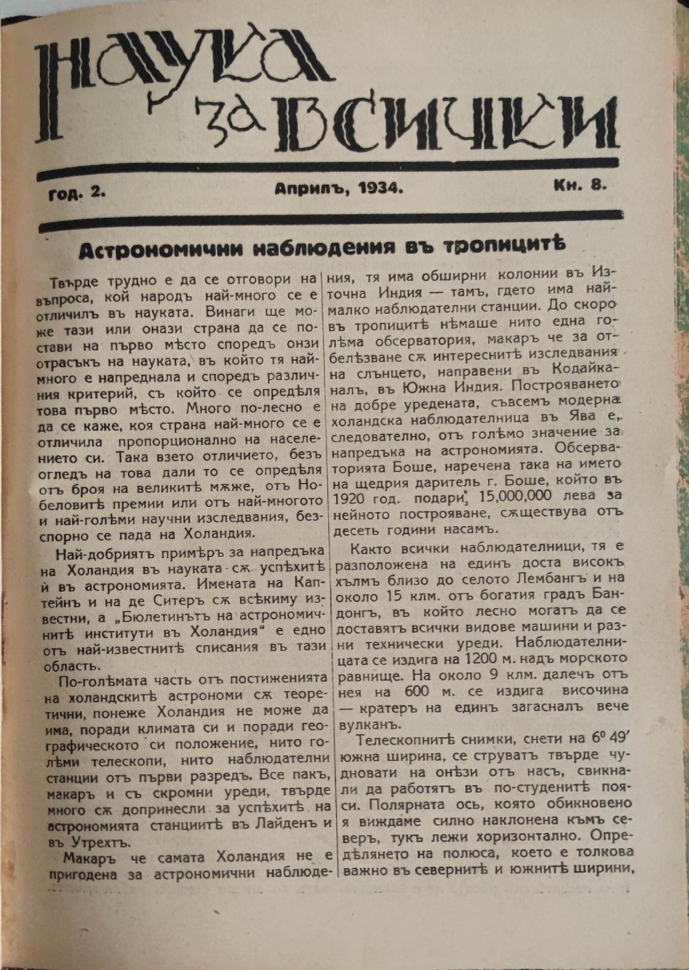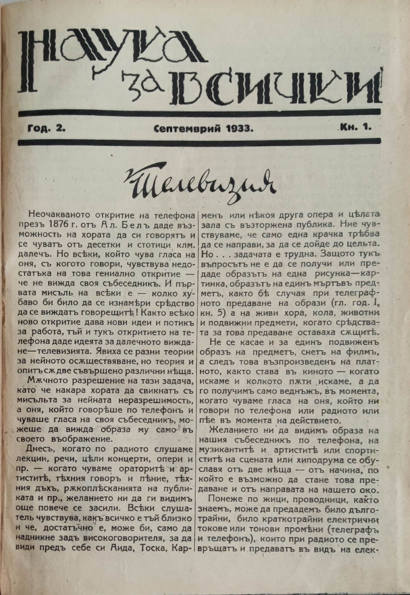 Списание "Наука за всички", год. 2, 1933-1934г., кн. 1-10