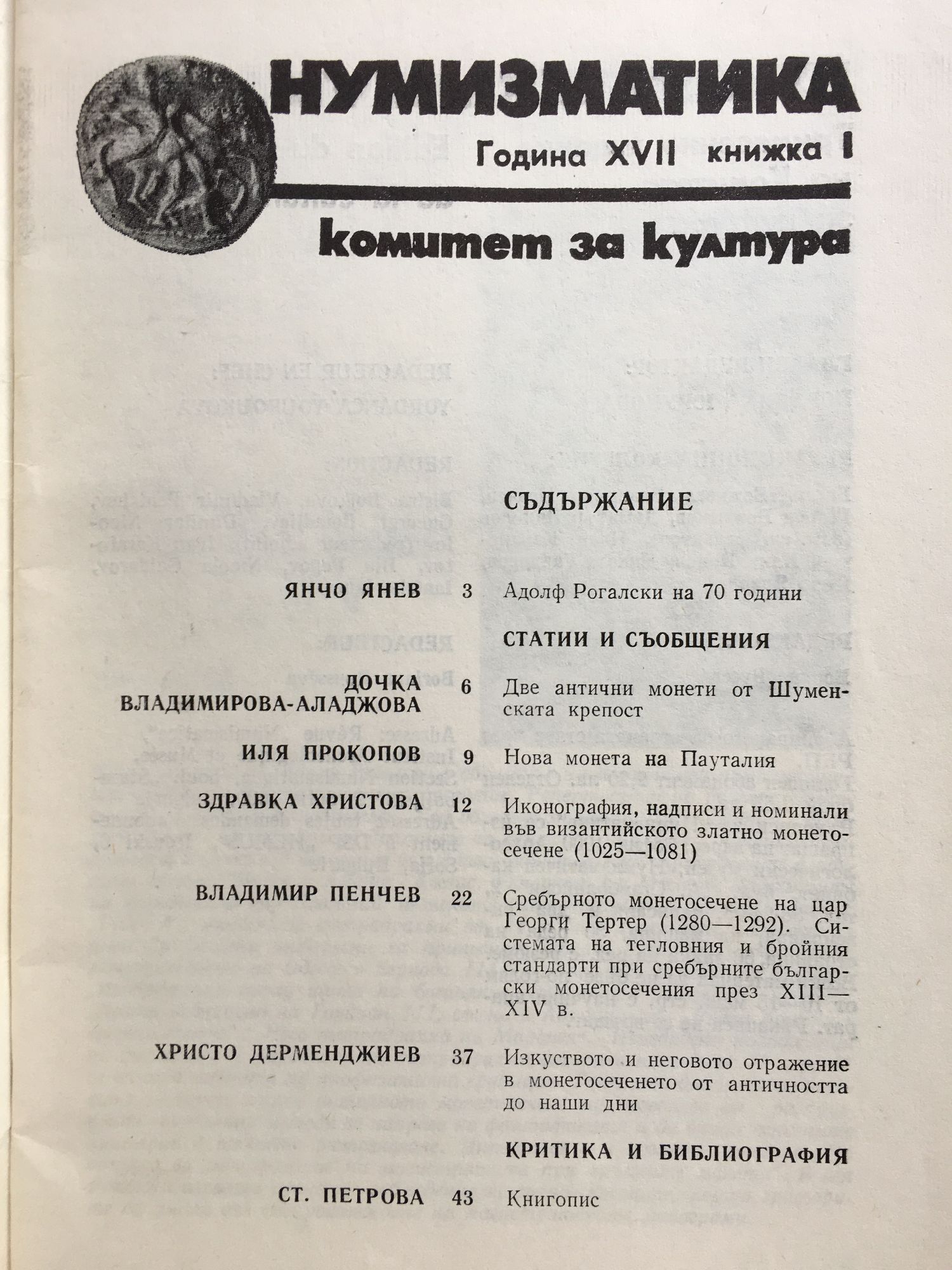 Списание "Нумизматика" - год. XVII, книжка 1 и 2 / 1983 г.